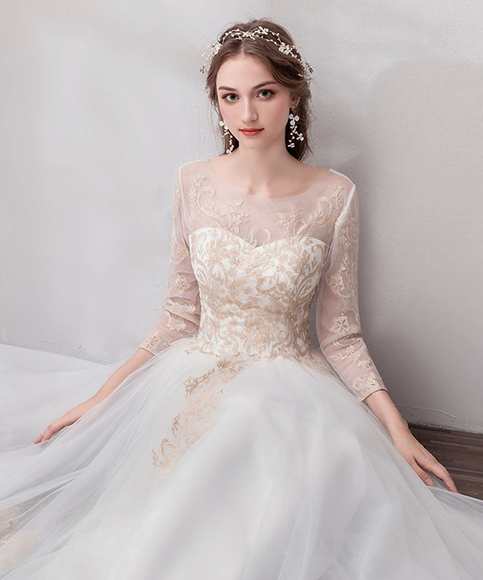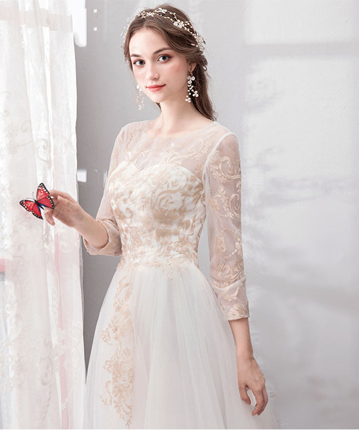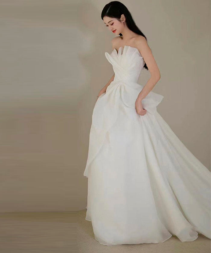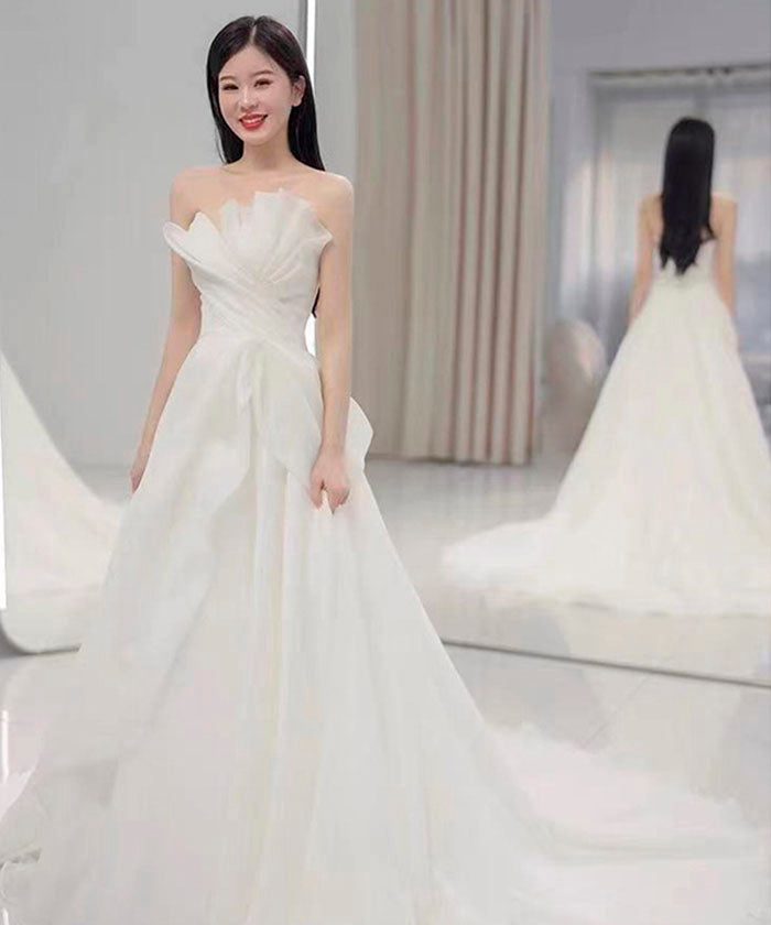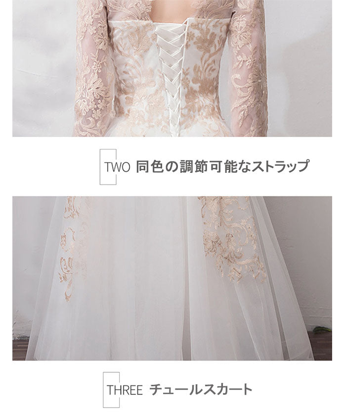 ウェディングドレス レディース ワンショルダー スリム シンプル ミッドスリーブ レース ブライダル ウェディング 床丈 ライトウェディングドレス