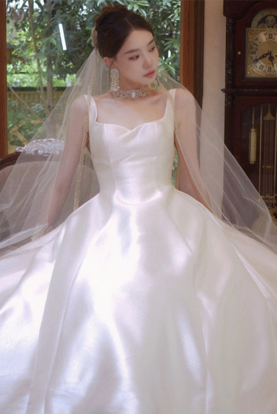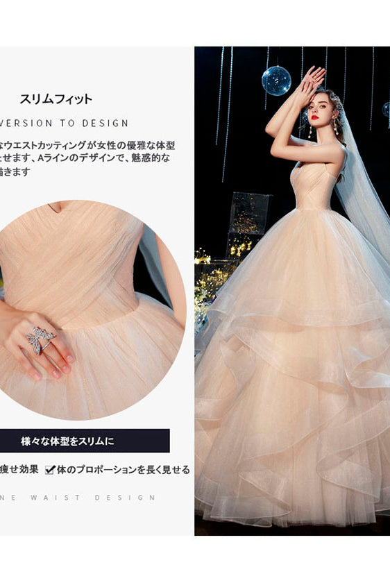 ウェディングドレス フレンチ ワンショルダー ブライダルドレス プリンセス シンプル ウエディングドレス パーティードレス フォーマルドレス おしゃれ パーティ 可愛い