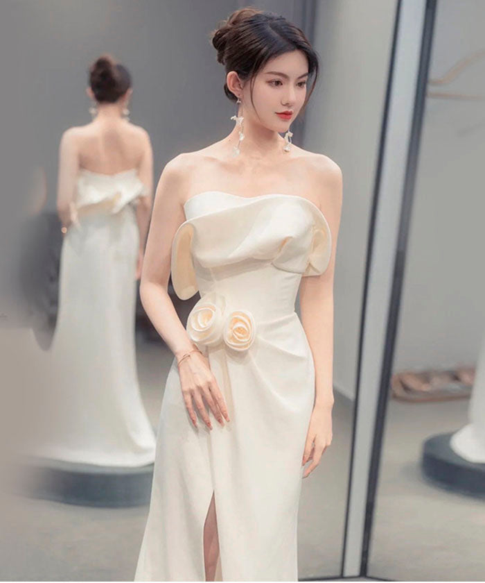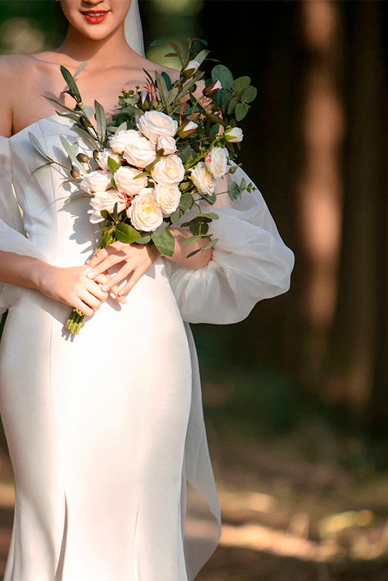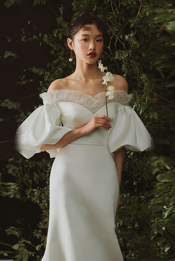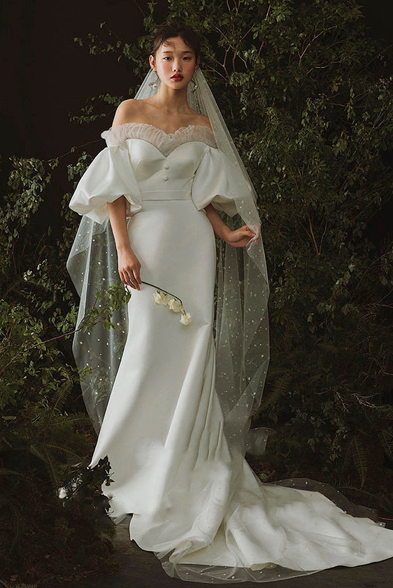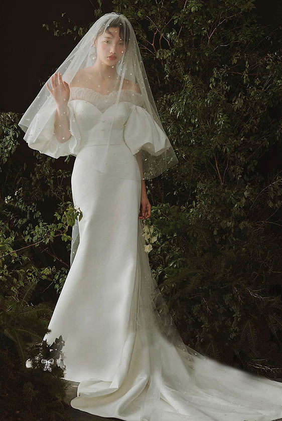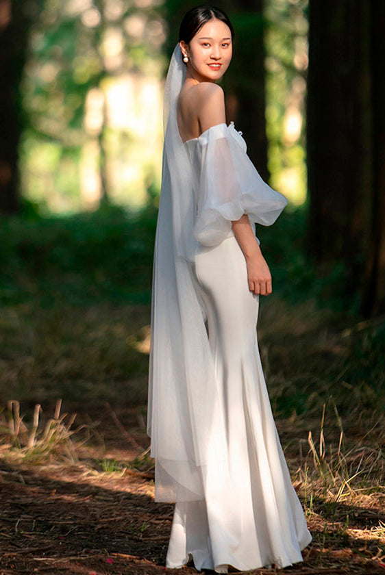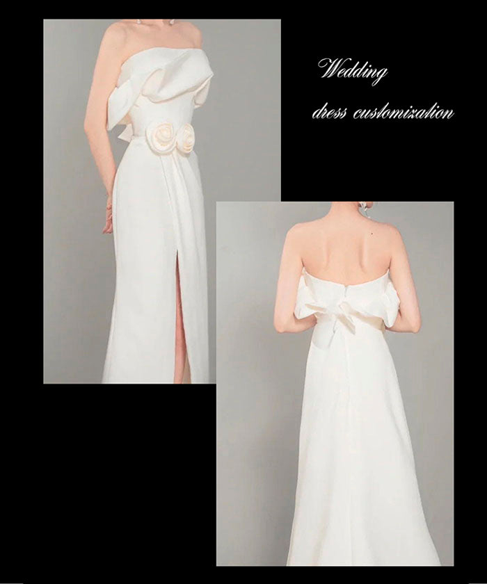 フレンチ ライトウェディングドレス 新しい花嫁 ブライダル ニッチチューブトップ 小柄 サテンドレス ベール
