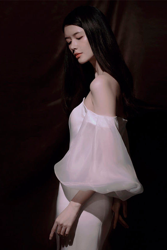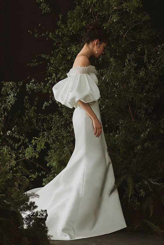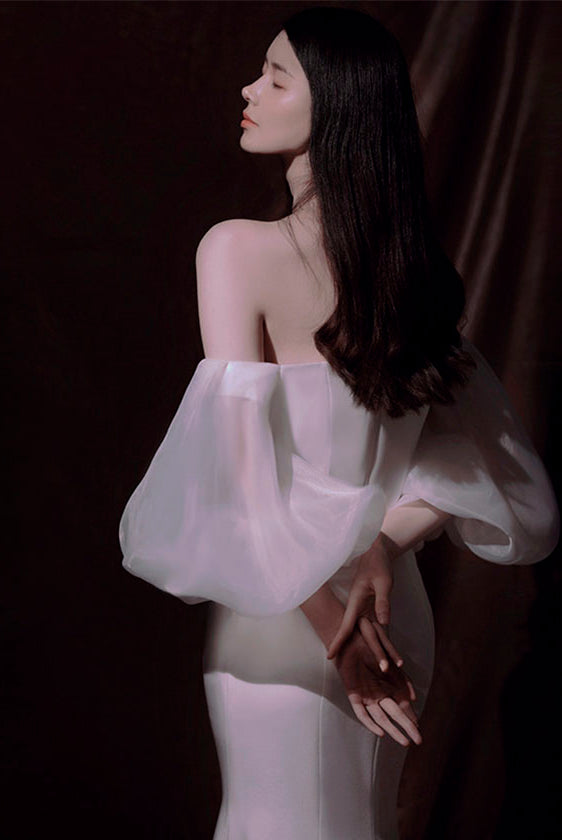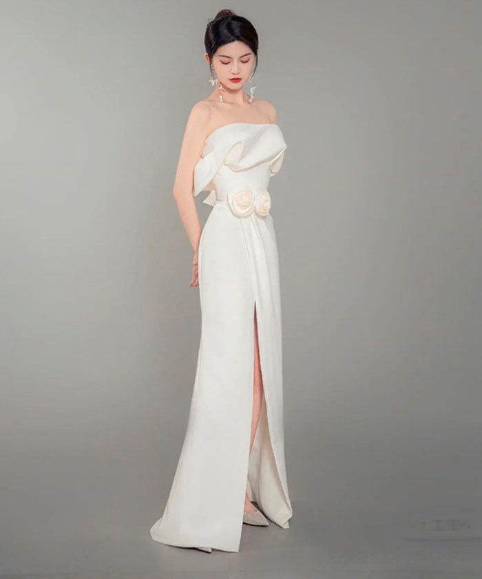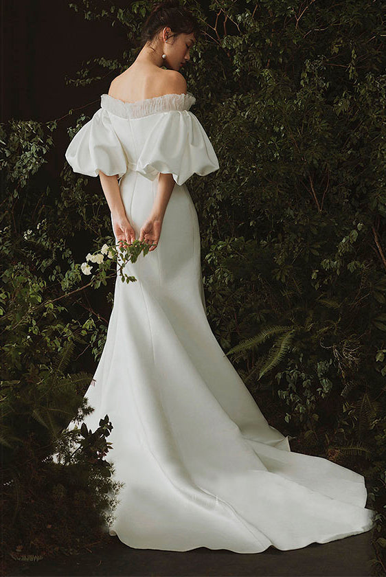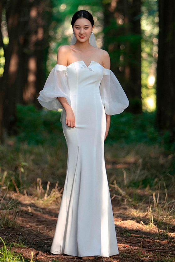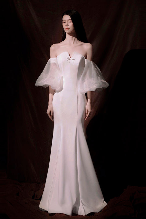 フレンチ ライトウェディングドレス 新しい花嫁 ブライダル ニッチチューブトップ 小柄 サテンドレス ベール