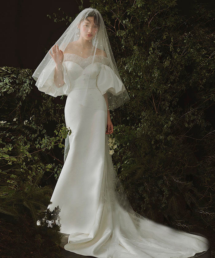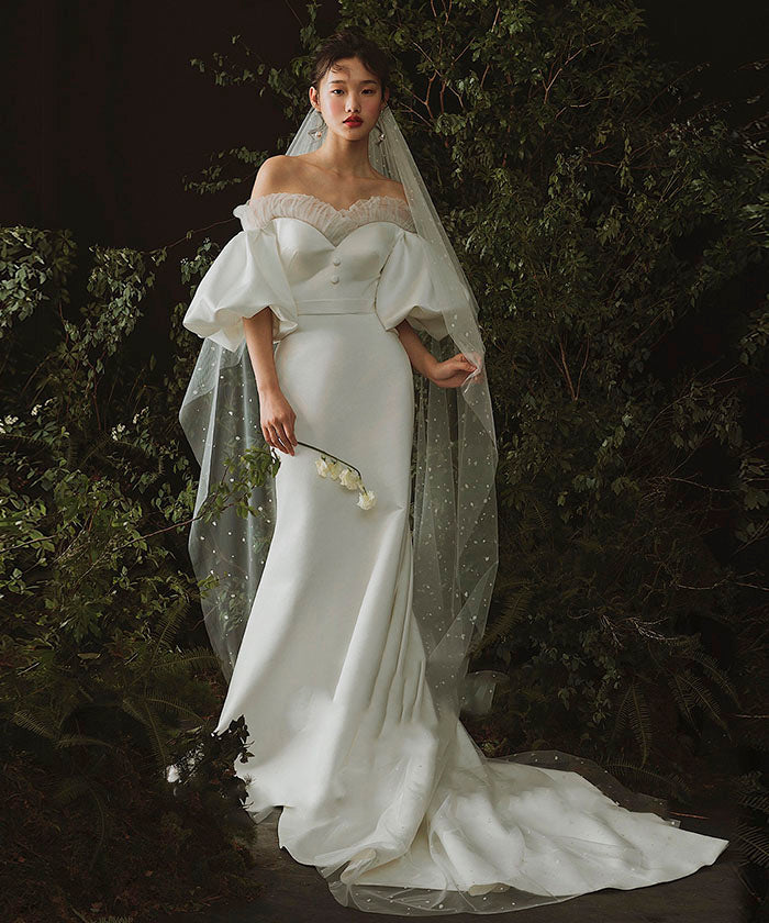 ブライダル 花嫁 フレンチ スーパー フェアリー スリム フィット マーメイド ウェディング ドレス 森ガール ウェディング ドレス 宴会