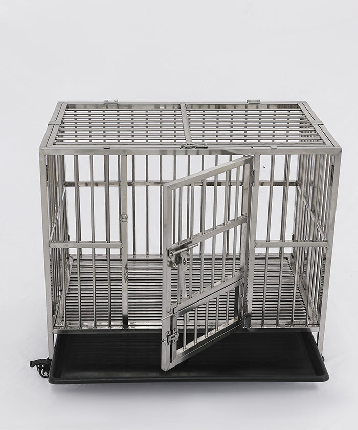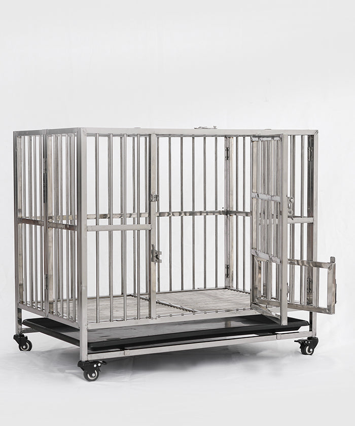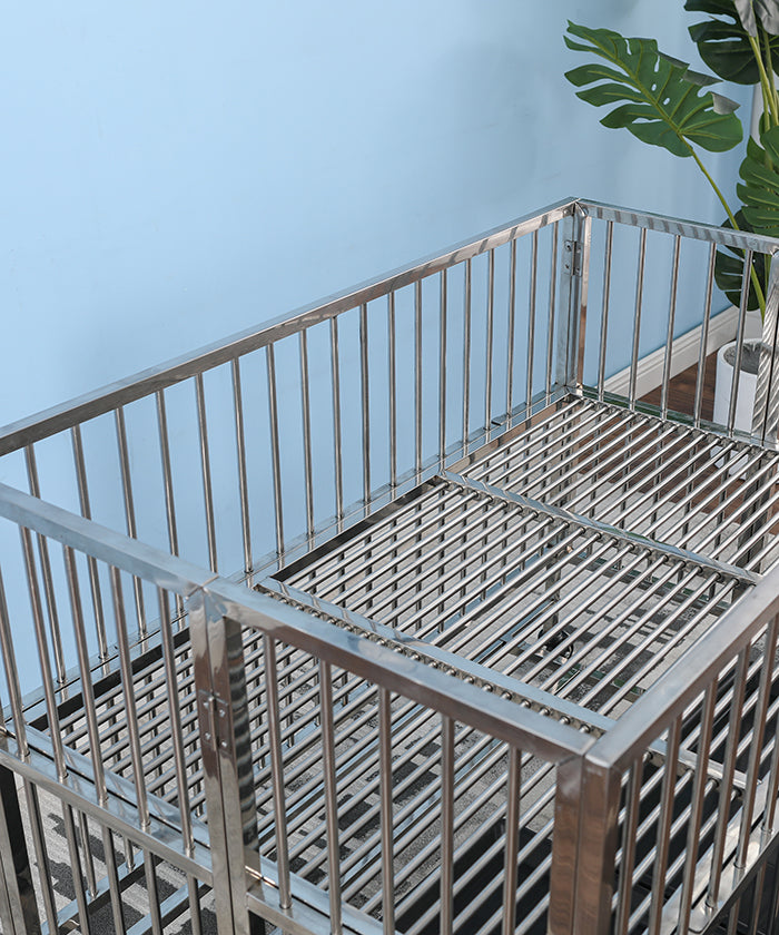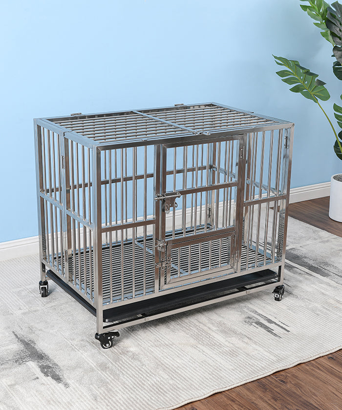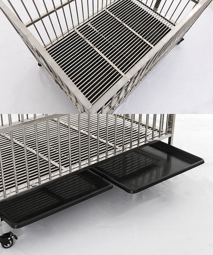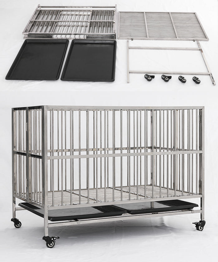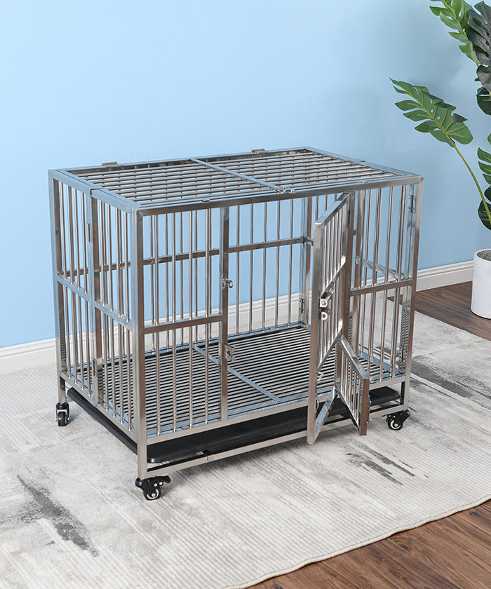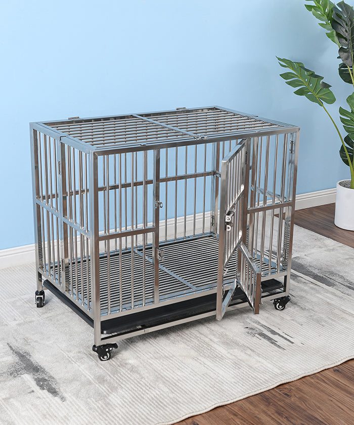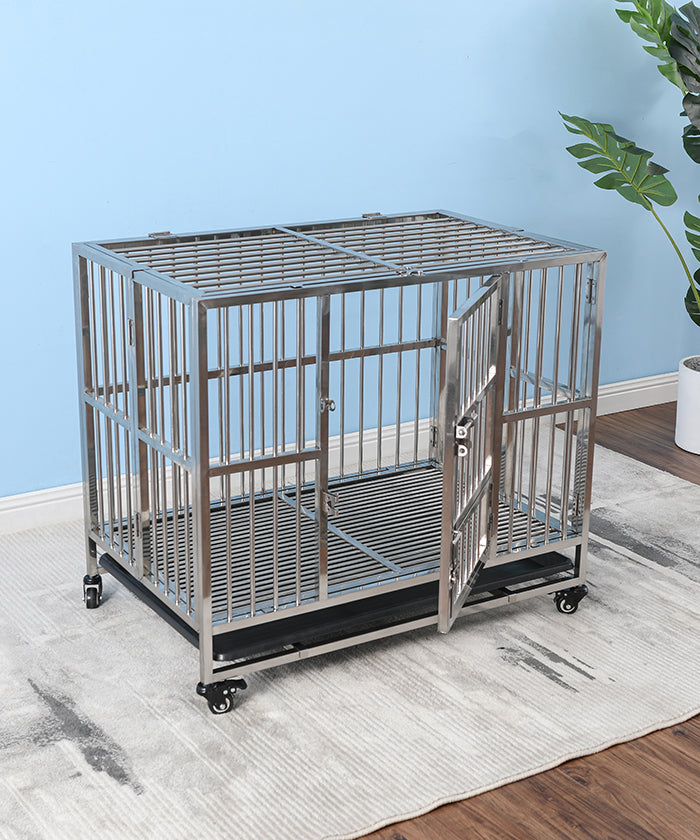 大型四輪ステンレス製犬用ケージ 組み立て・分解・折りたたみ式犬用ケージ 大型犬・中型犬・小型犬・ペット用犬・ペット用猫