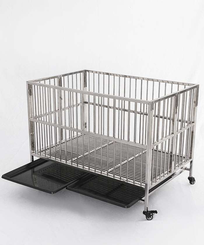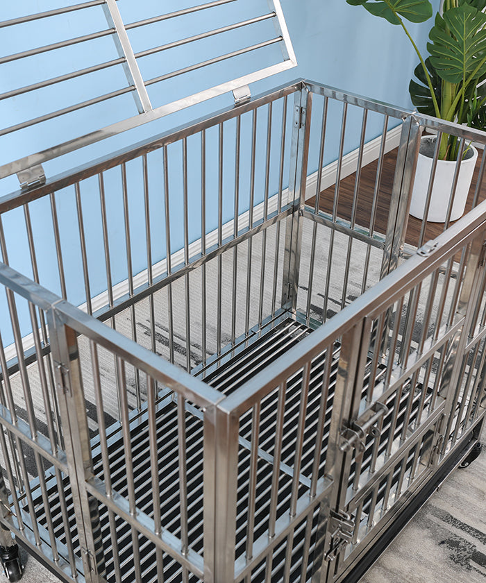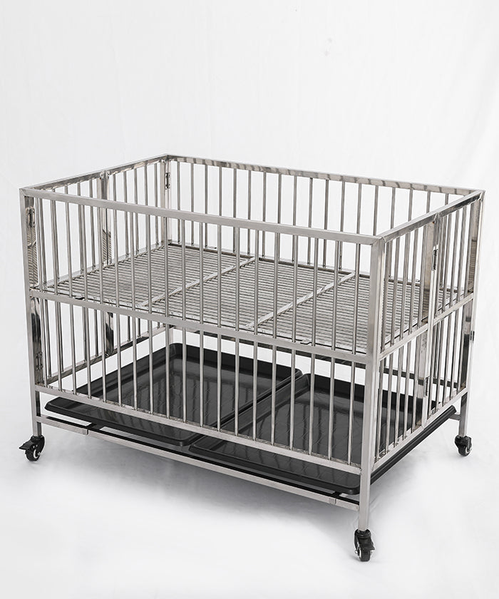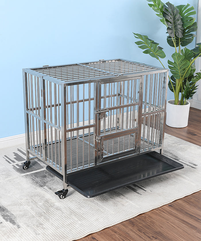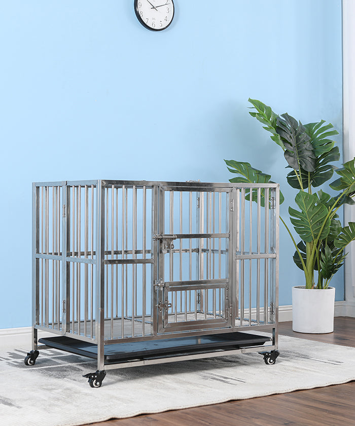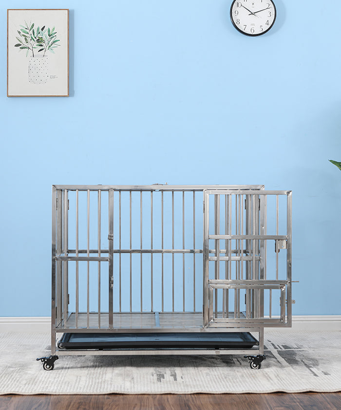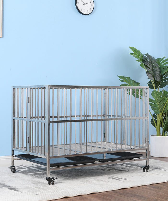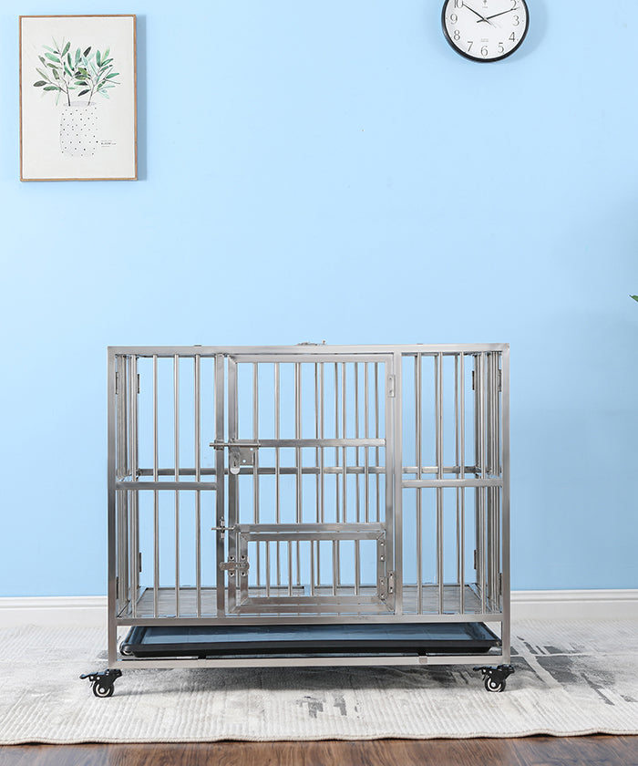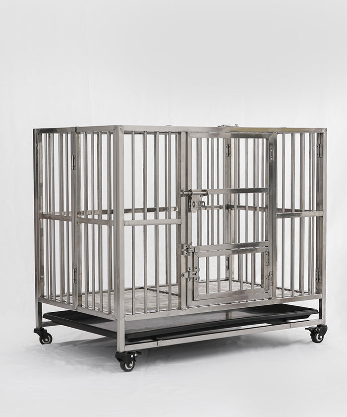 大型四輪ステンレス製犬用ケージ 組み立て・分解・折りたたみ式犬用ケージ 大型犬・中型犬・小型犬・ペット用犬・ペット用猫