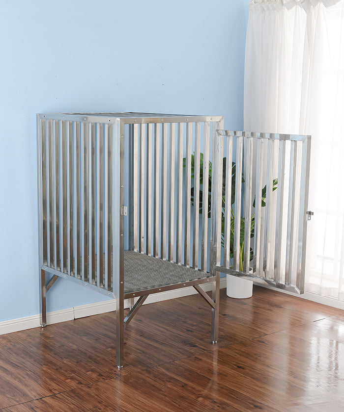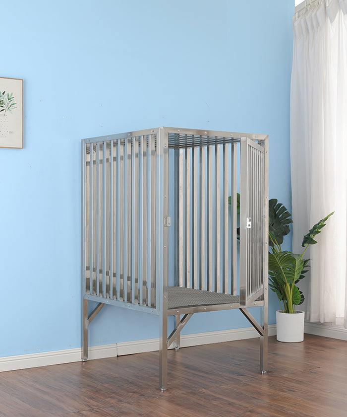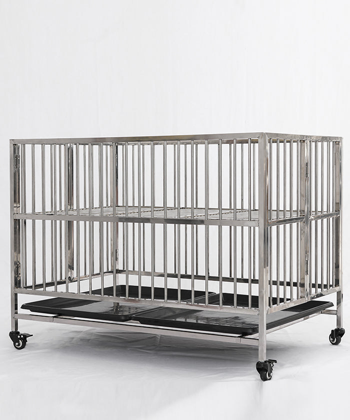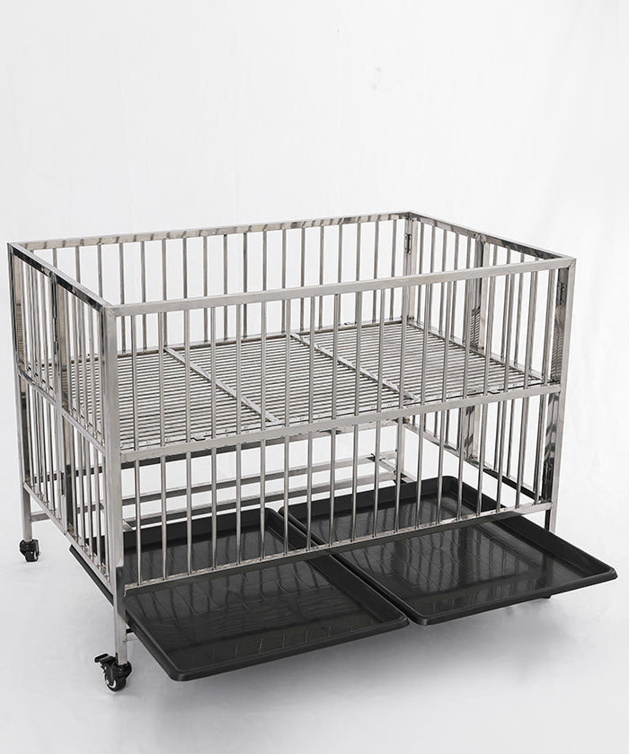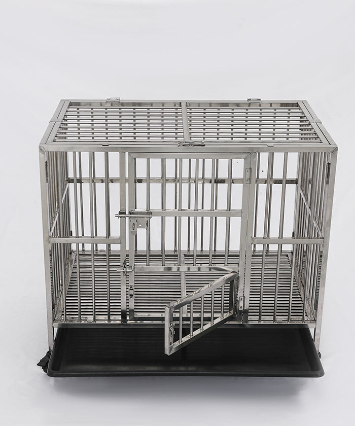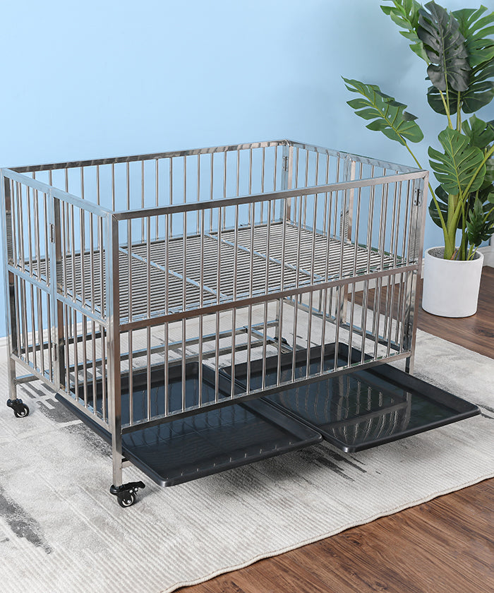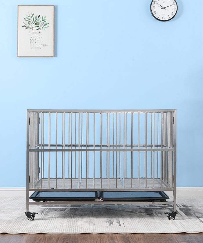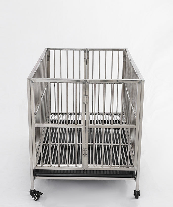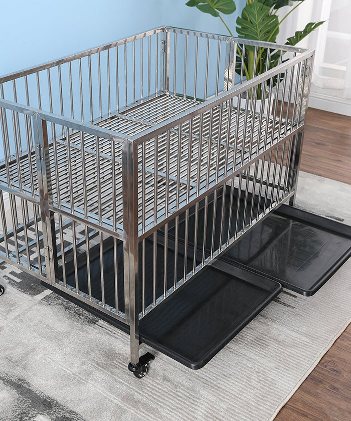 大型四輪ステンレス製犬用ケージ 組み立て・分解・折りたたみ式犬用ケージ 大型犬・中型犬・小型犬・ペット用犬・ペット用猫