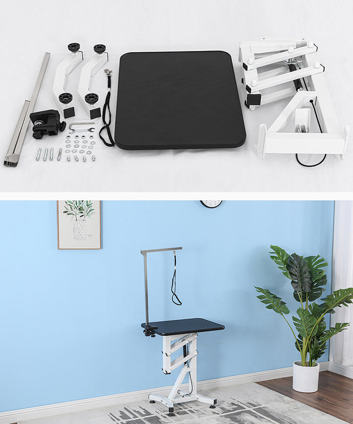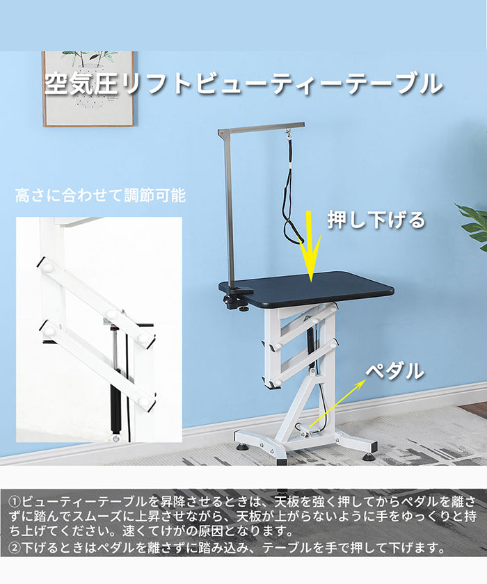 トリミングテーブル 折りたたみ トリミング台 トリミングテーブル ペット用トリミングテーブル 美容テーブルの台の鉄のフレームはアームのブラケットの輪を含みます 空気圧リフトビューティーテーブル