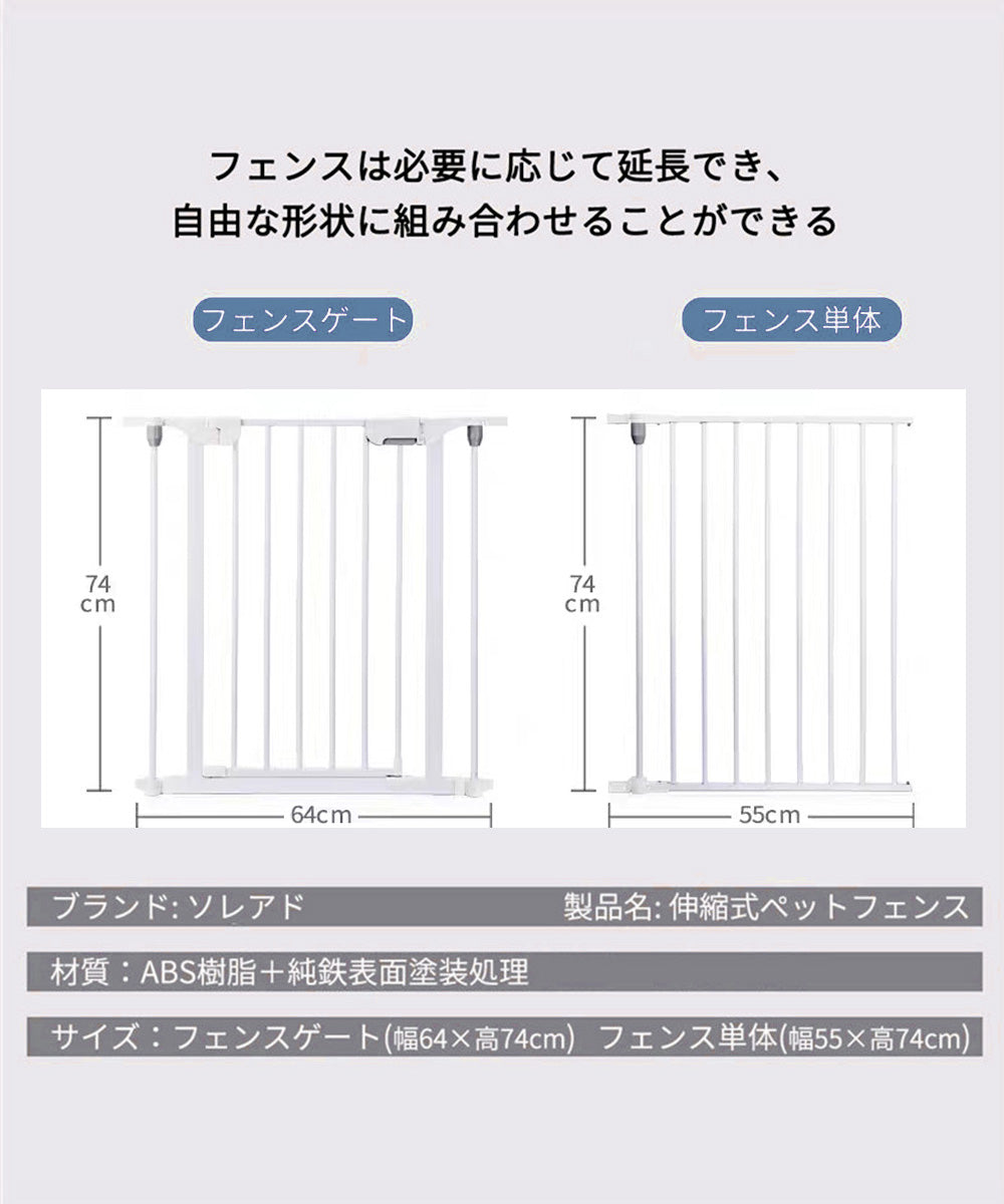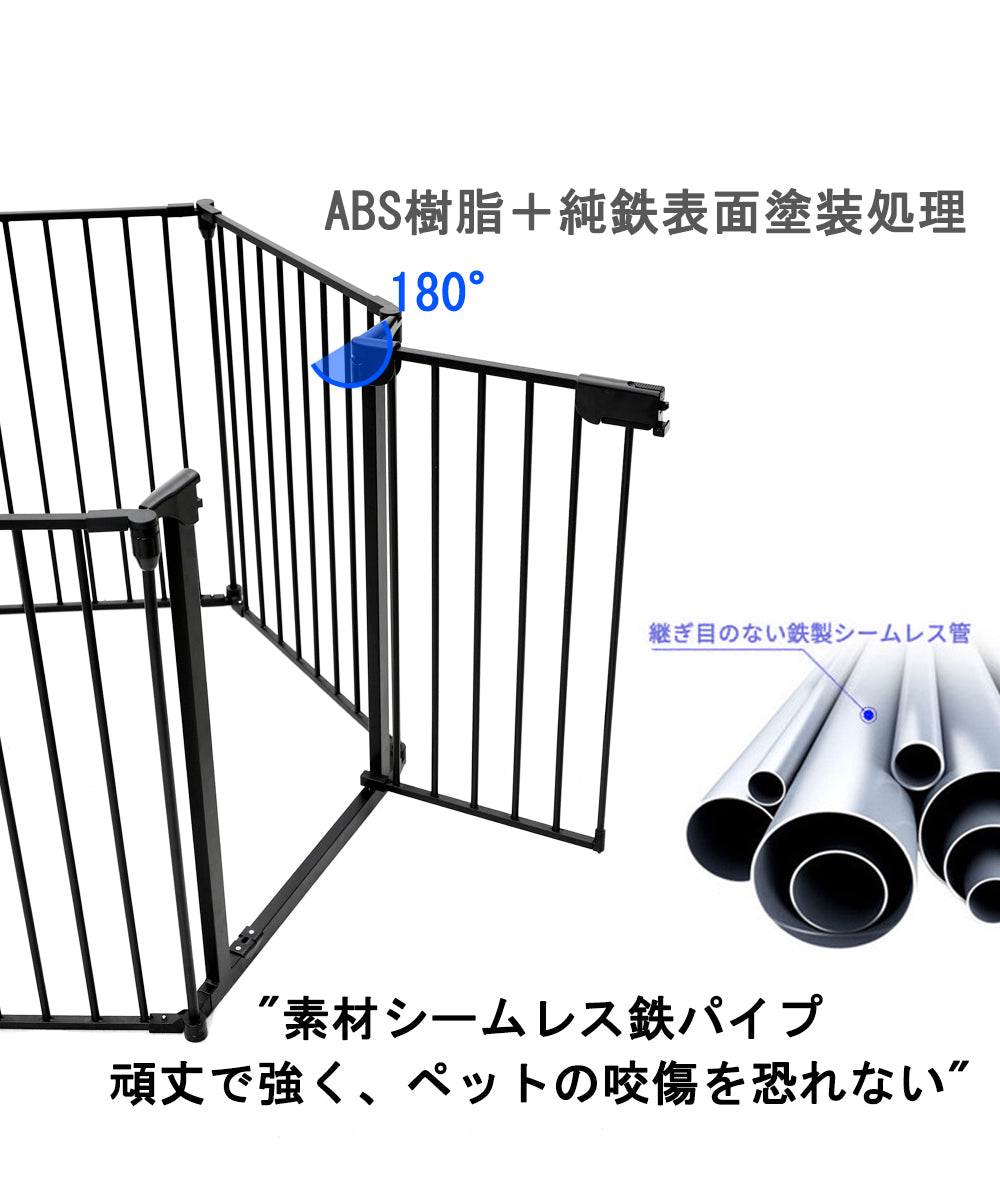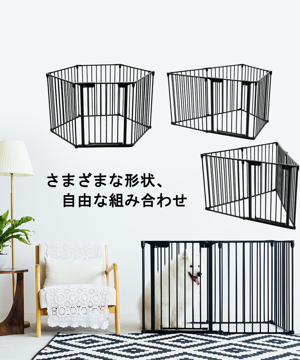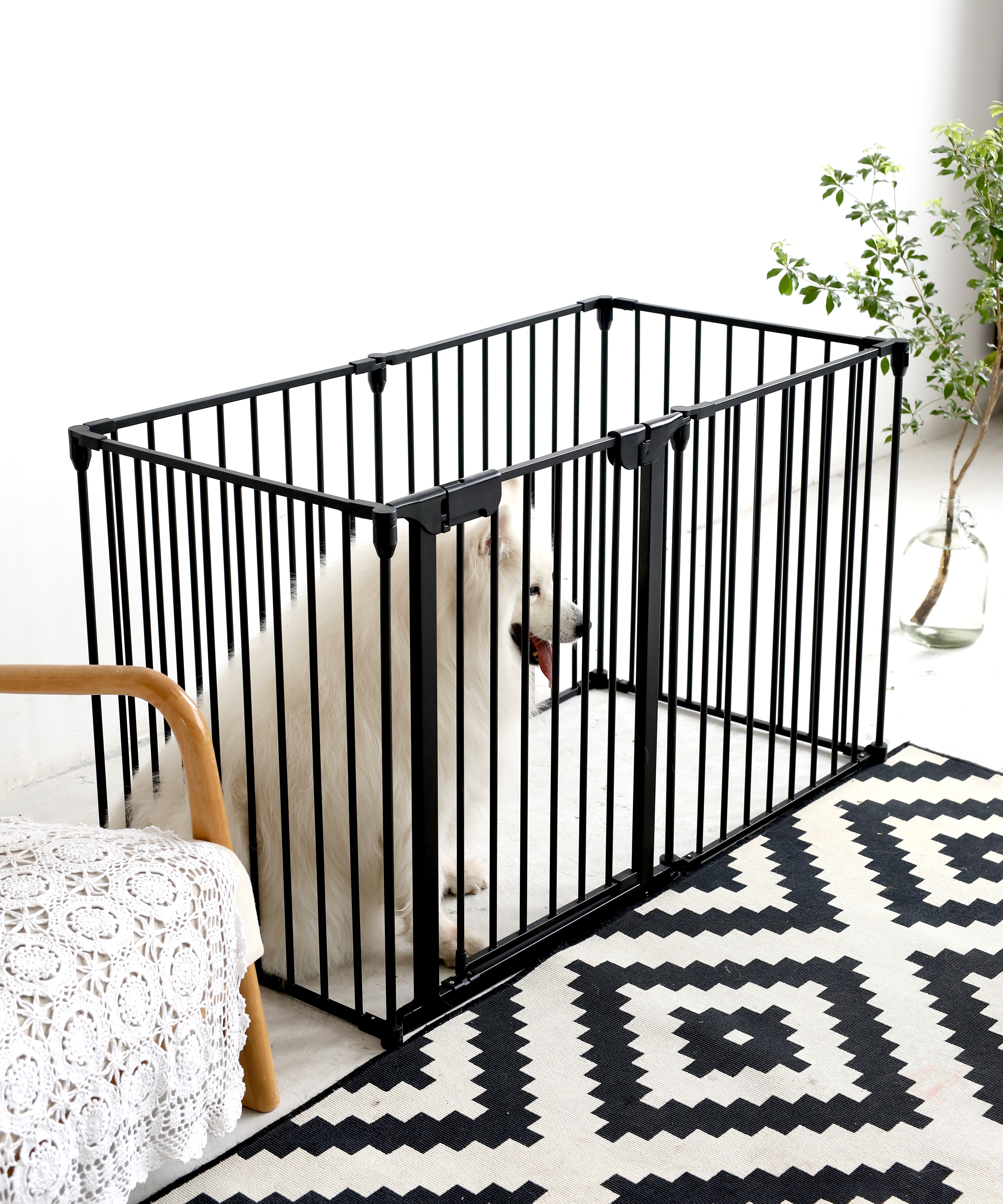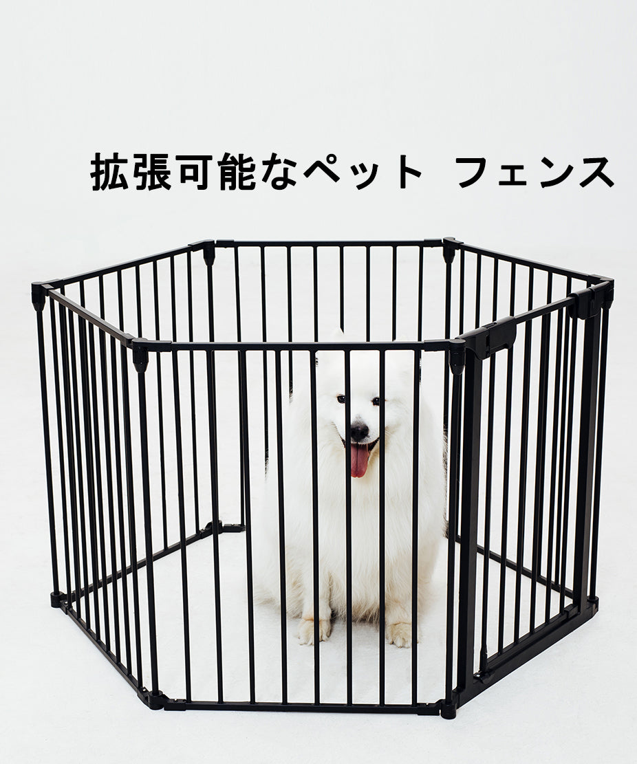 ペットフェンス 中大型犬用 ペットケージ ペットサークル ペットサークル 組み立て簡単 工具不要 レイアウト自由 折りたたみ ペット用サークル ドア付 ペット用品 犬用 本体6枚セット フェンス 室内 屋外 広い DIY 接続式 ダブルロック 高さ74cm (6枚セット|ホワイト,ブラック)