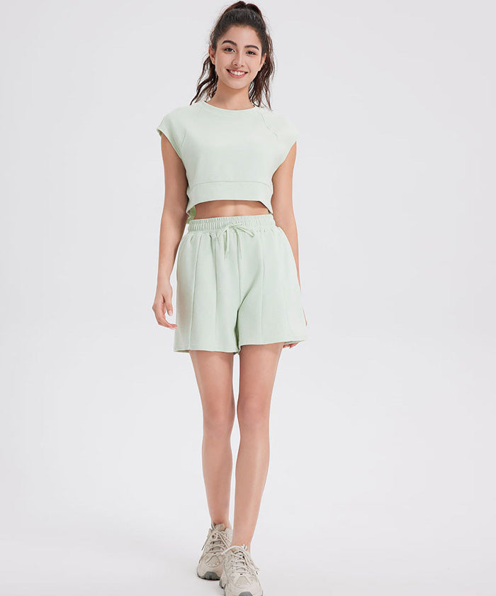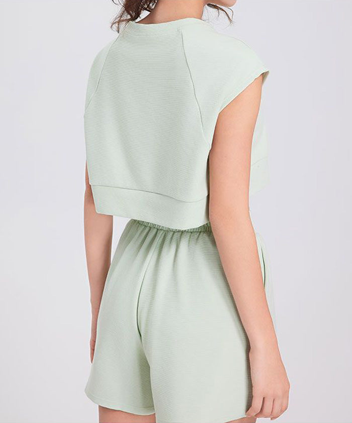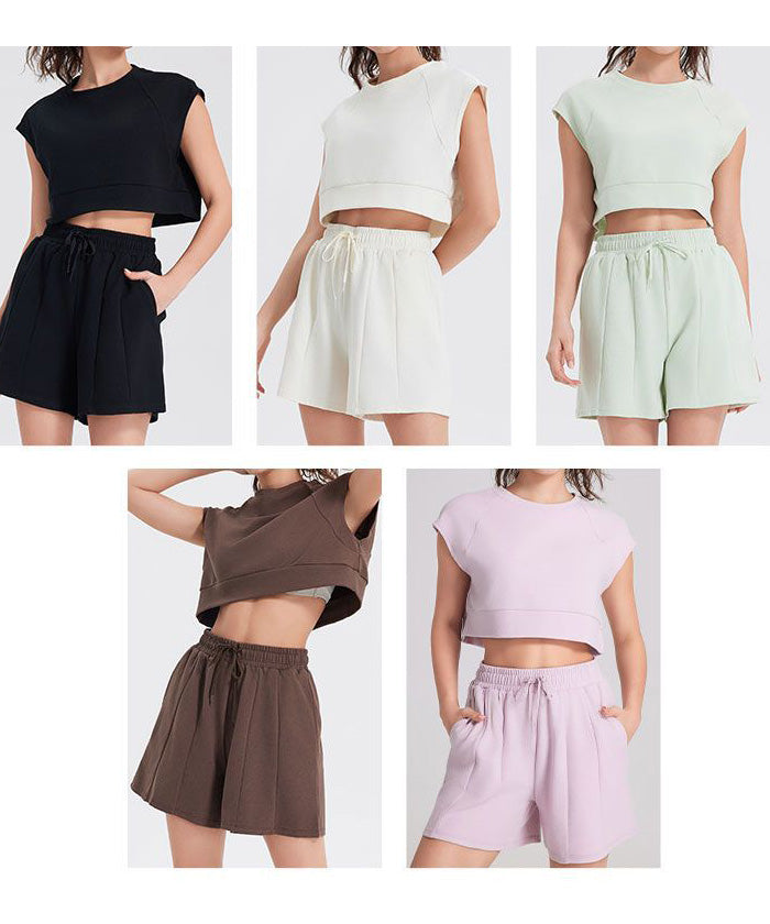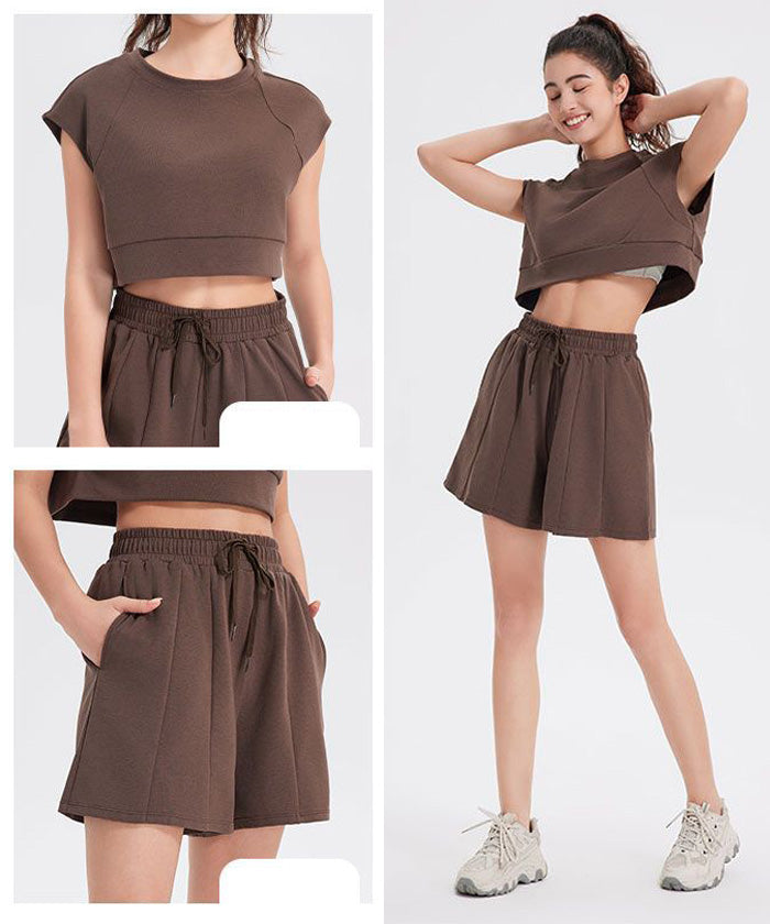 ヨガウェア ツーピース スポーツスーツ 半袖 ショートパンツ ブラウス ランニング カジュアル ショートパンツ おしゃれ レディース スタイル