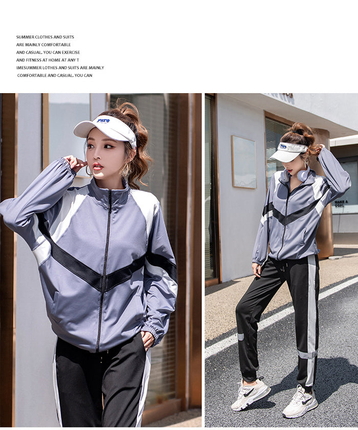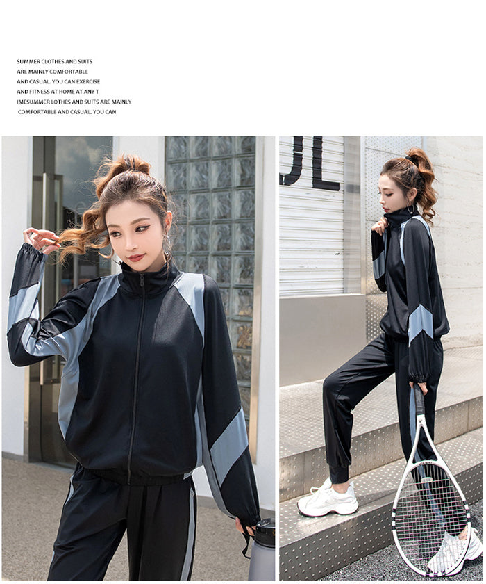 ヨガスーツ 長袖 ズボン レディースフィットネススーツ スポーツフィットネススーツ モーニングランニングスーツ