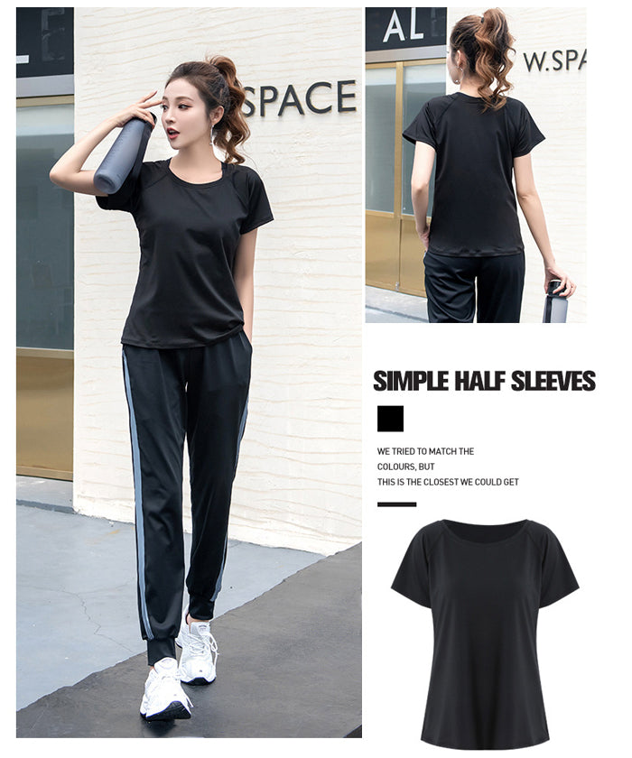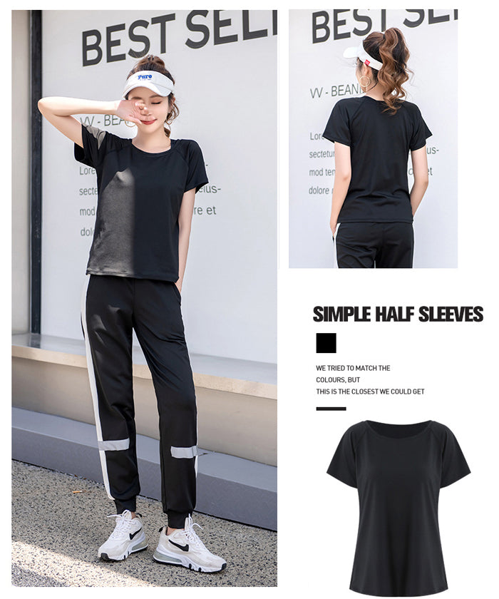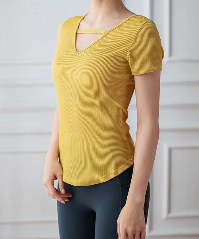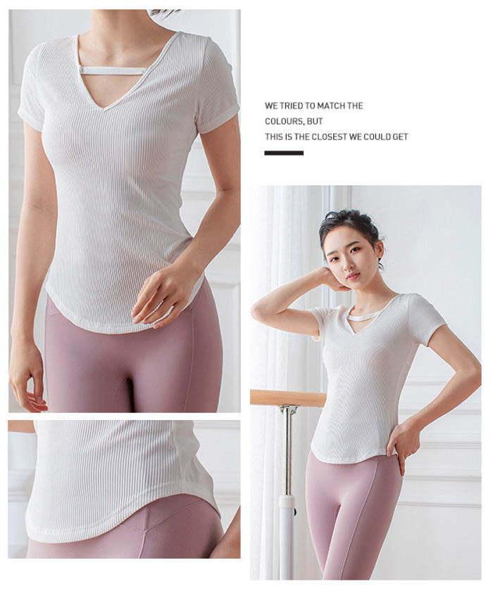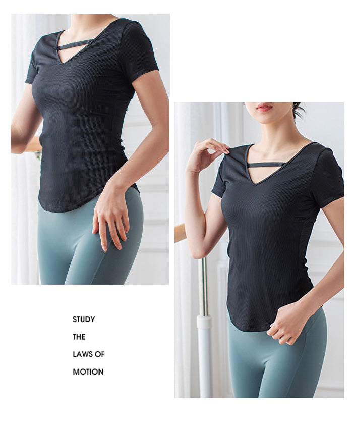 ヨガウェア 半袖スポーツトップス フィットネスウェア スポーツ半袖Tシャツ ランニングトレーニング スリムフィット 肌に優しい 高伸縮性 痩身リブ