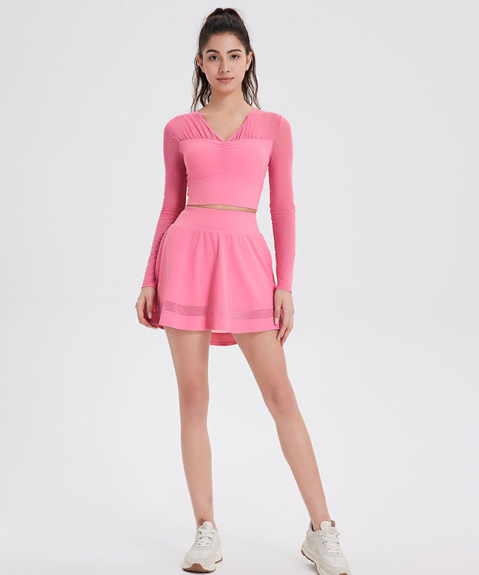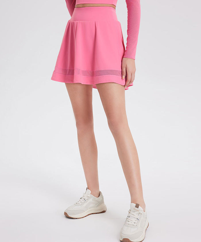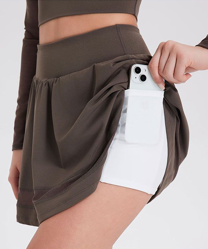 スポーツショートスカート、ハイウエストランニングスカート、テニススカート、フィットネスパンツ、ヨガスカート、露出を防ぐ痩身パッチワークレディースフェイクツーピース