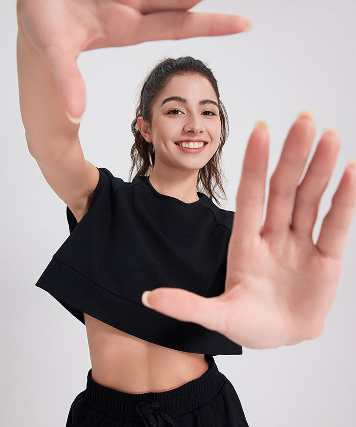 スポーツトップス ヨガウェア 長袖 無地ショートフィットネスウェア ランニング 速乾性 通気性 ゆったりとした女性用Tスポーツカバーアップ