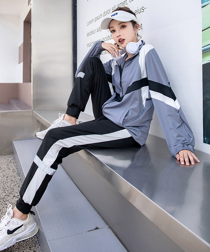スポーツウェア 2点セット パーカー 長袖 上下セット フィットネスウェア 速乾性 セットアップ ヨガ ピラティス スポーツ フィットネス ランニングウェア トレーニング ジム