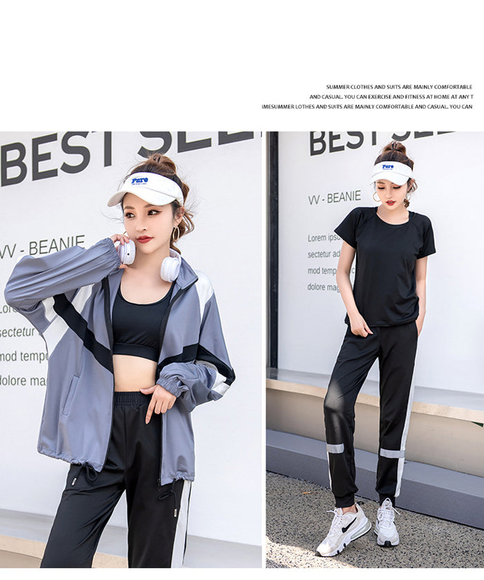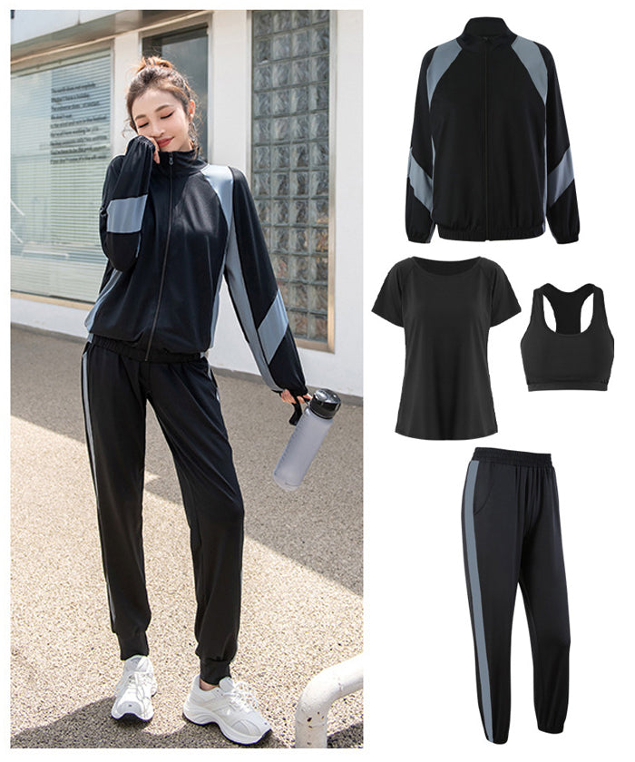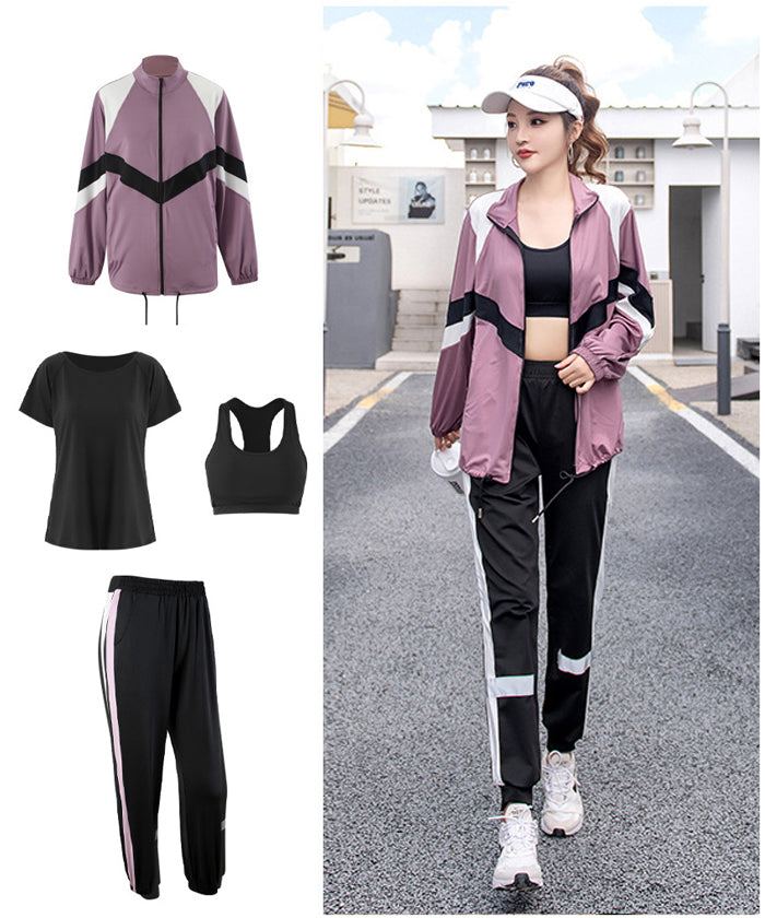 スポーツウェアセット 4点セット 上下セット フィットネスウェア 速乾性 ヨガ ピラティス スポーツ フィットネス ランニングウェア トレーニング ジム 運動 ダンス ウォーキング