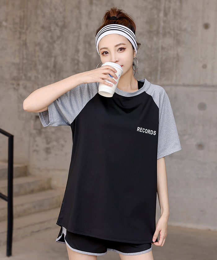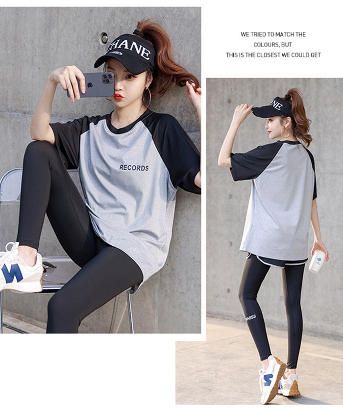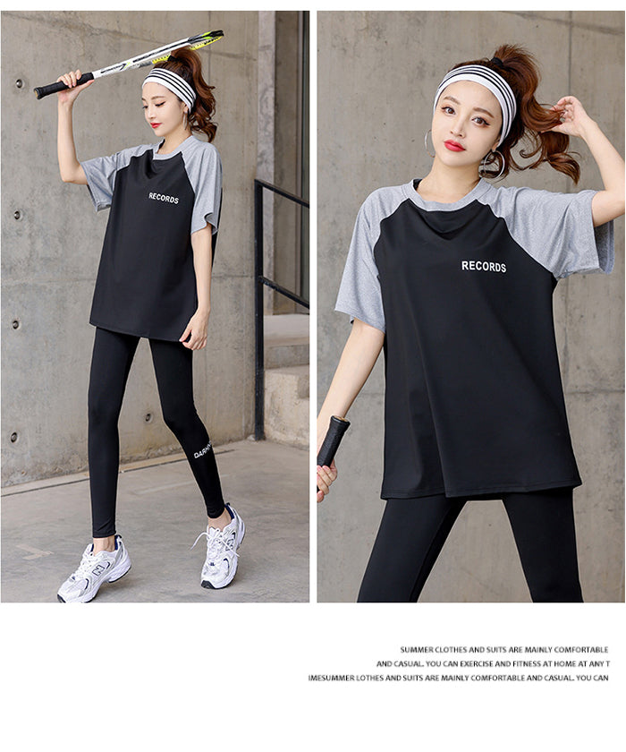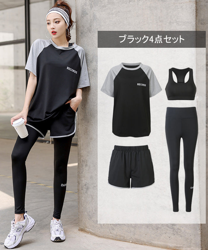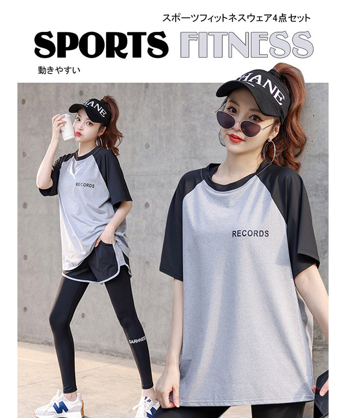 スポーツウェアセット 4点セット 半袖 Tシャツ 韓国 ハイウエスト ヨガ服 速乾性 スポーツ フィットネス トレーニングウェア