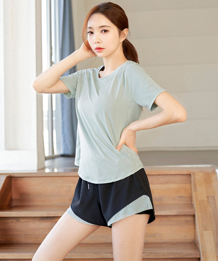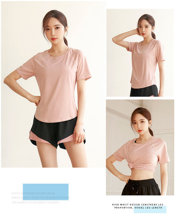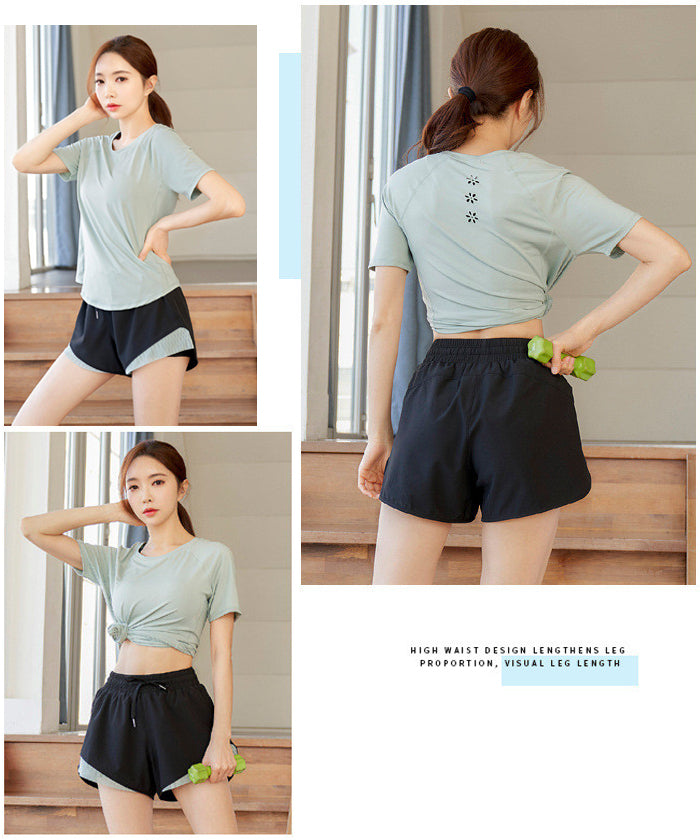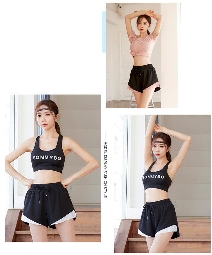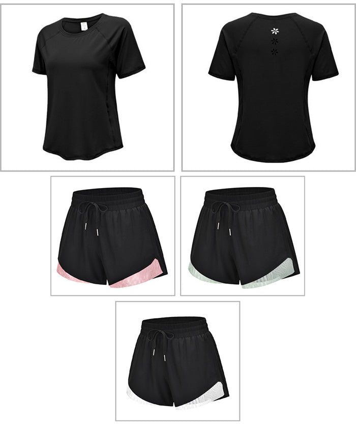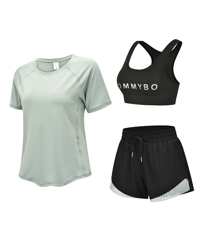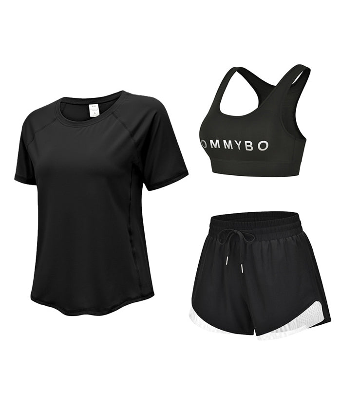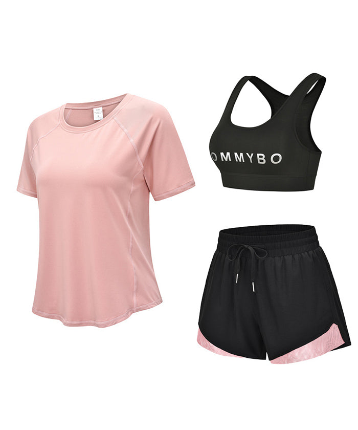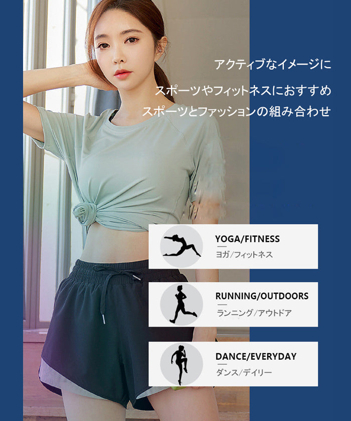 スポーツウェア 3点セット Tシャツ 半袖 ショートパンツ スポーツブラ プラスサイズ フィットネスウェア 速乾性 セットアップ ヨガ ピラティス