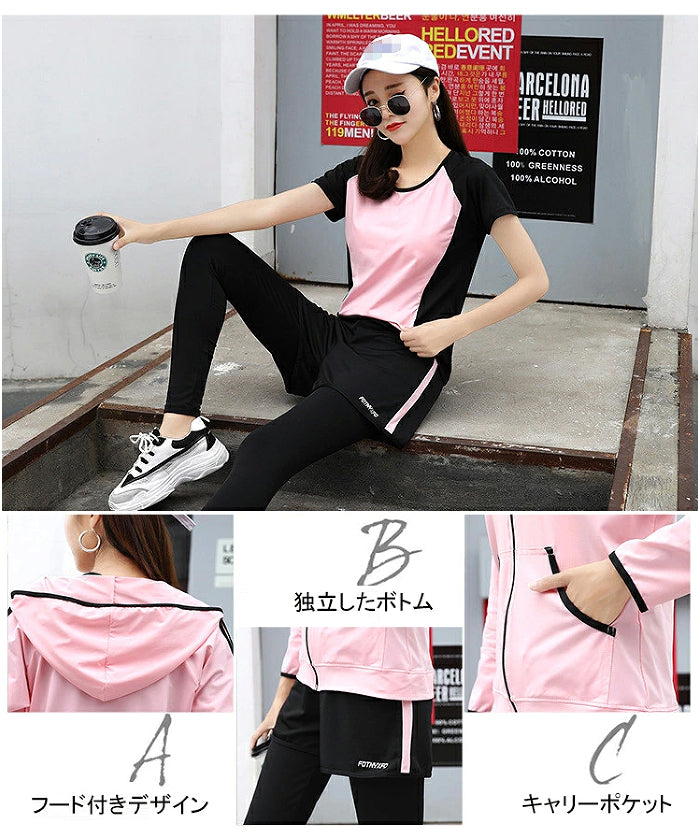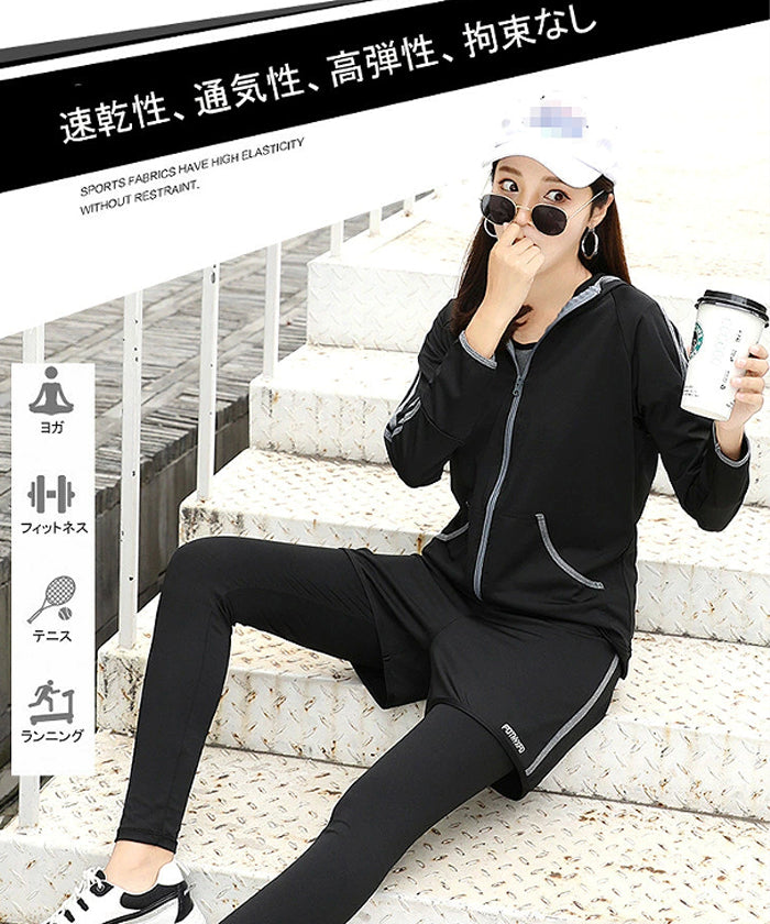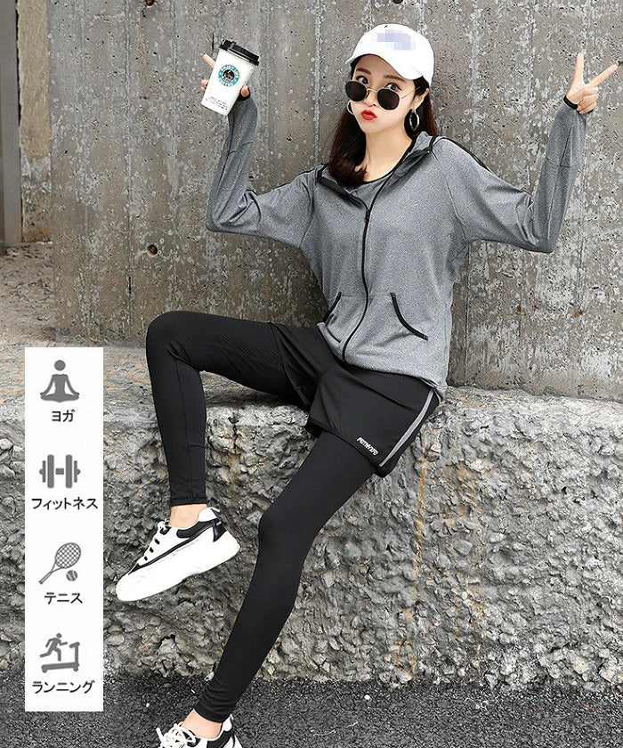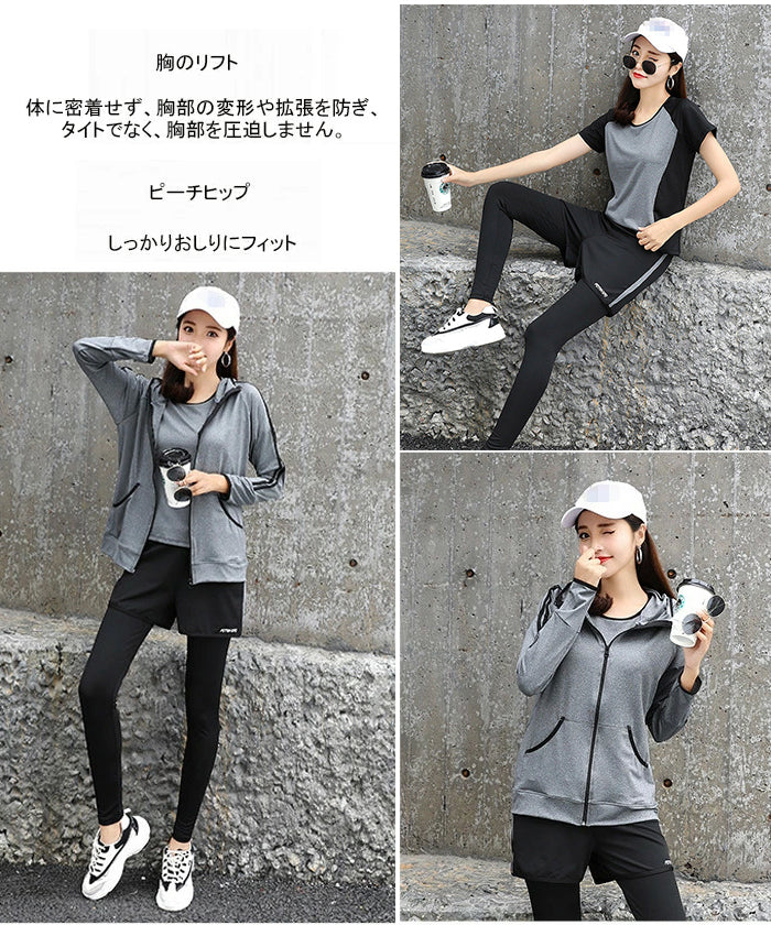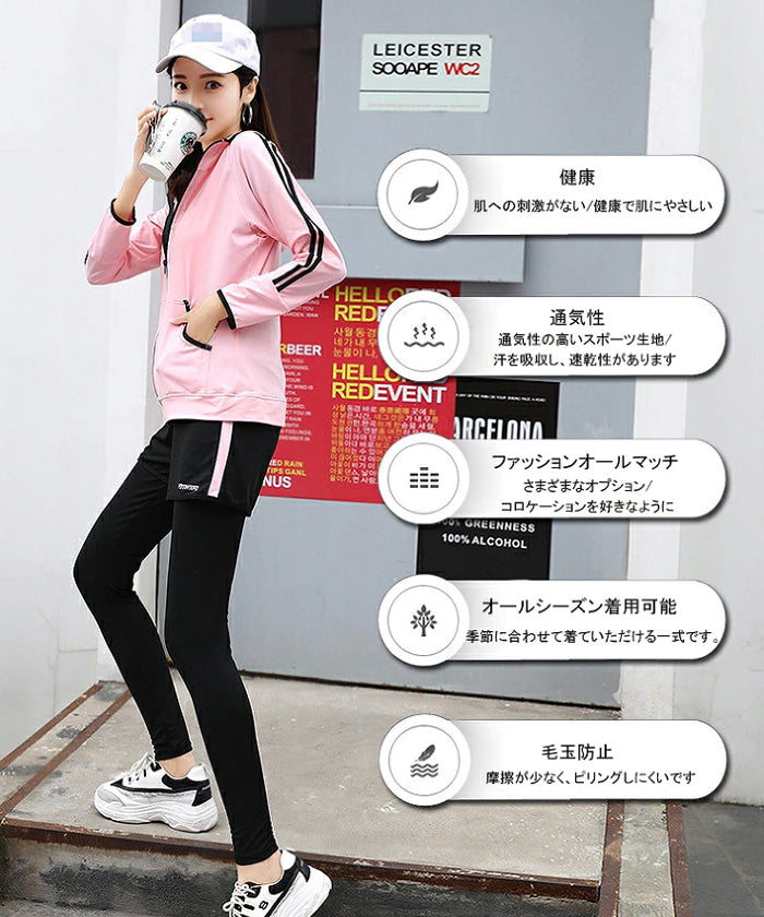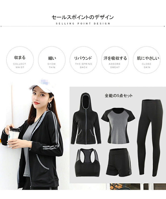 スポーツウェア 5点セット パーカー 長袖 上下セット Tシャツ 半袖 フィットネスウェア 速乾性 セットアップ ヨガ ピラティス スポーツ フィットネス ランニングウェア トレーニング ジム