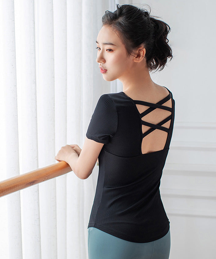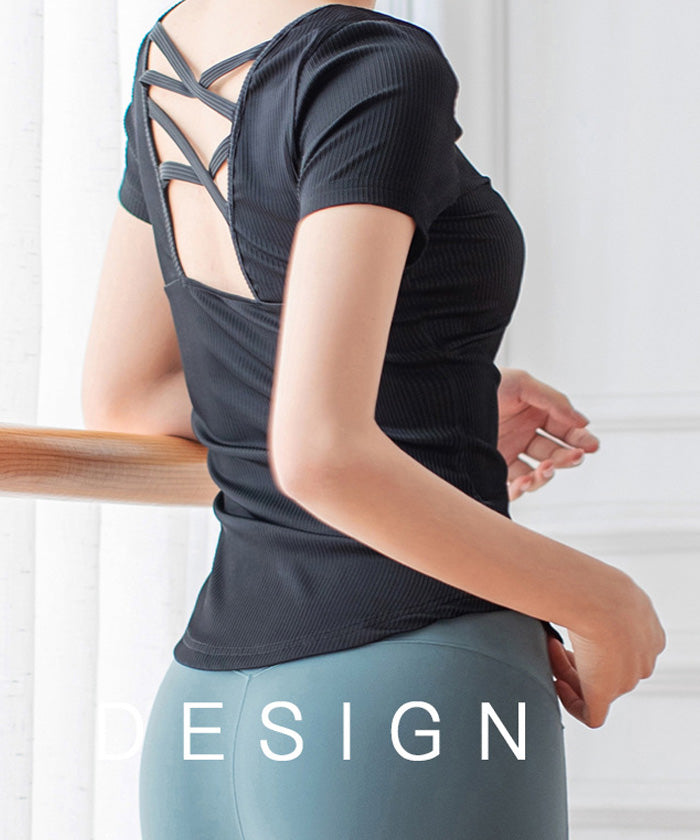 ヨガウェア 半袖スポーツトップス フィットネスウェア スポーツ半袖Tシャツ ランニングトレーニング スリムフィット 肌に優しい 高伸縮性 痩身リブ