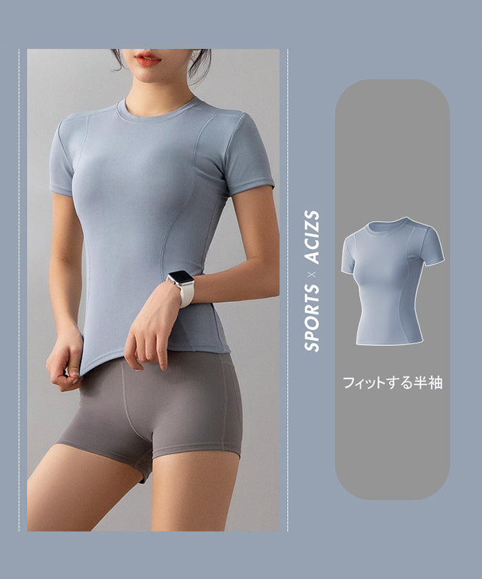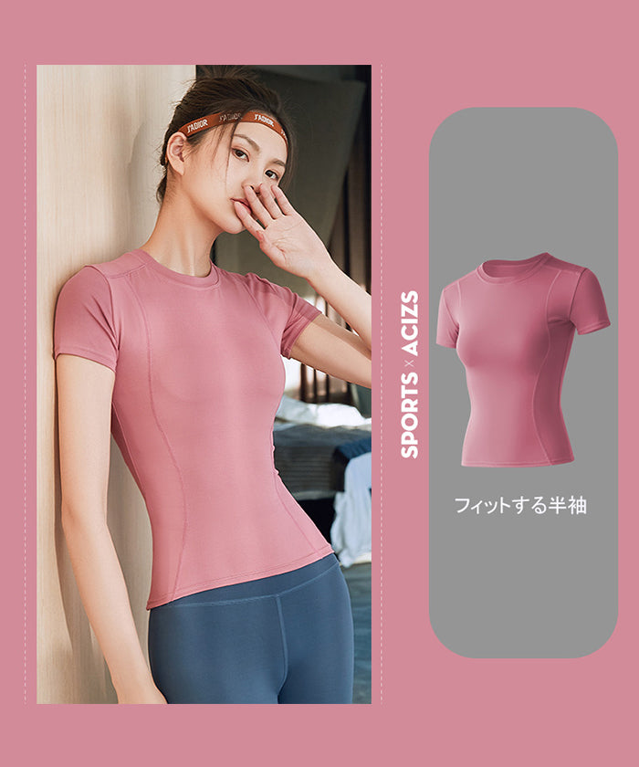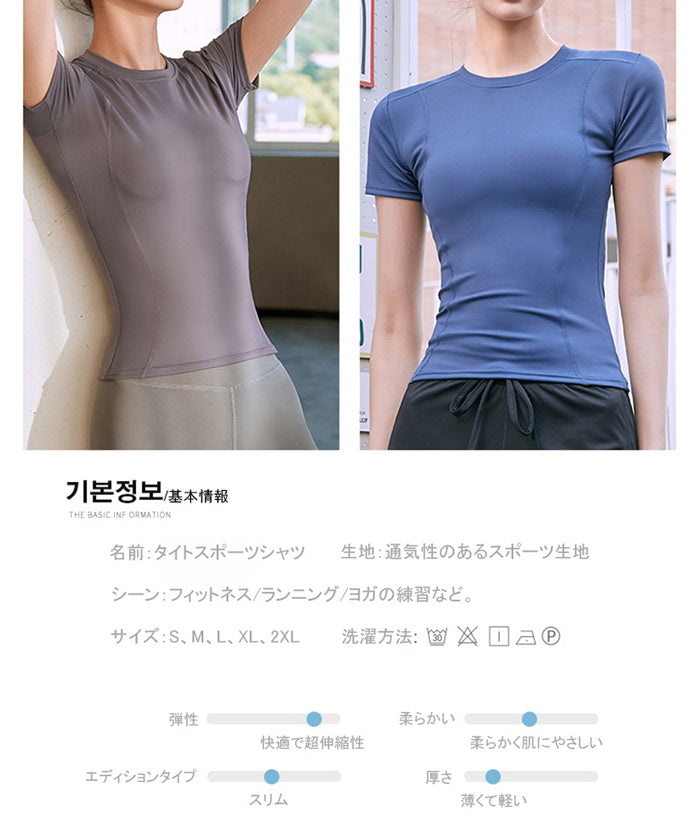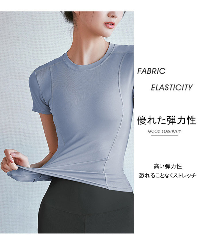 レディースヨガウェア 大きいサイズ トレーニングウェア スポーツTシャツ 半袖 速乾性