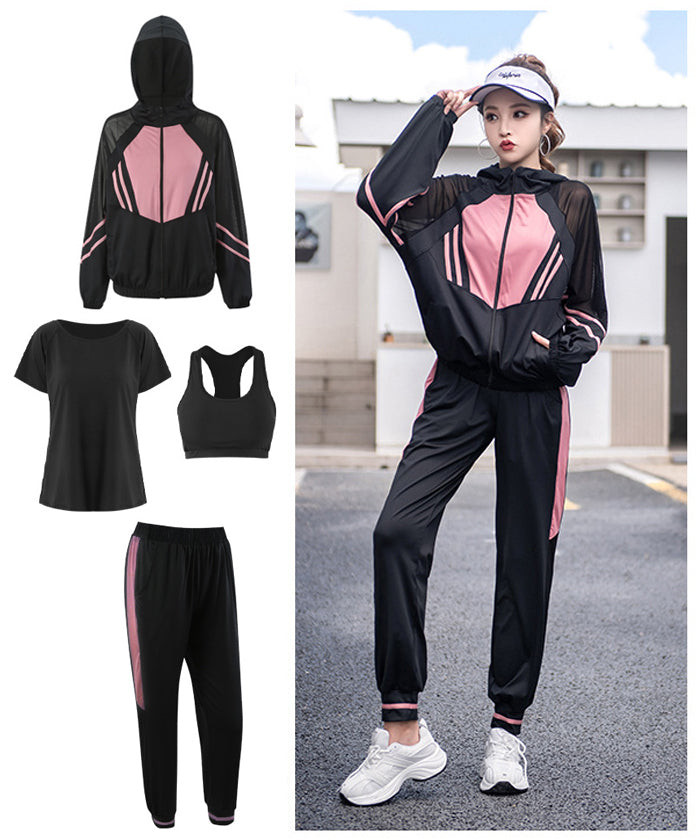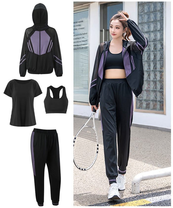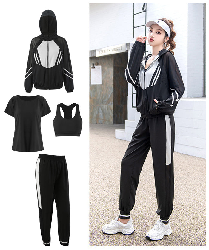 新作 レディース スポーツウェア 大きいサイズ 3カラー シンプル スポーツブラ レディースウェア スポーツウェアセット 4点セット パーカー 長袖 Tシャツ 半袖 上下セット フィットネスウェア 速乾性