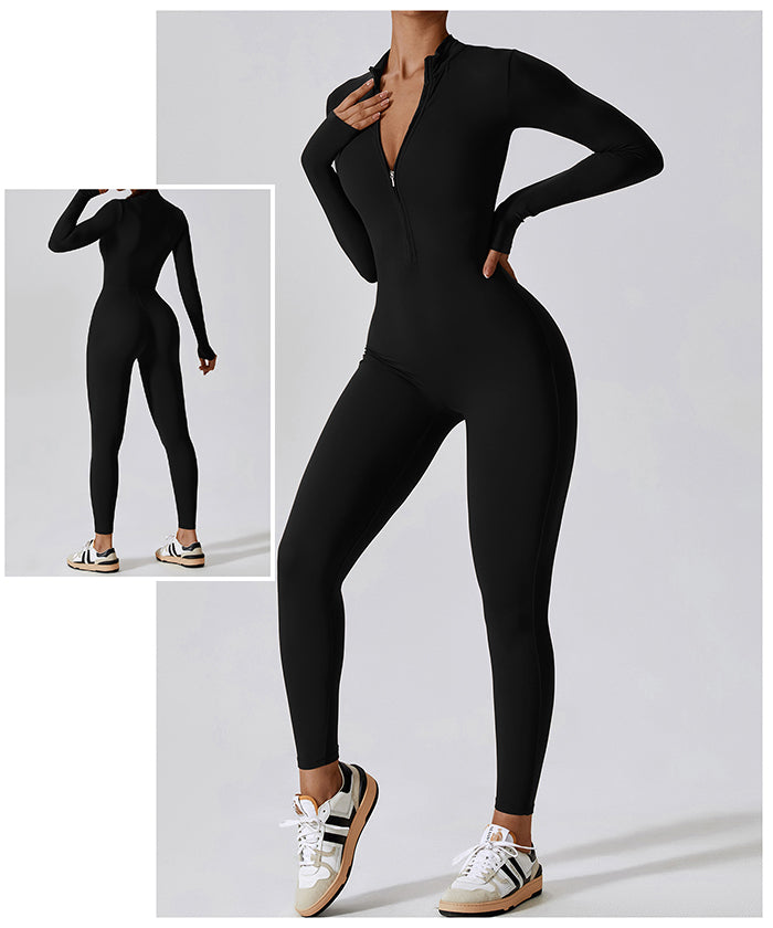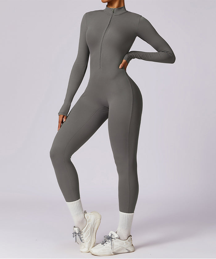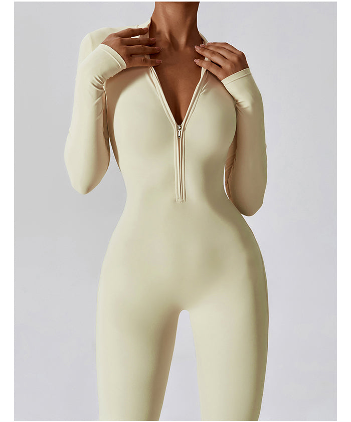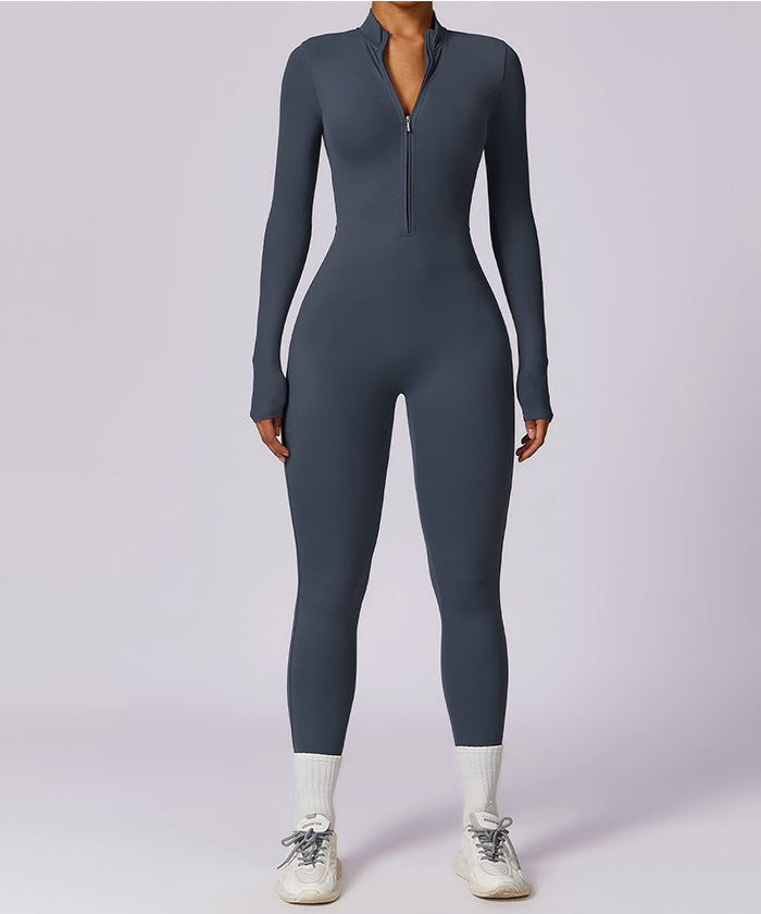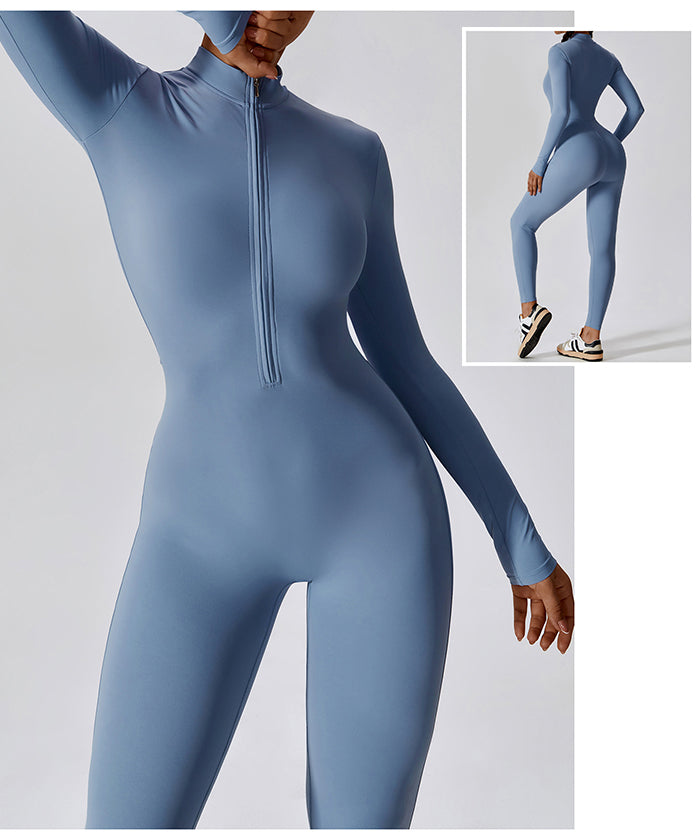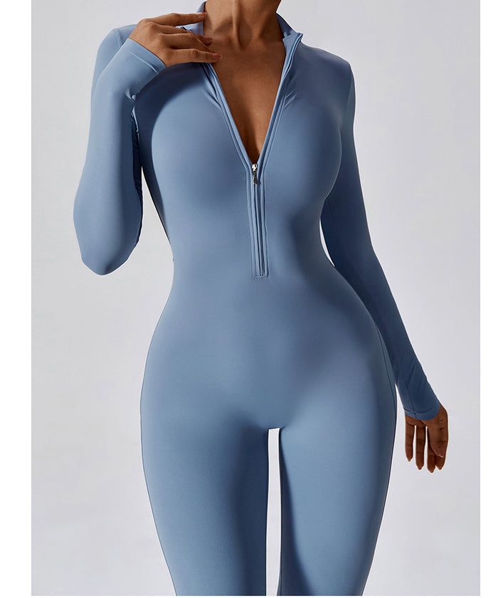ボディスーツレディース 長袖 ヨガウェア ジッパー ヌード ジャンプスーツ 高強度 フィットネス スポーツ 女性用
