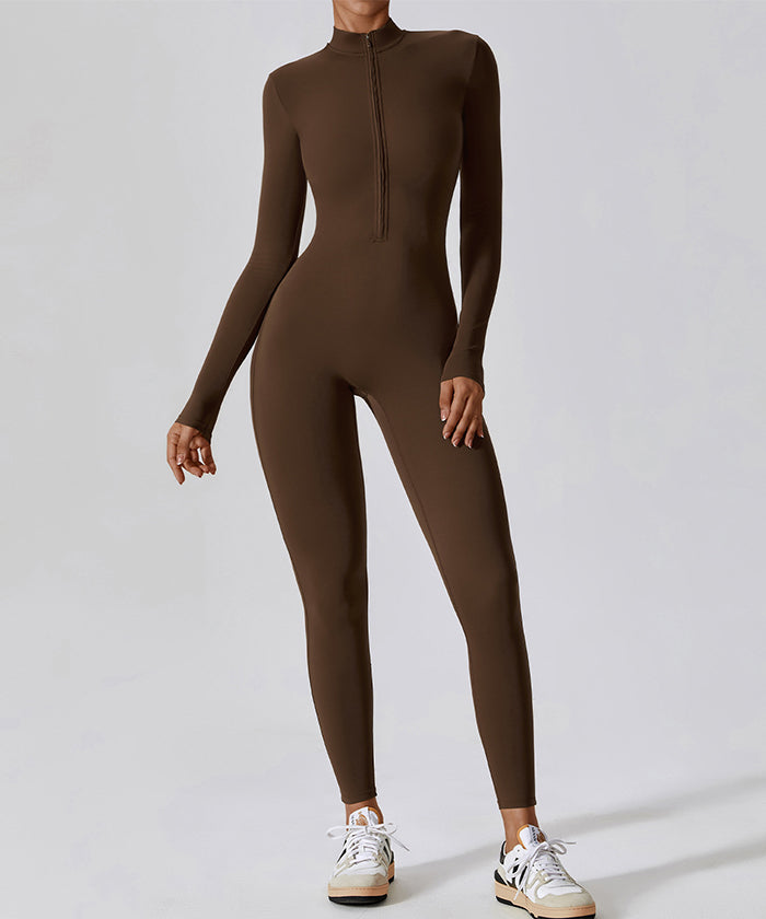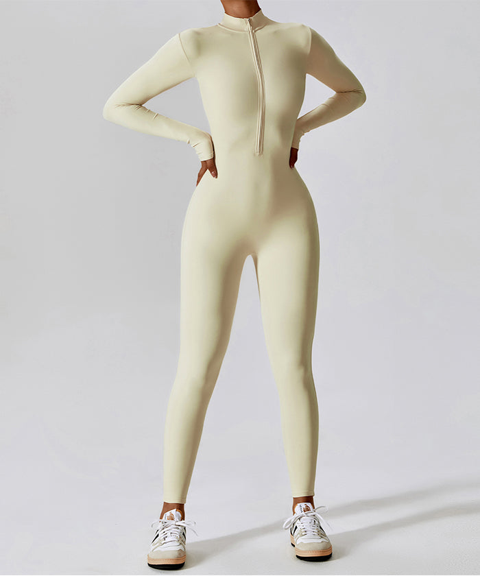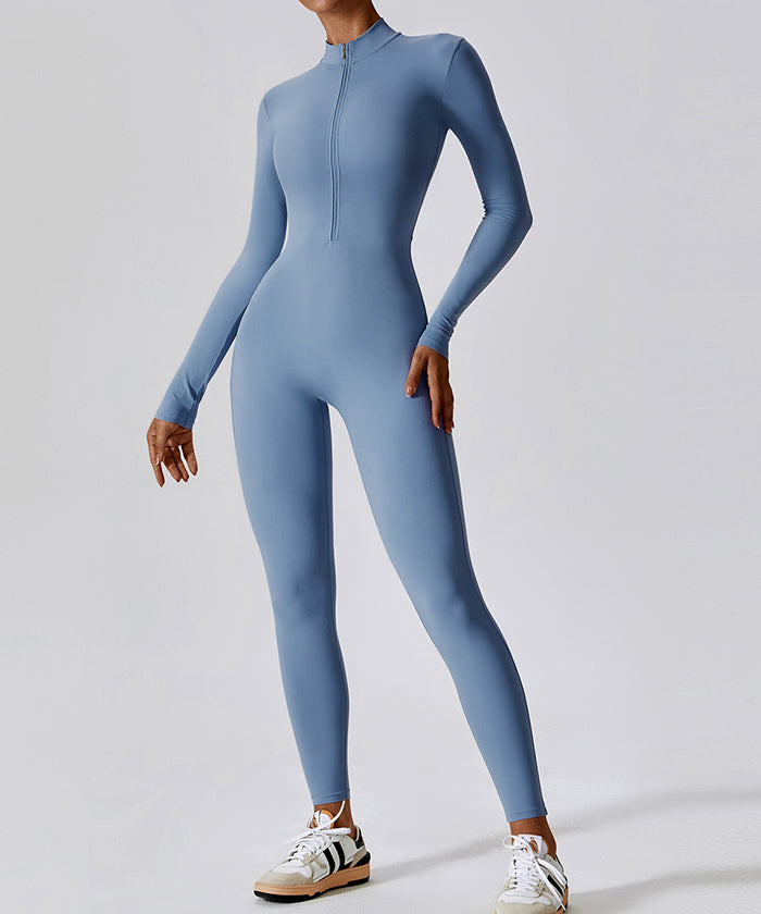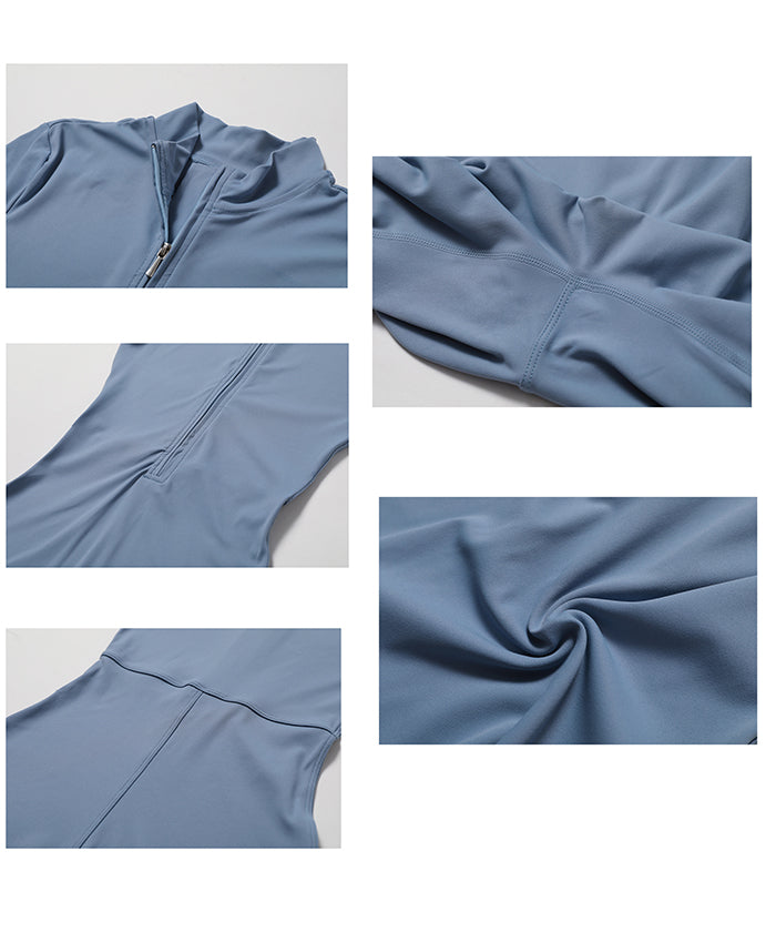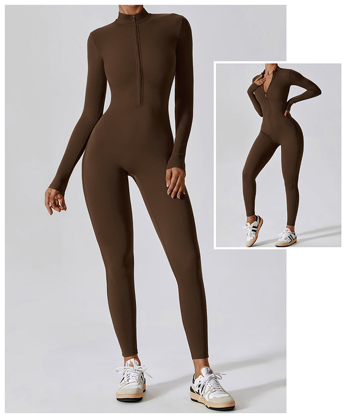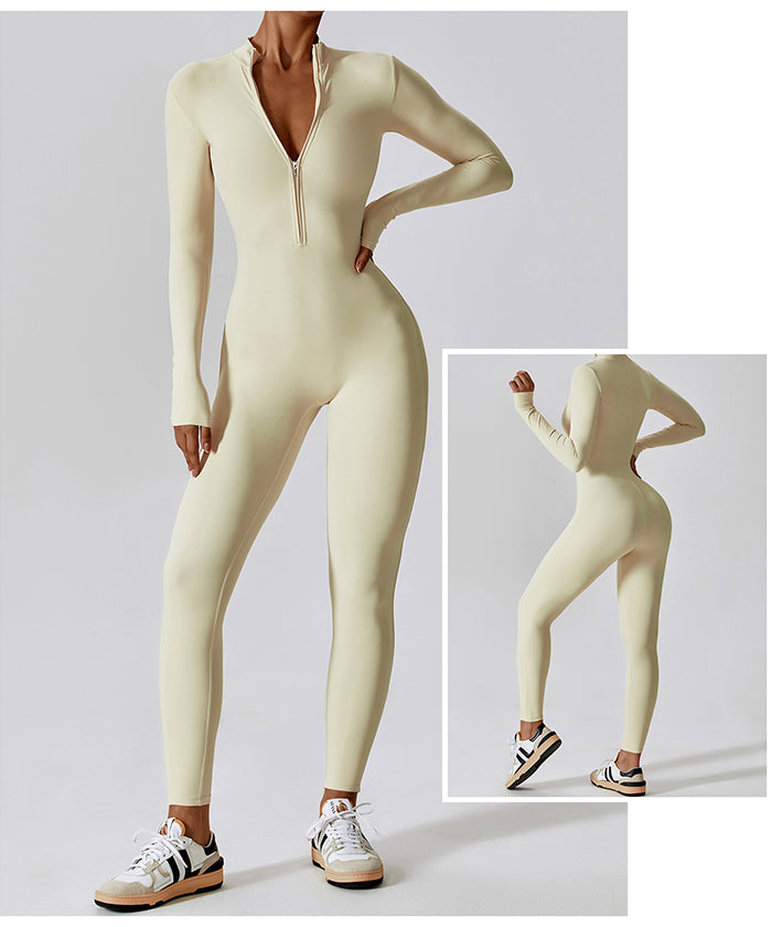 ボディスーツレディース 長袖 ヨガウェア ジッパー ヌード ジャンプスーツ 高強度 フィットネス スポーツ 女性用