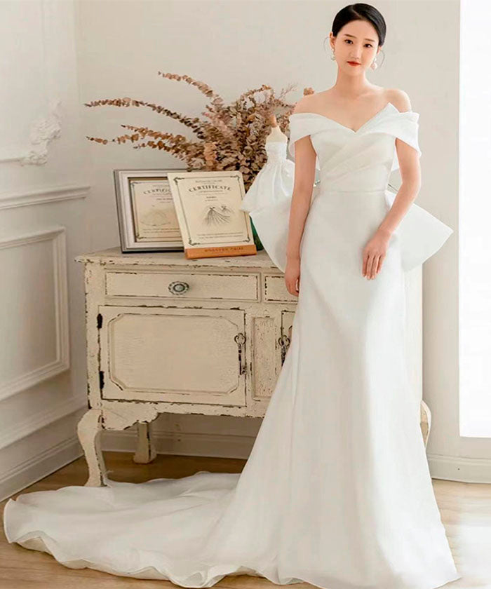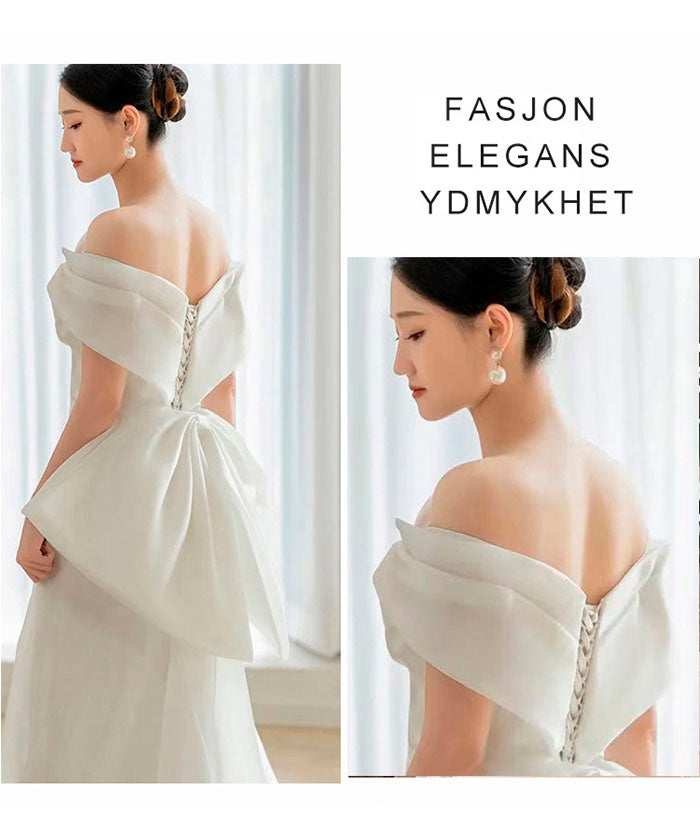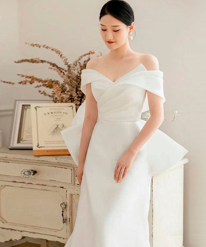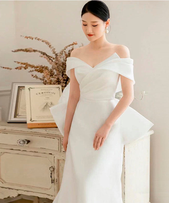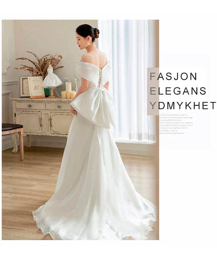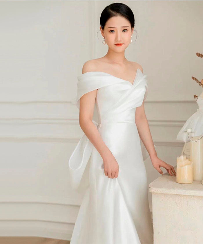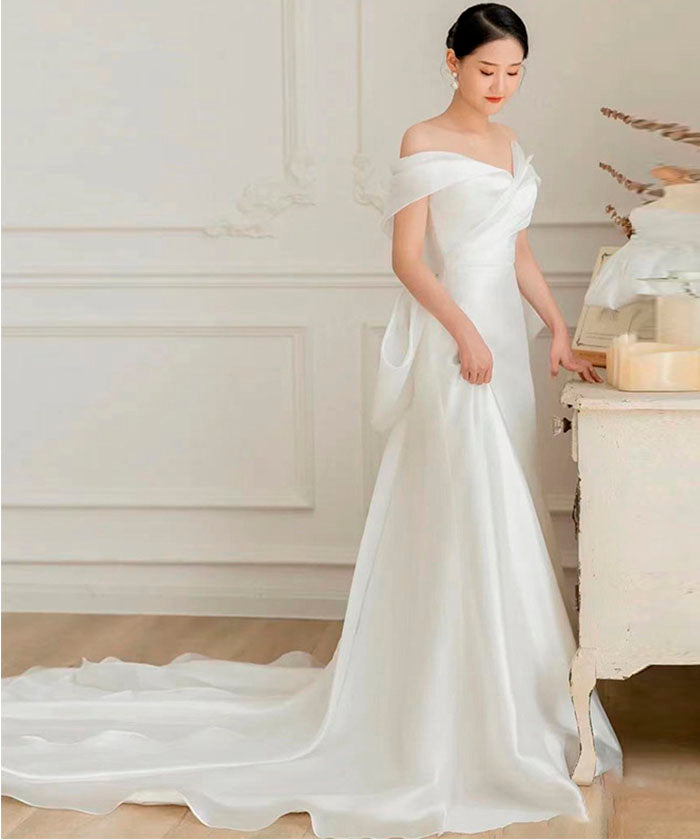 サテン ライトウェディング ドレス フレンチ スタイル ワンショルダー ウェディングドレス 夏 花嫁 トーストドレスレッド