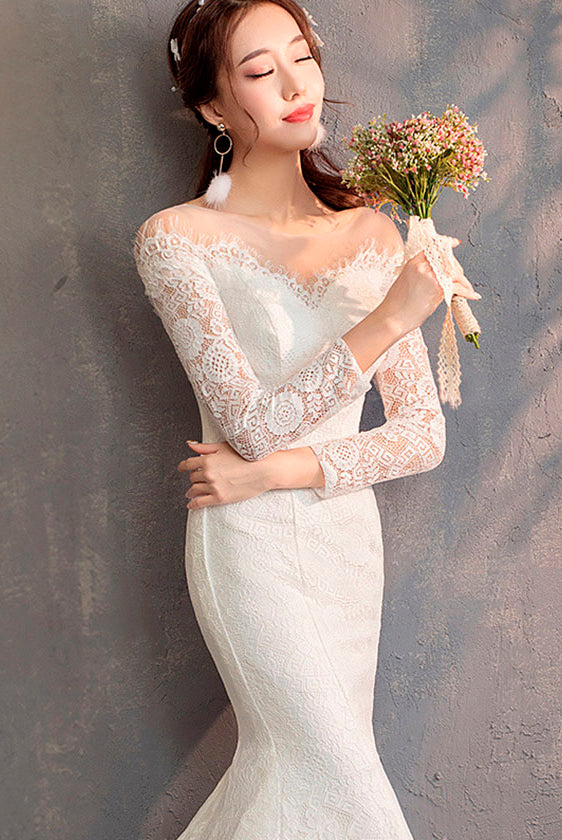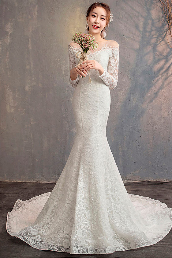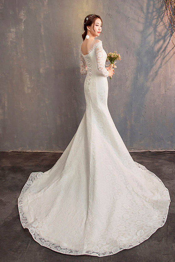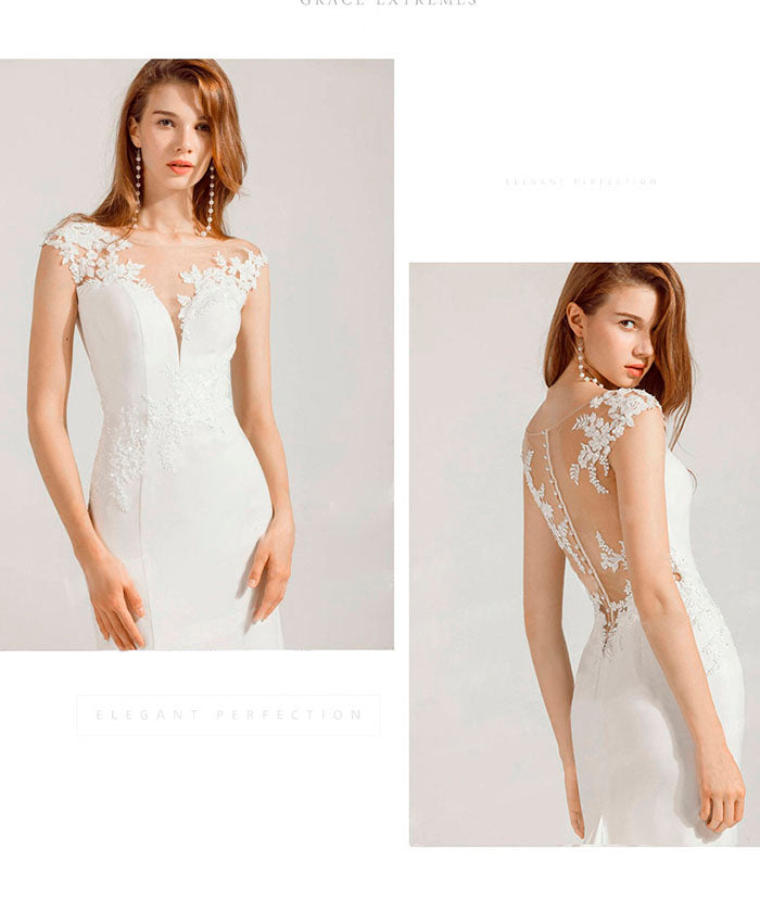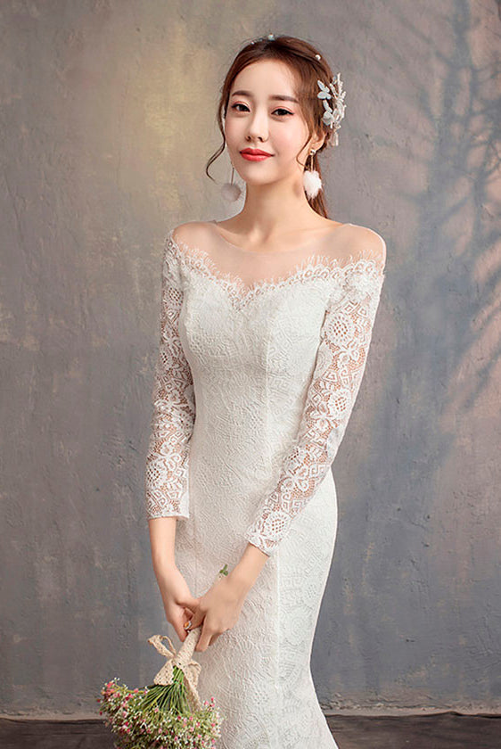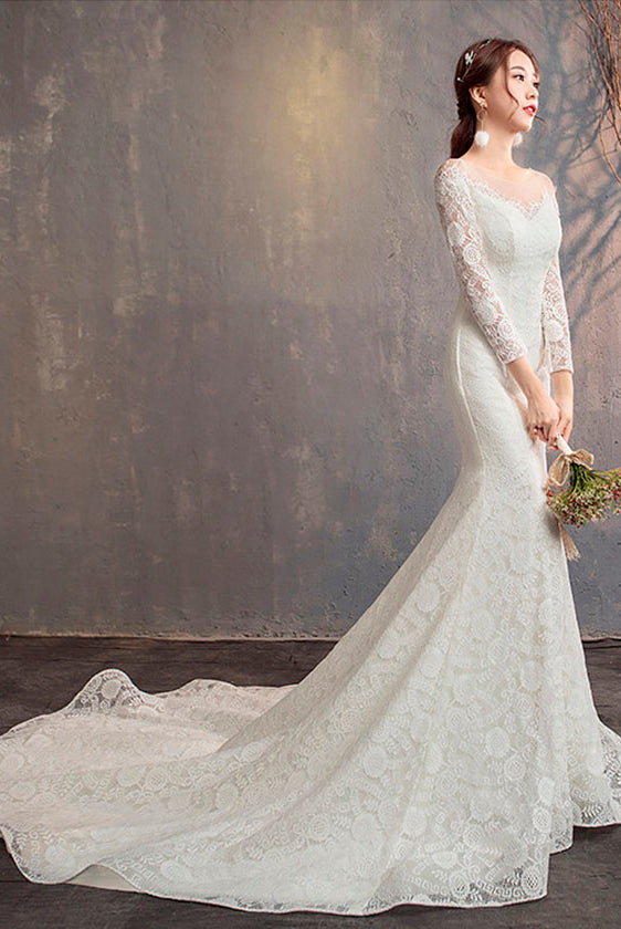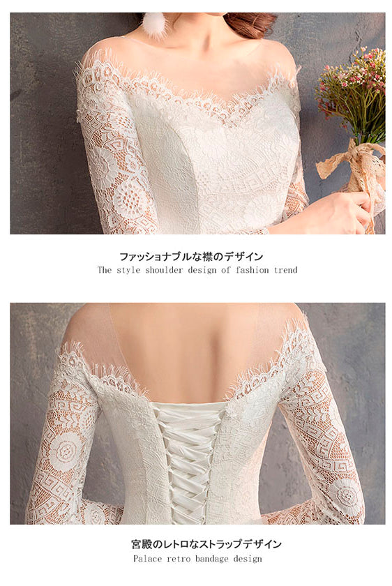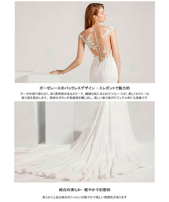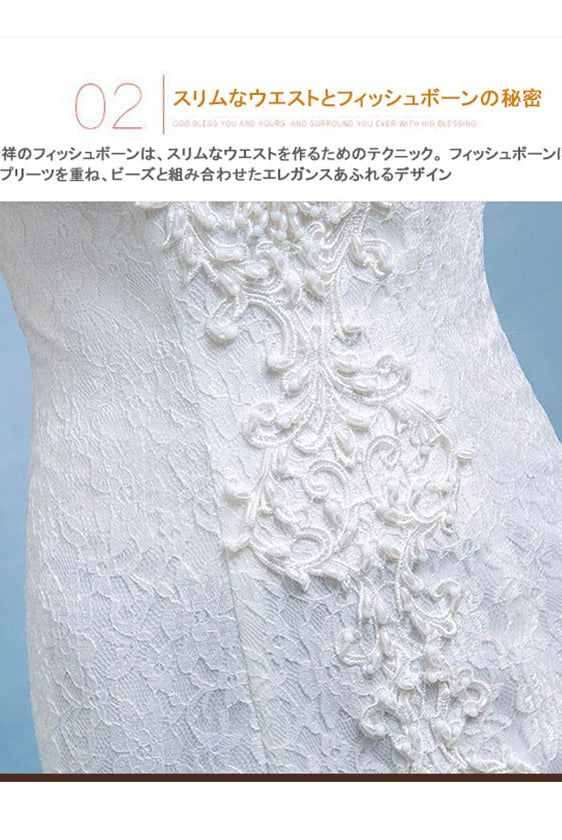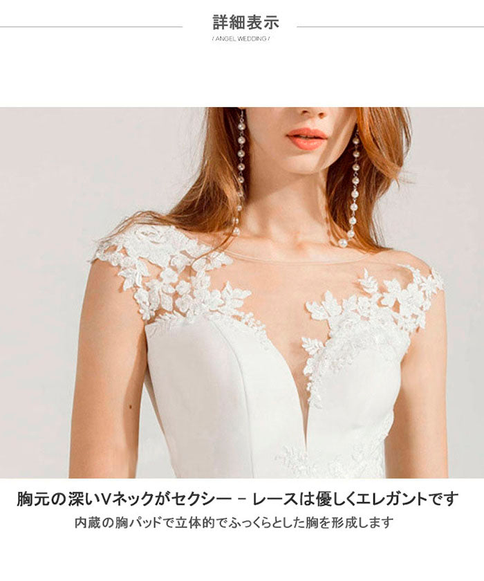 フィッシュテール マーメイド トレーン ライト ウェディングドレス フォレストスタイル スリム セクシー Vネックドレス