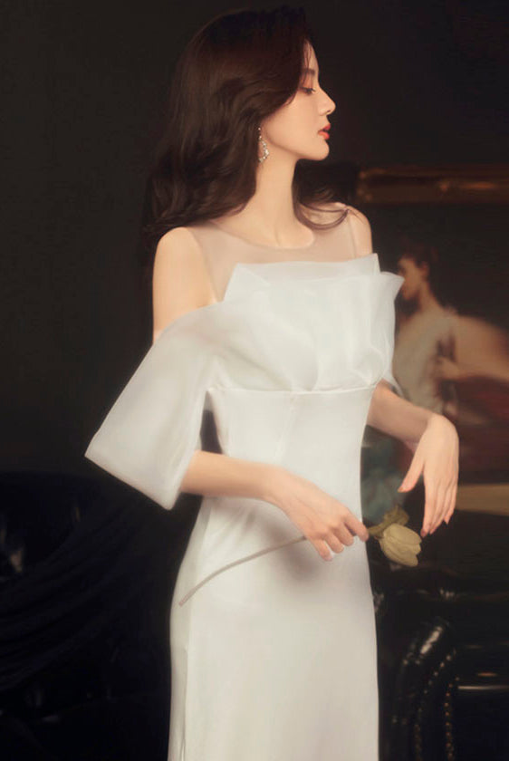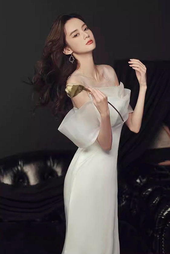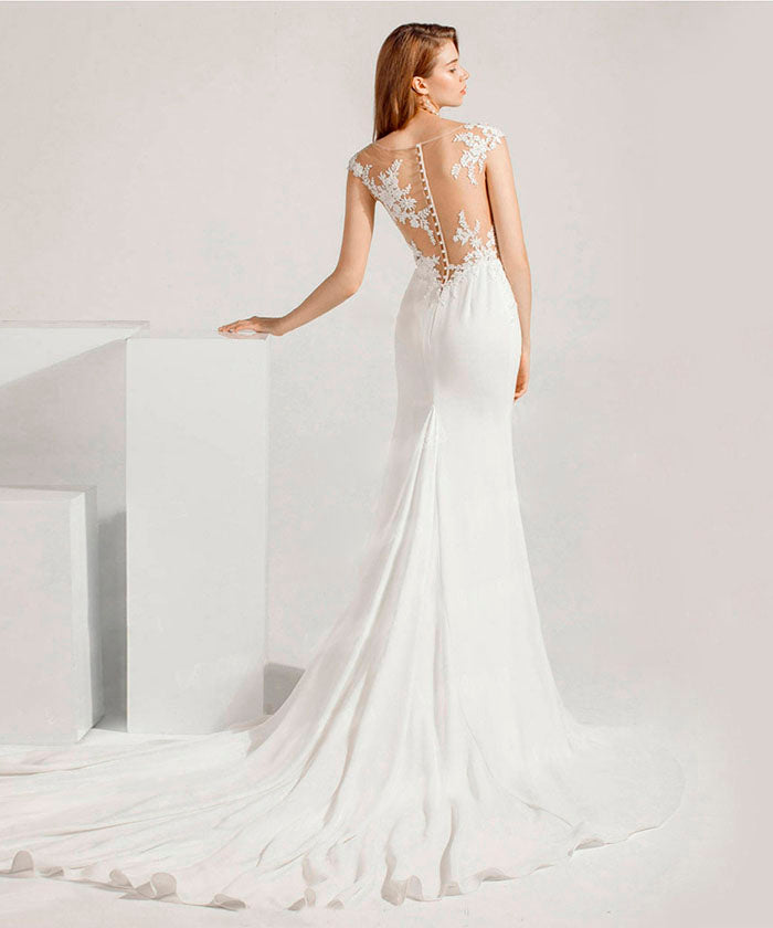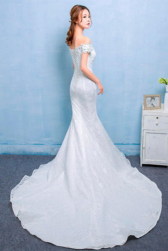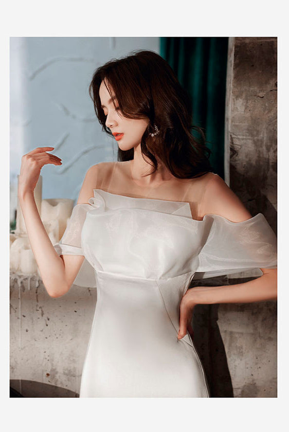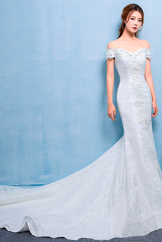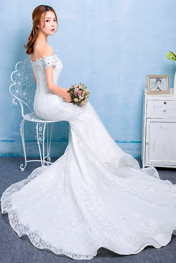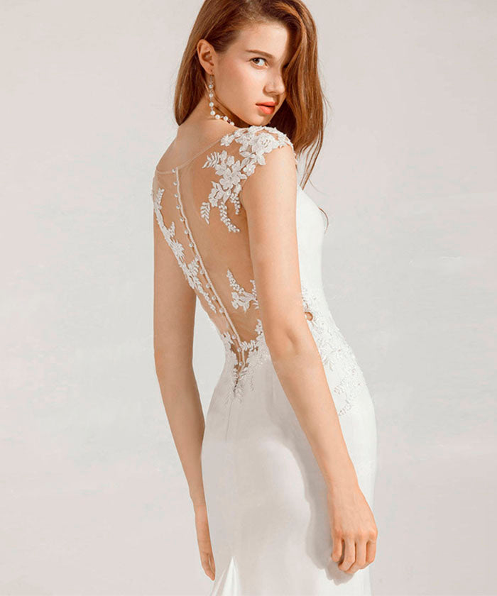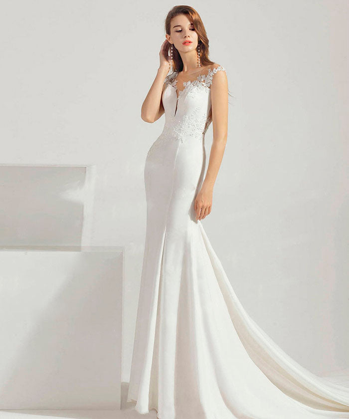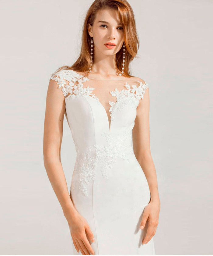 フィッシュテール マーメイド トレーン ライト ウェディングドレス フォレストスタイル スリム セクシー Vネックドレス