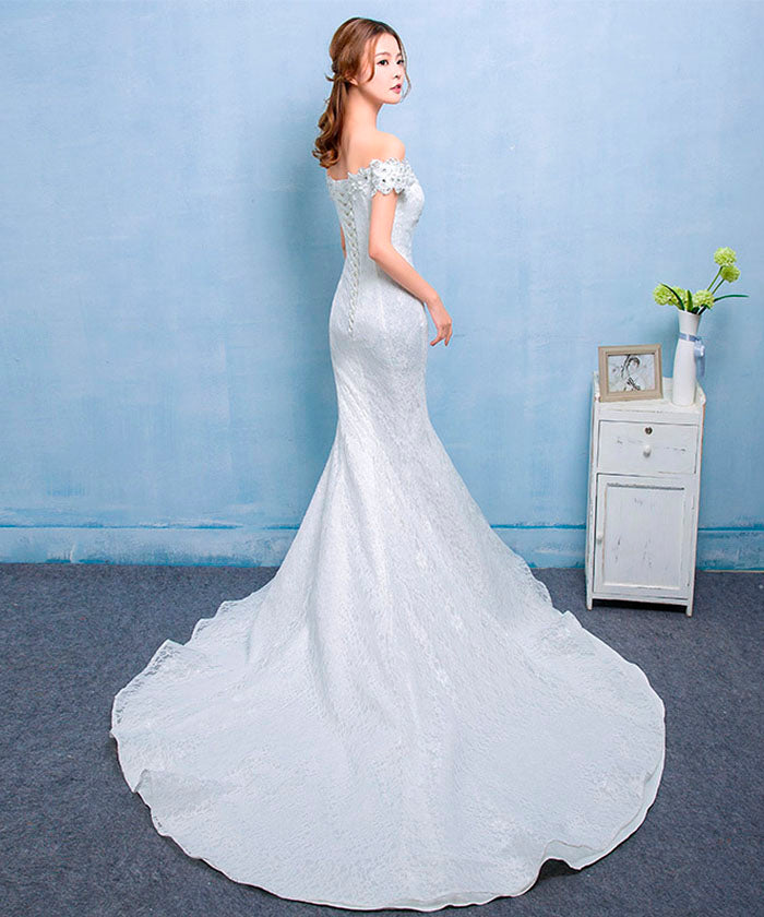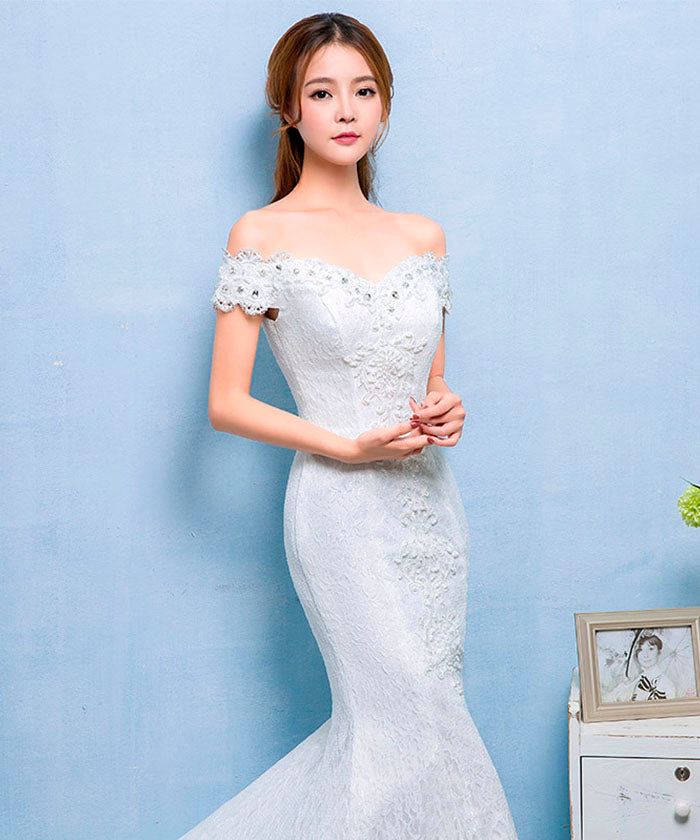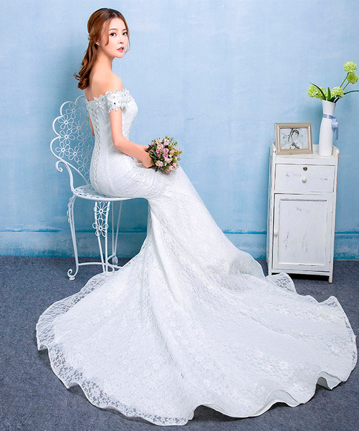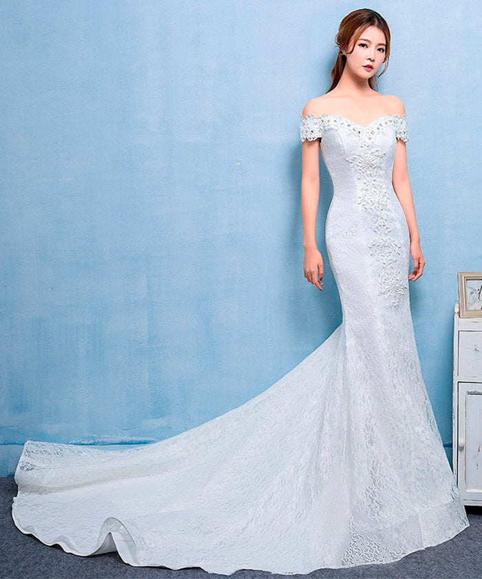 ワンショルダー マーメイドウェディングドレス ロングテール付き レー ススリムフィットガウン 韓国スタイル スリムフィット ワンショルダー イブニングドレス