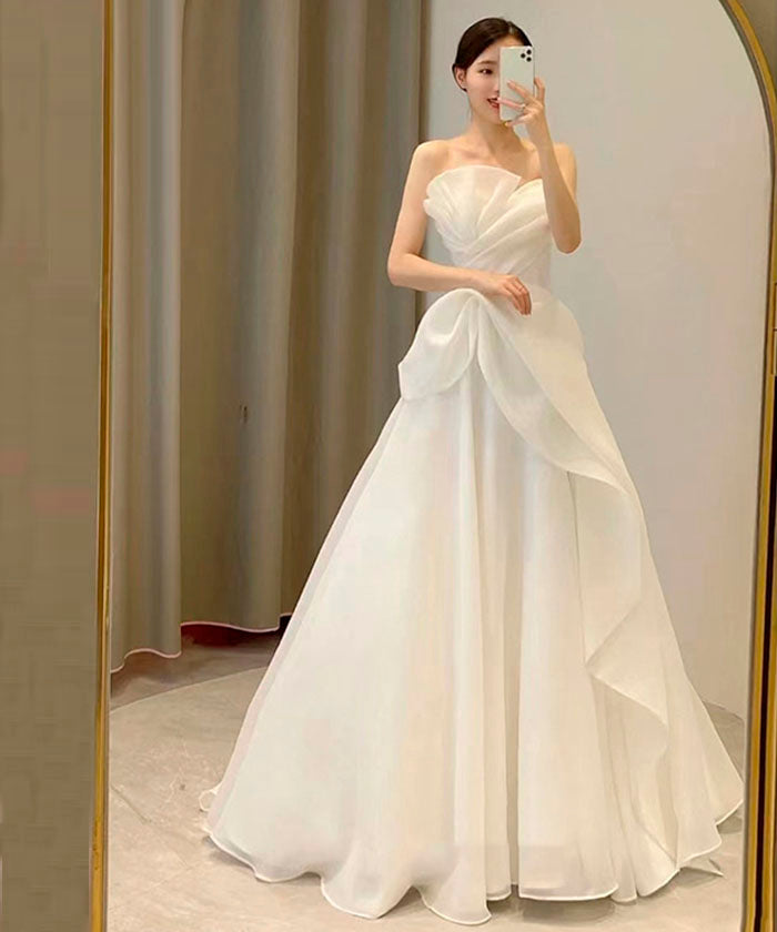 光の結婚式のブライダルのビスチェは、ドアのベールの薄いメインベールの旅行撮影歓迎ベールの小さな後を引くフラッシュ地面のシンプルなアウト