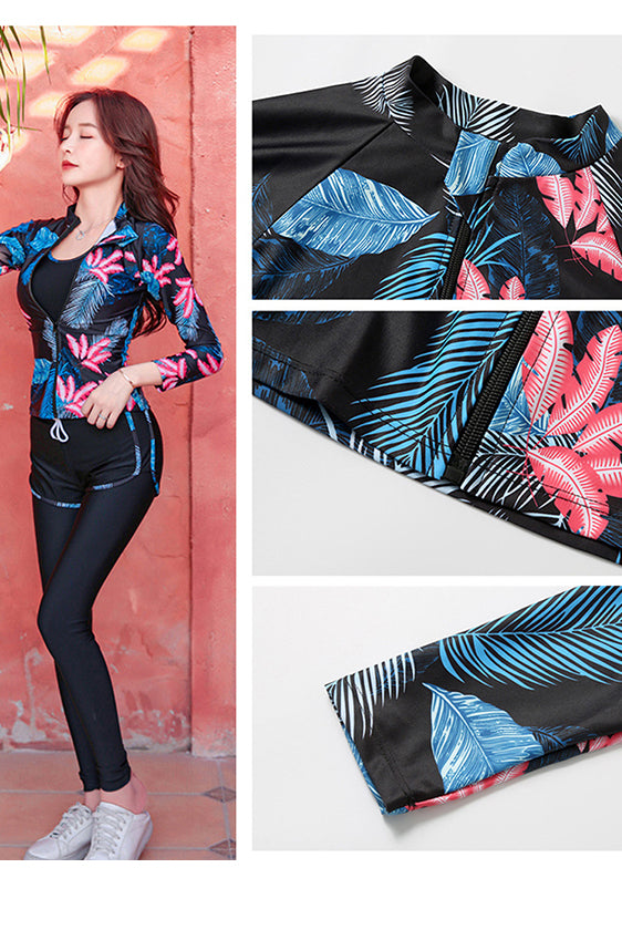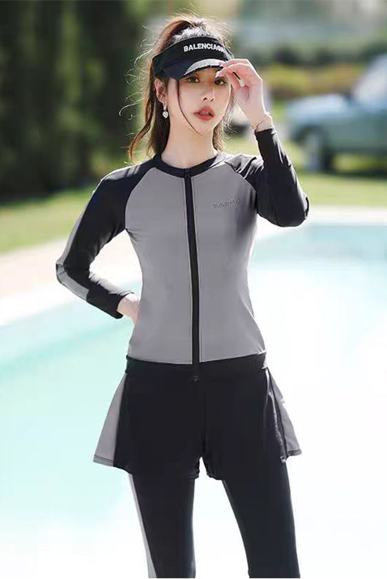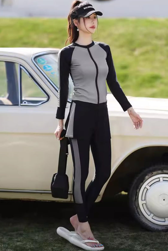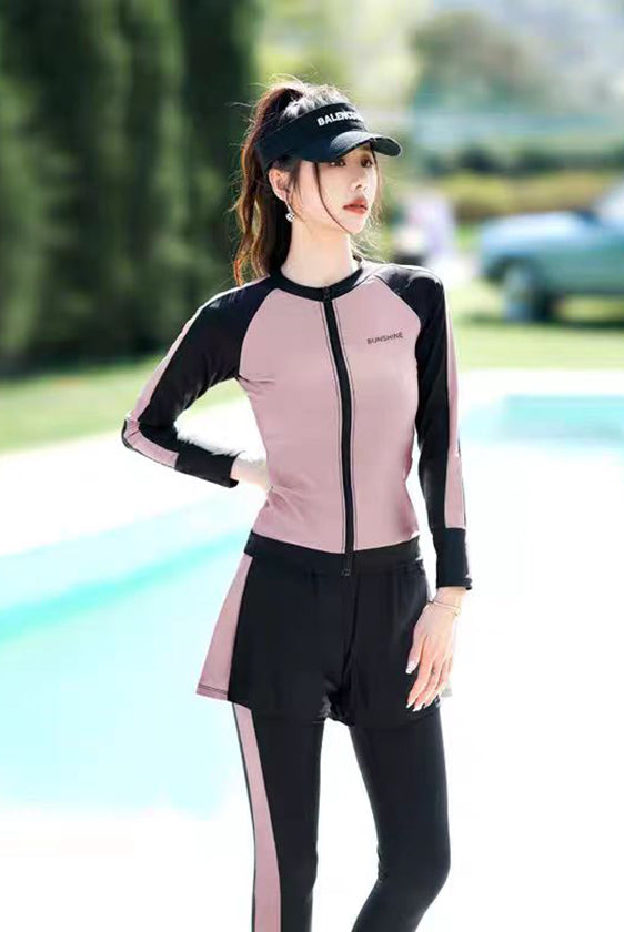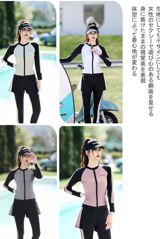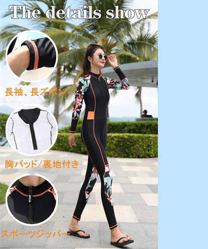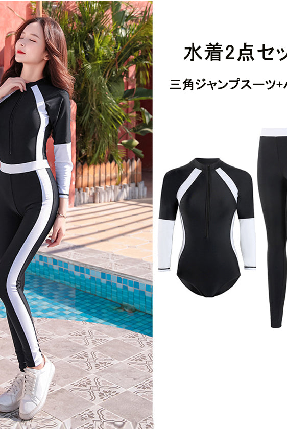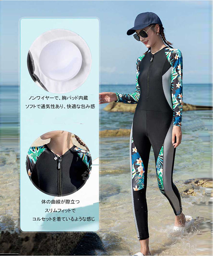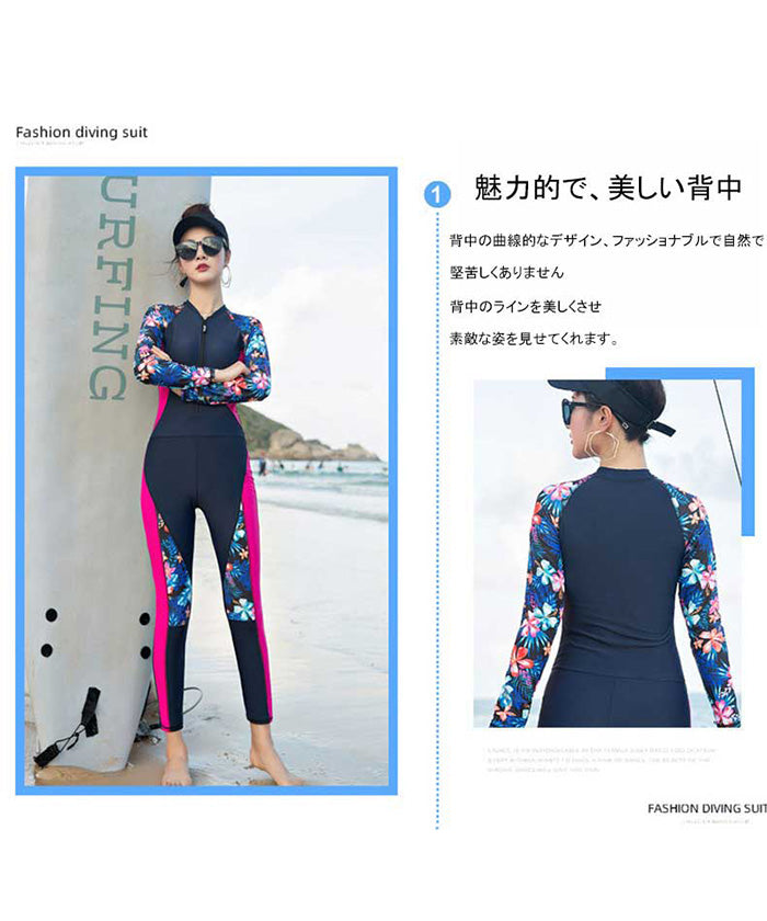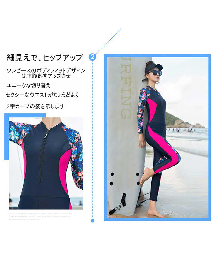 レディース水着 大きいサイズ ワンピース 体型カバー ジム プール フィットネス 可愛い おしゃれ 20代 30代 40代 長袖 パンツタイプ スリム ウェット スーツ 女性 スリム フィット