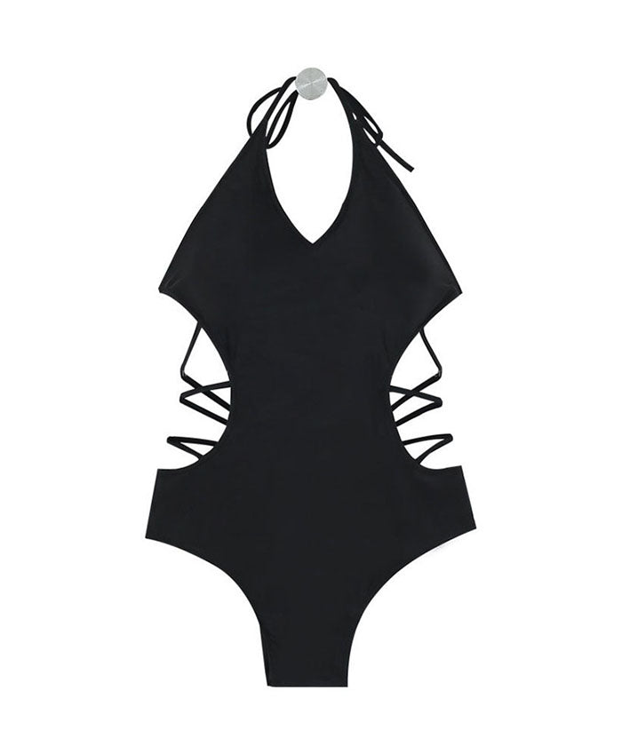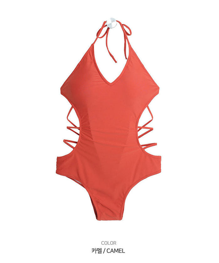 水着レディース 20代 30代 可愛い ワンピース ギャル 黒 オレンジ オールインワン 女性用 大人 女の子 ホルターネック シンプル プール 海 ビーチ 旅行