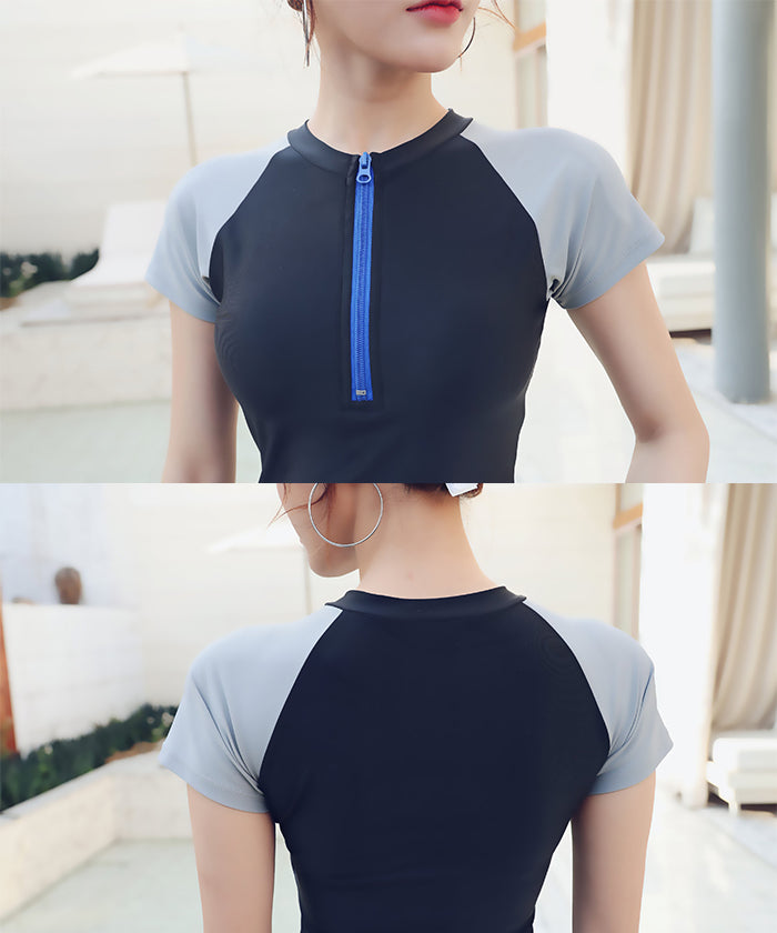 水着 レディース セパレート 半袖 ショート パンツ 日焼け 防止 体型 カバー スリム 効果 2点セット 海水浴 プール 大人水着