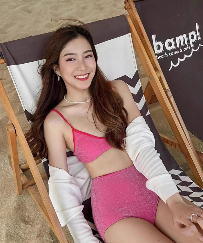 ビキニのハイウエストデザインは腹部をカバーすることができ、腹部を​​より平らに見せ、視覚的な修正効果を与えます。対照的な色の裾デザインがビキニ水着にハイライトを加え、全体をより視覚的なインパクトと個性にします。