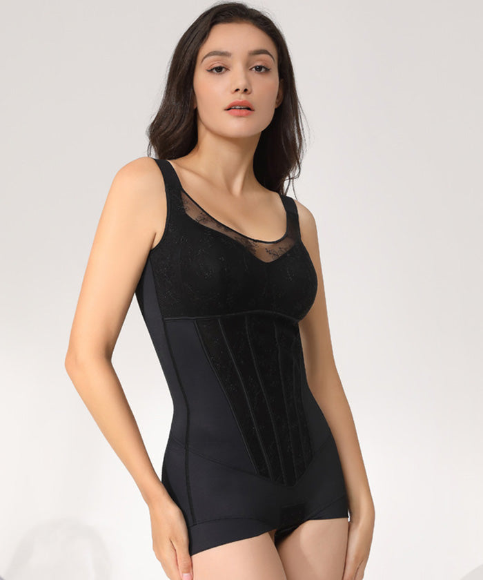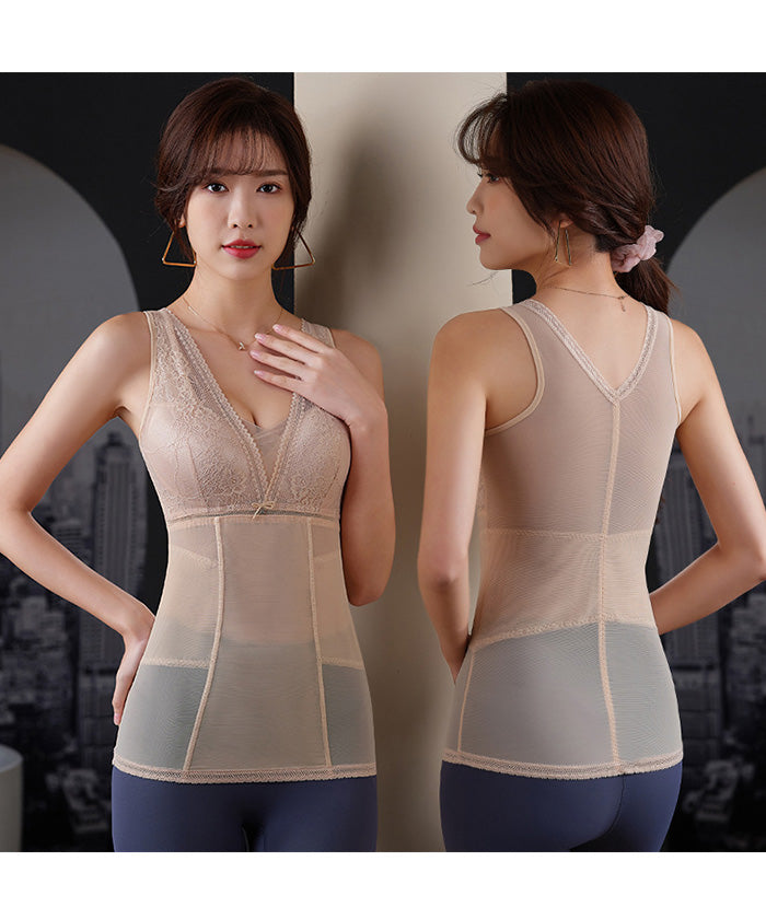 ボディスーツレディース V ネックレースベスト女性補正下着おなかコントロールバストコルセットベスト