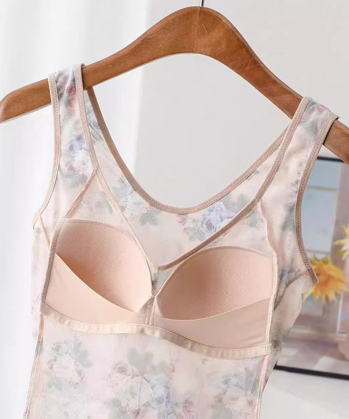 補正下着 ボディスーツレディース 大きい サイズ セクシー レース メッシュ プリント ロングベスト カップ付きインナー オールインワン セクシー レース メッシュプリント ランジェリー ロング タンクトップ ギャザー ブラ ワンピース