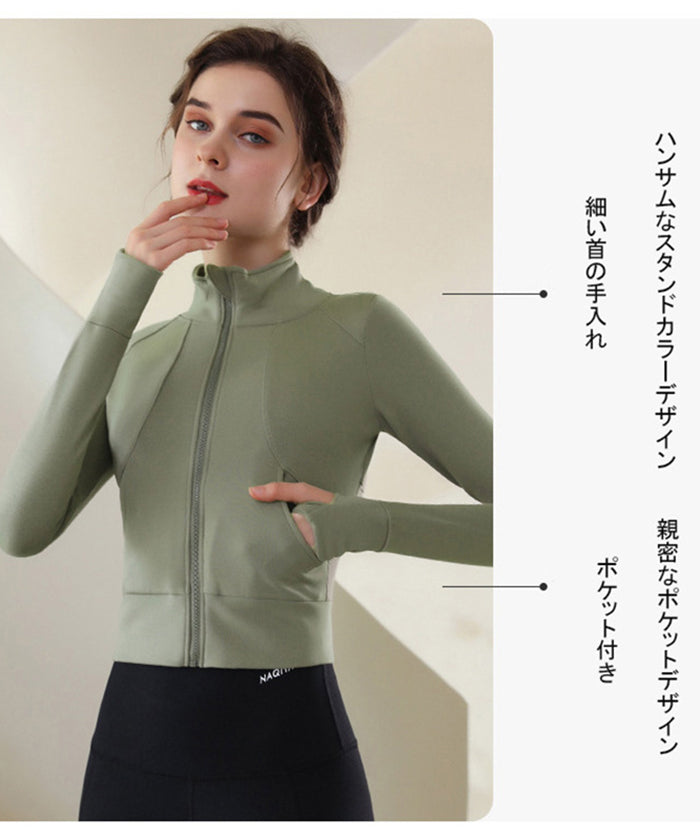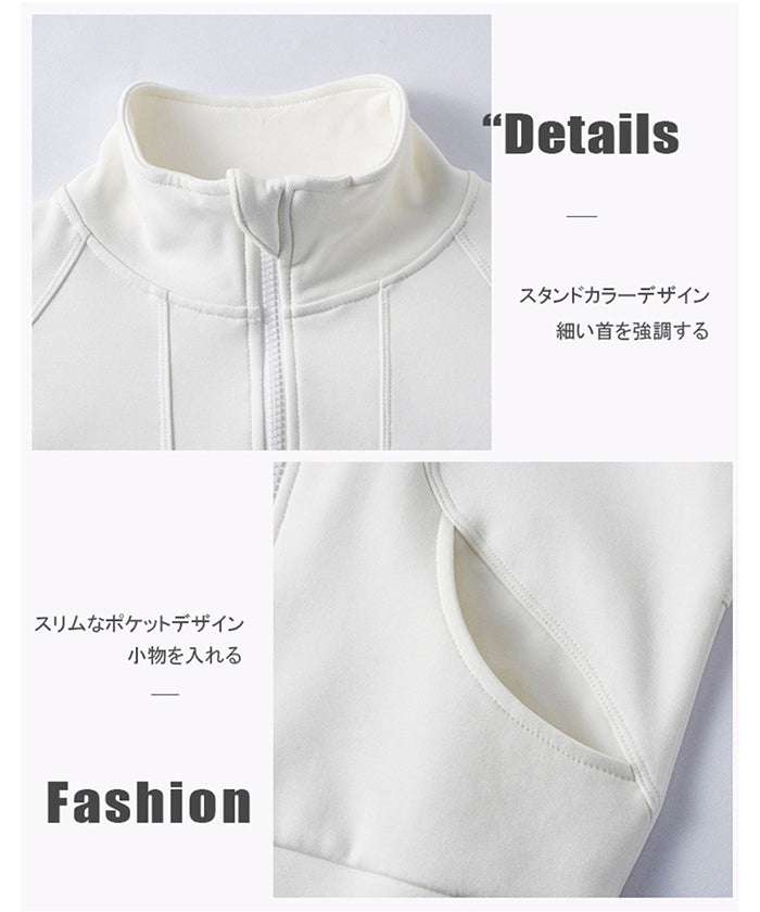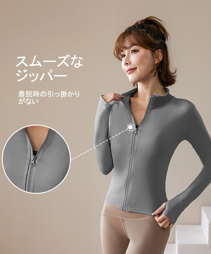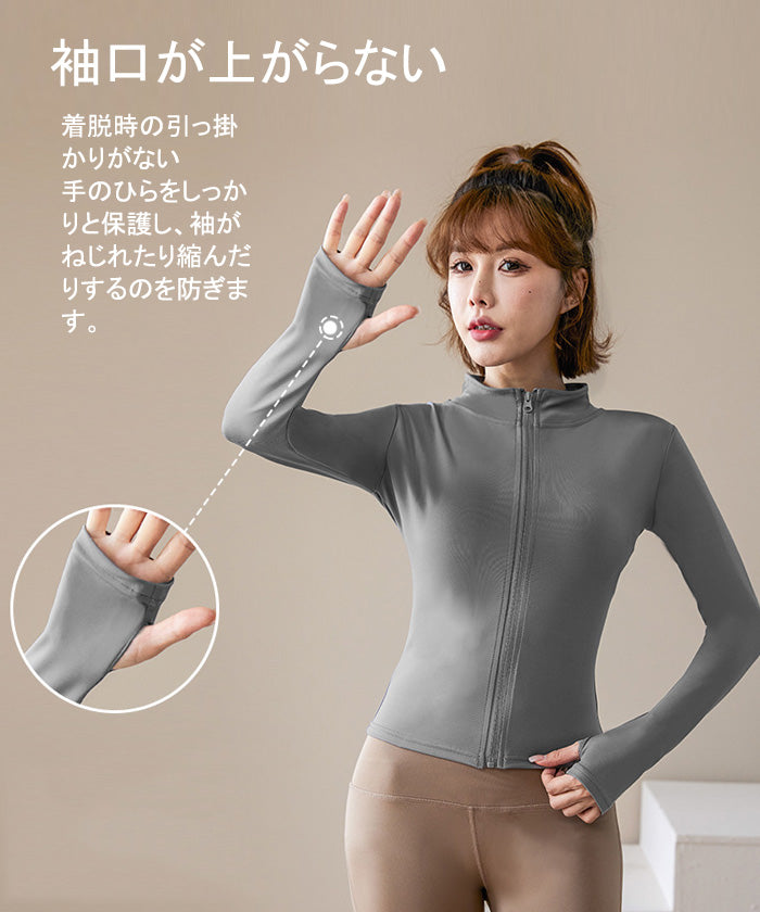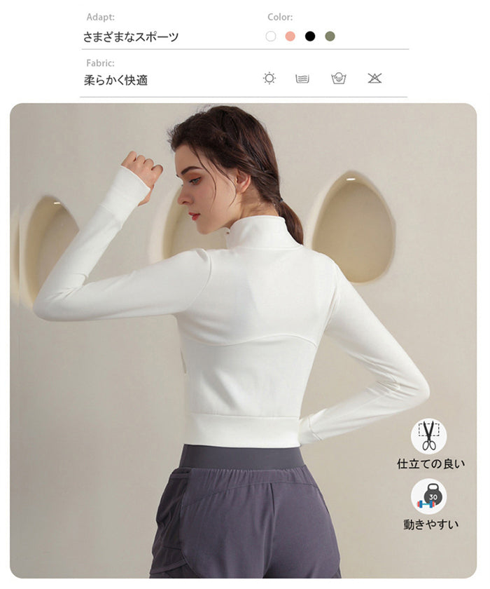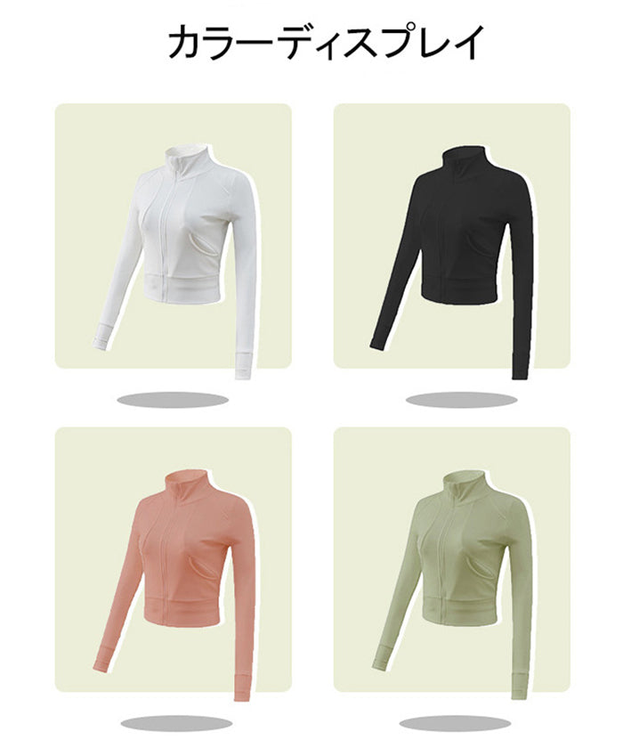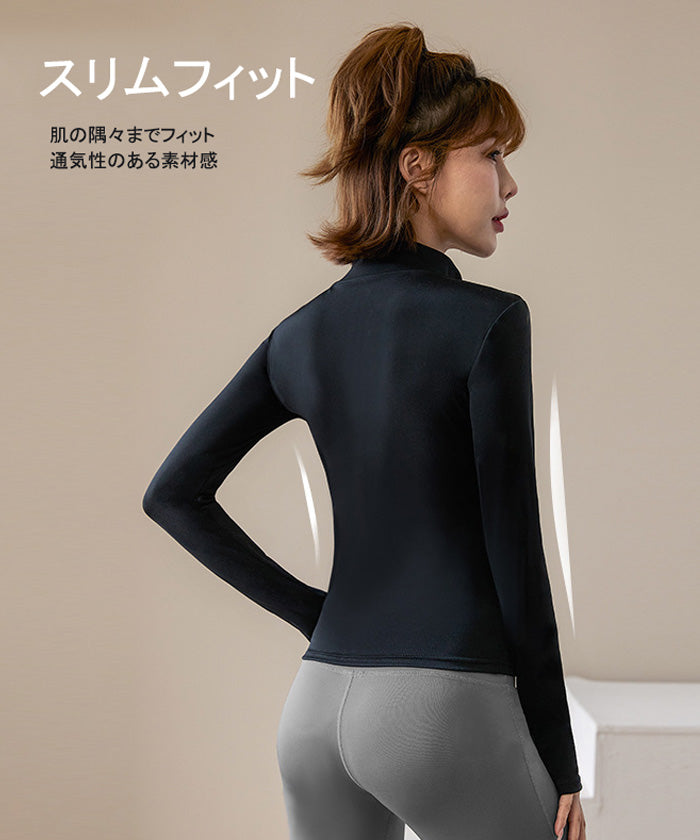 スポーツウェア 長袖 速乾性 スリムフィット フィットネス ランニング トレーニング ジッパー 体型カバー 日焼け対策 襟デザイン カジュアル