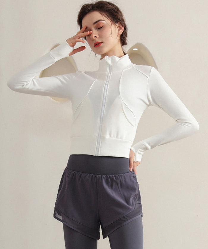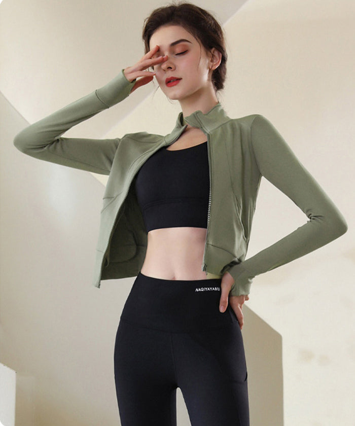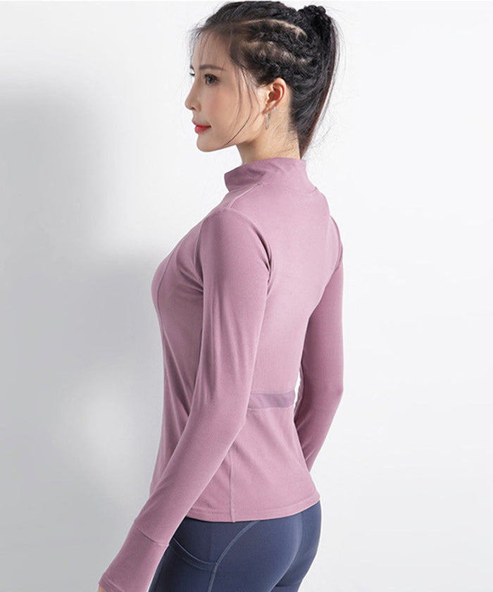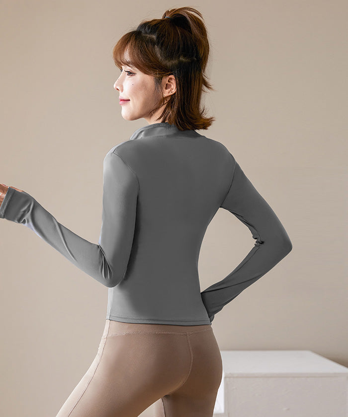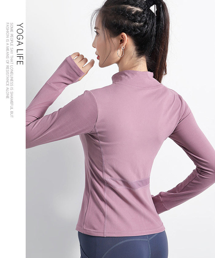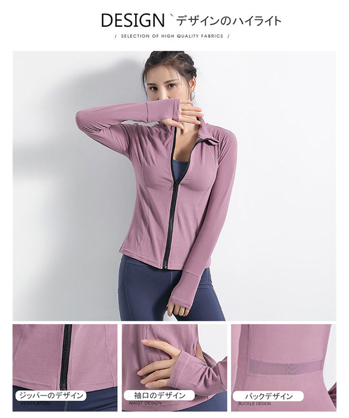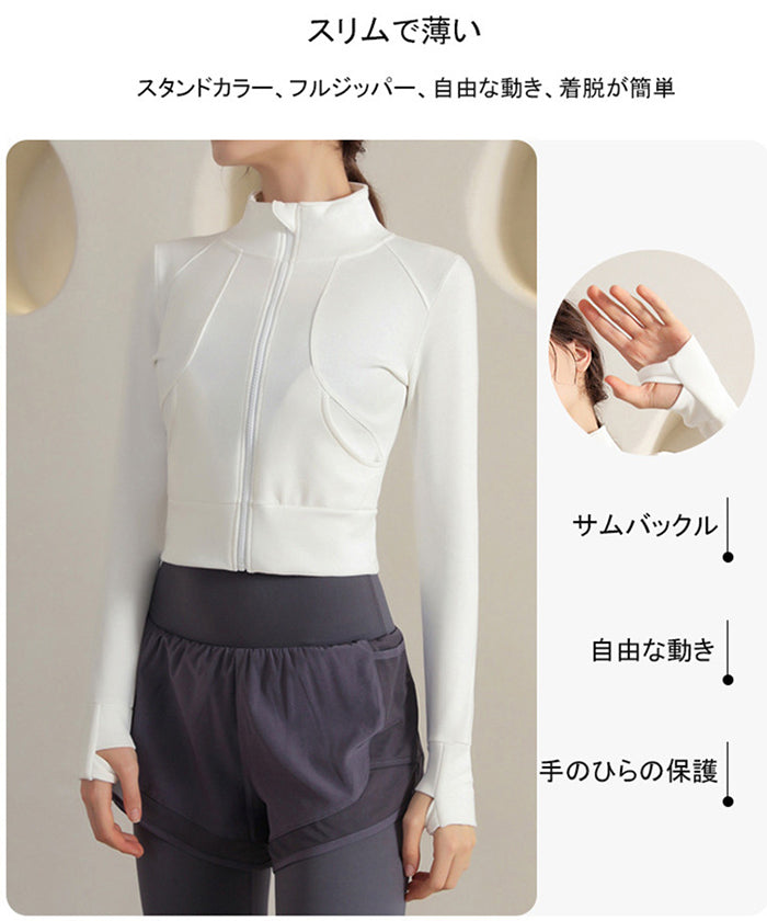 スポーツウェア 長袖 速乾性 スリムフィット フィットネス ランニング トレーニング ジッパー 体型カバー 日焼け対策 襟デザイン カジュアル