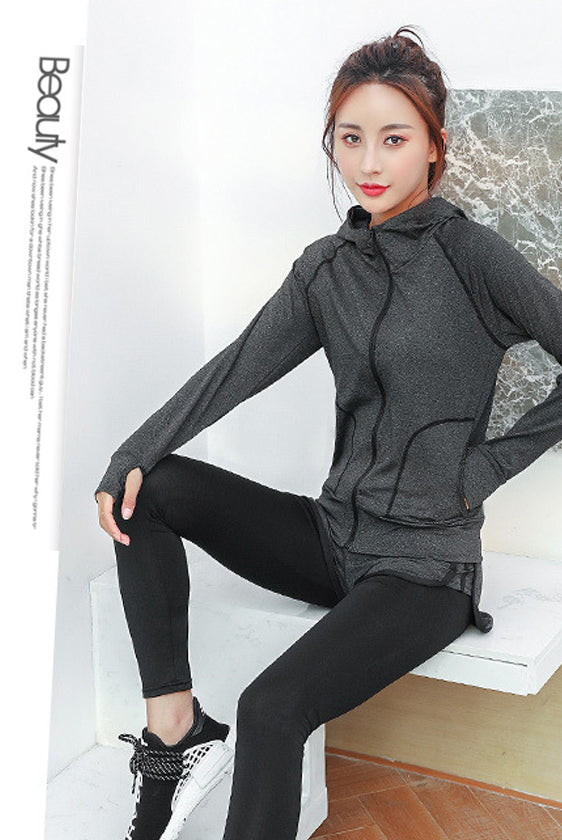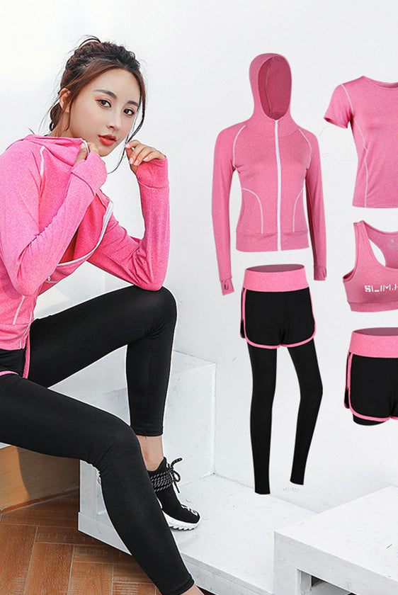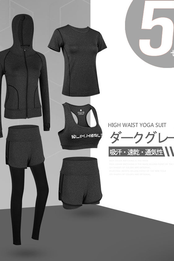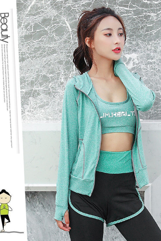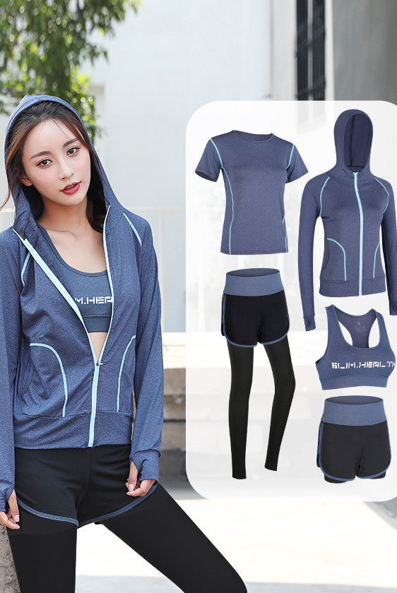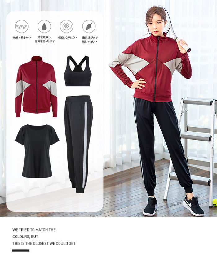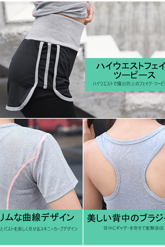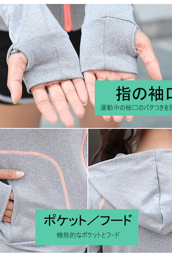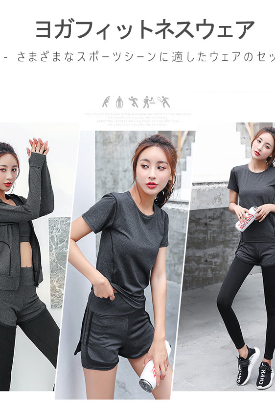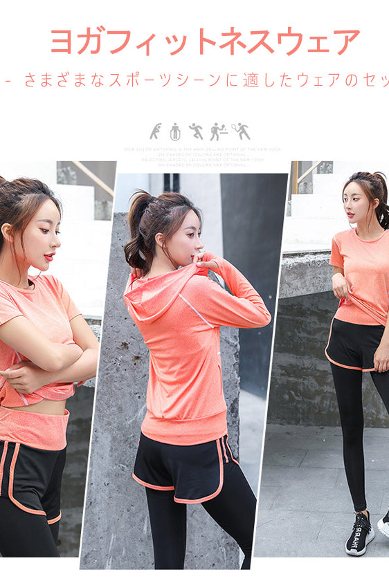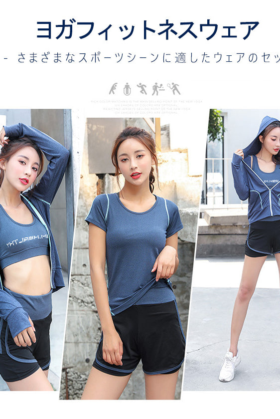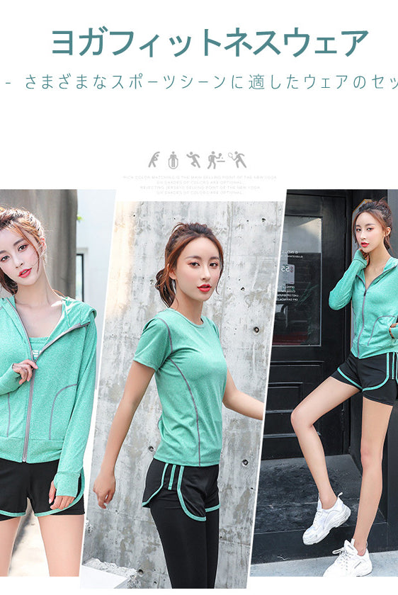 スポーツウェア 4点セット パーカー 半袖 長袖 上下セット フィットネスウェア ヨガ ピラティス スポーツ フィットネス ランニングウェア
