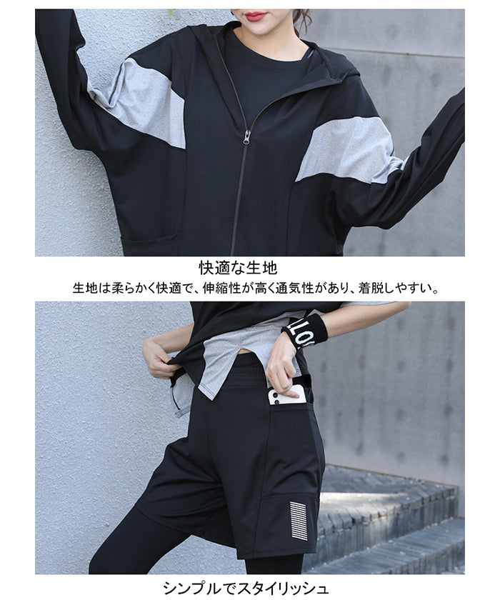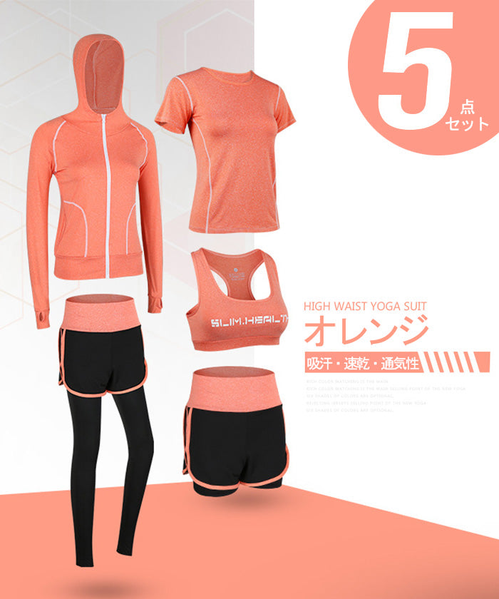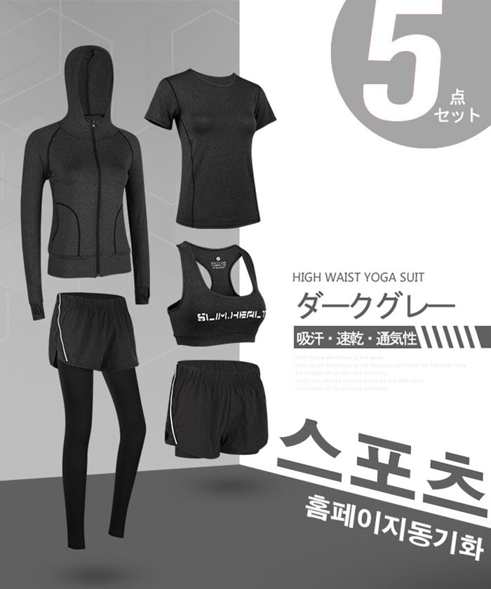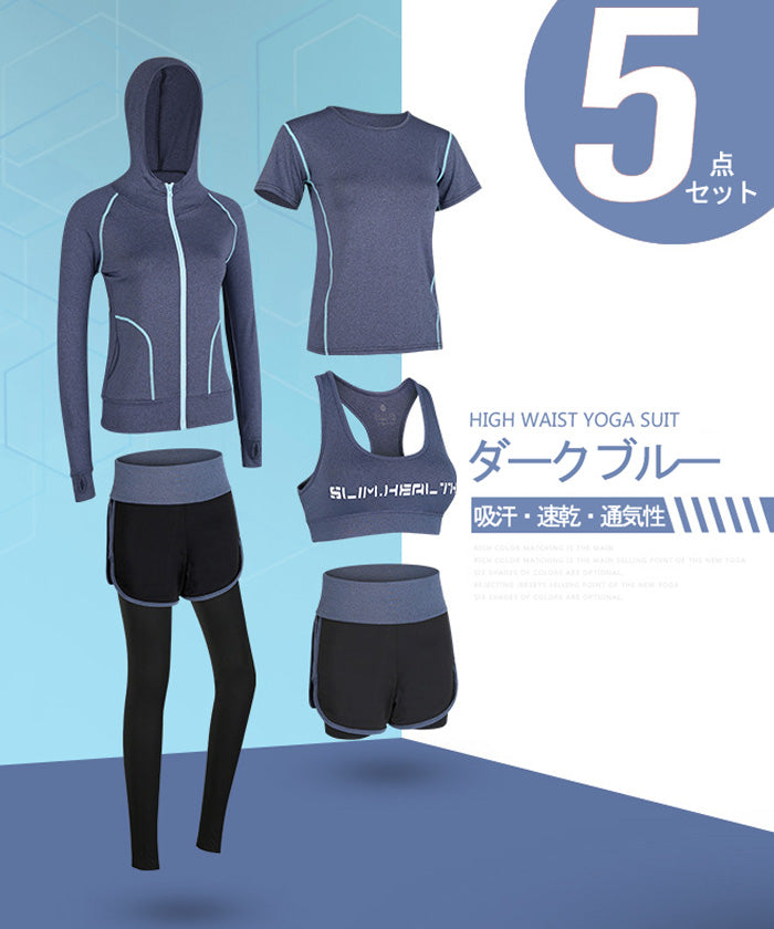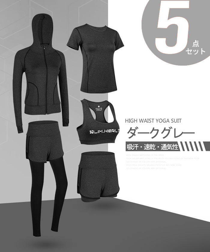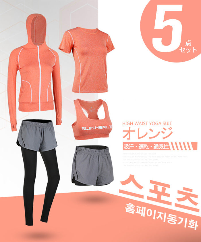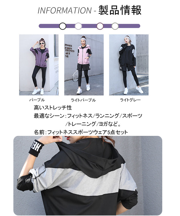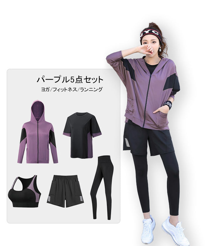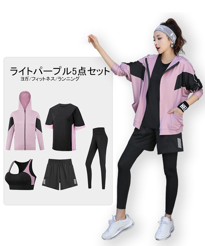 スポーツウェア 5点セット パーカー 長袖 上下セット Tシャツ 半袖 フィットネスウェア 速乾性 セットアップ ヨガ ピラティス スポーツ フィットネス ランニングウェア トレーニング ジム