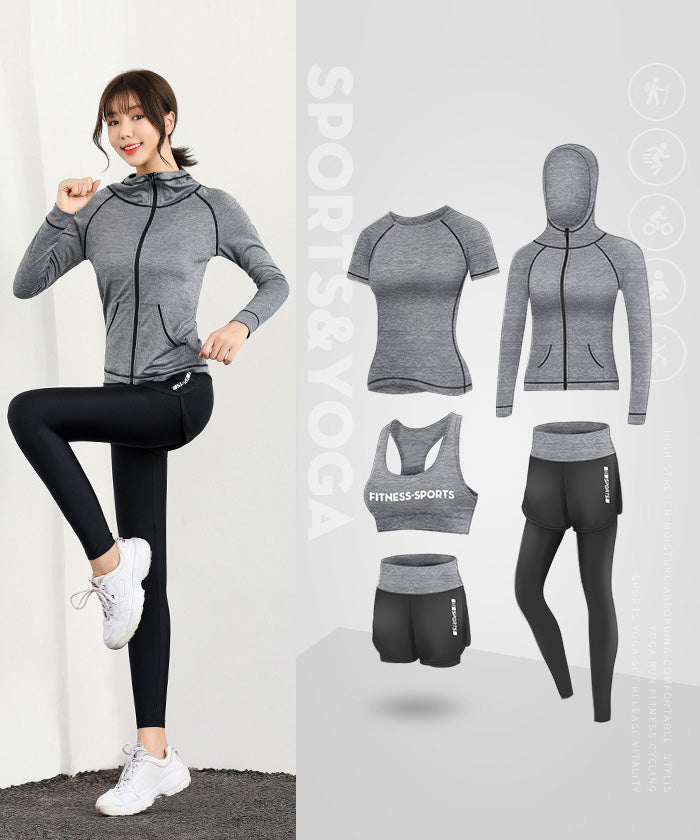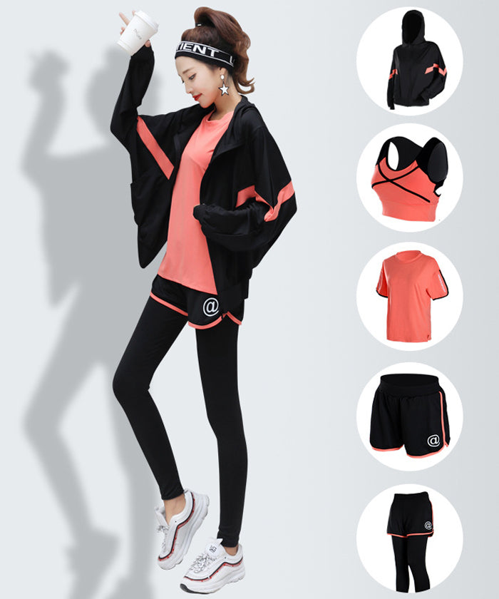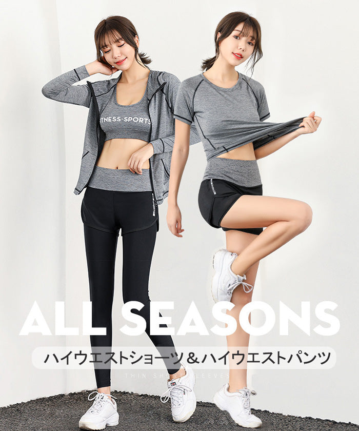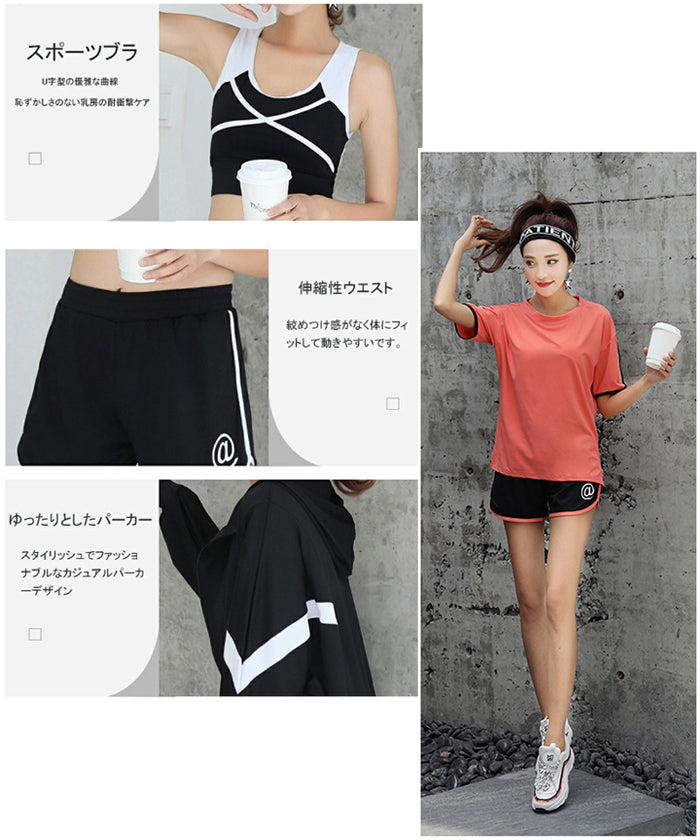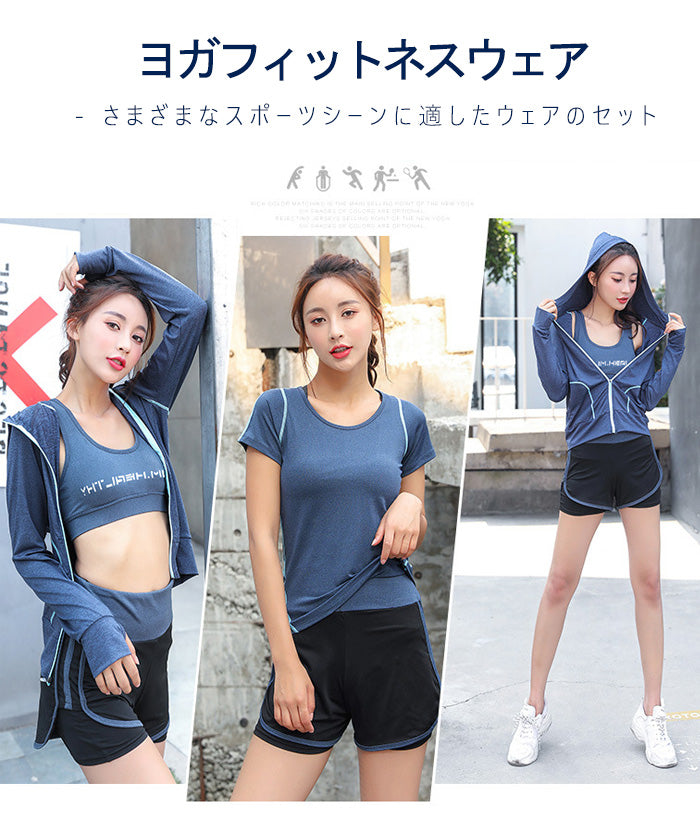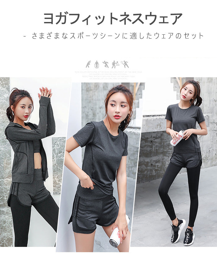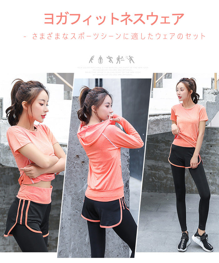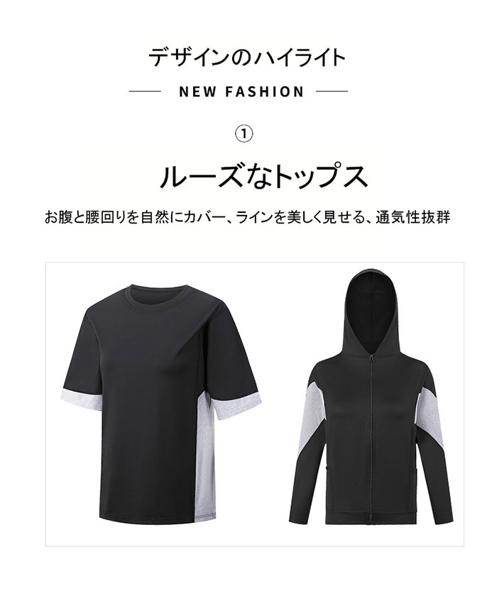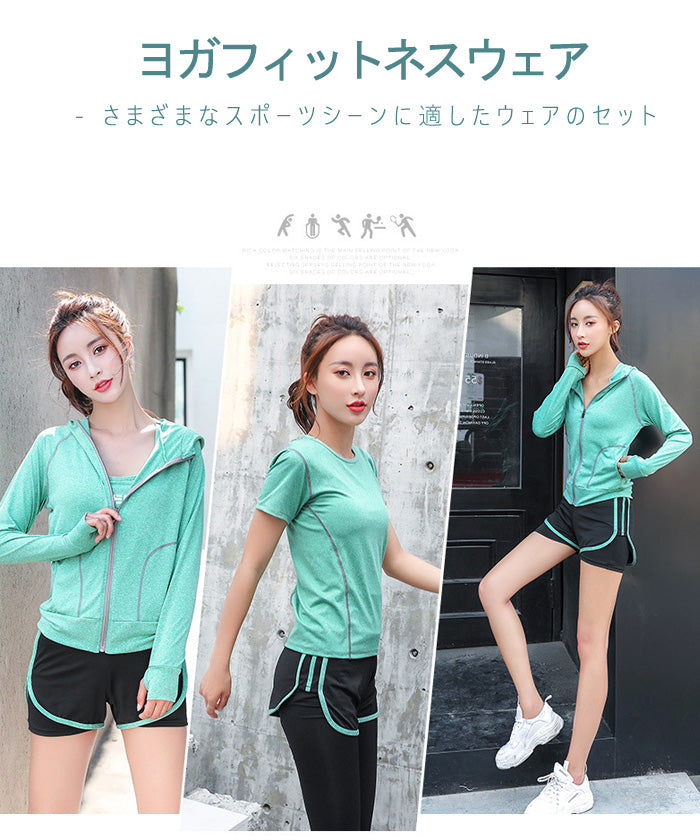 スポーツウェア 5点セット パーカー 長袖 上下セット Tシャツ 半袖 フィットネスウェア 速乾性 セットアップ ヨガ ピラティス スポーツ フィットネス ランニングウェア トレーニング ジム