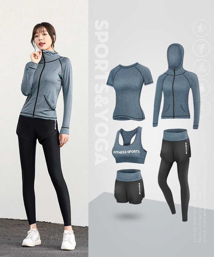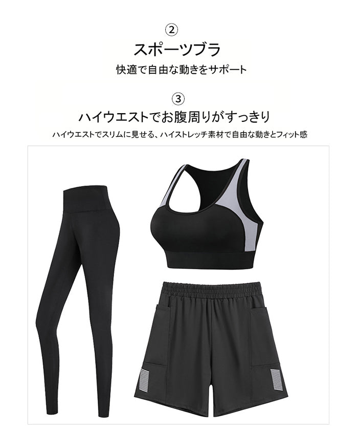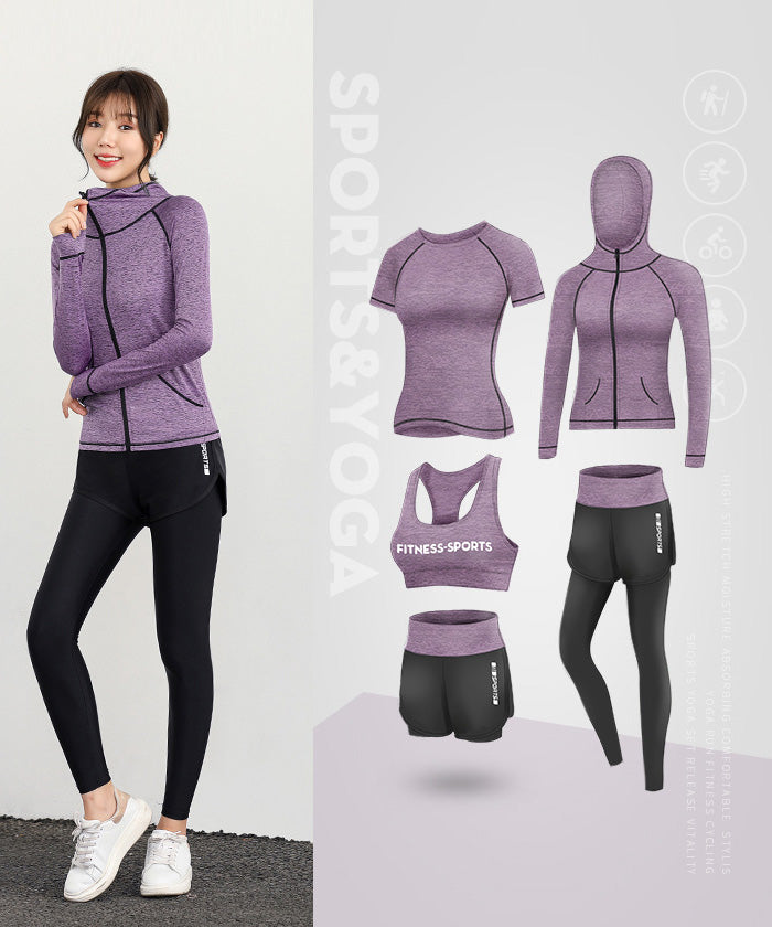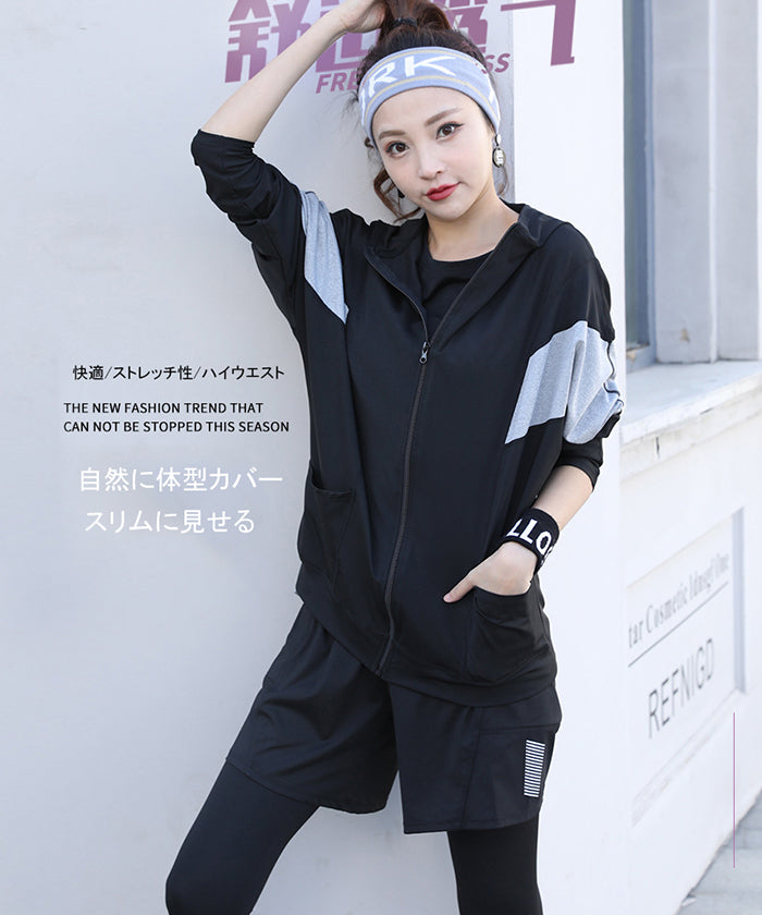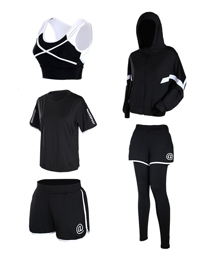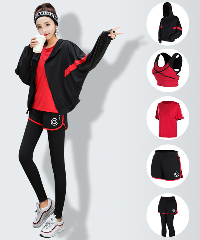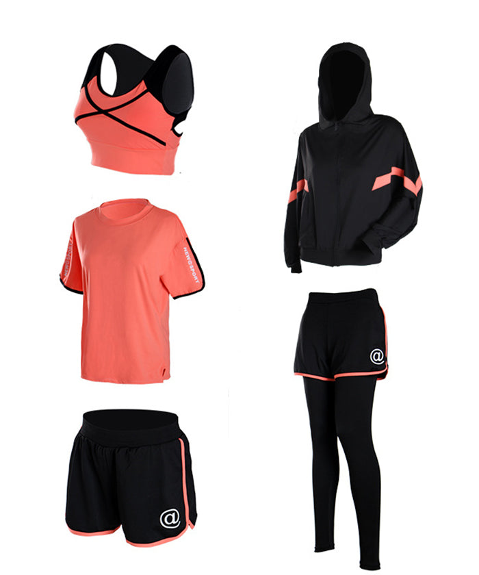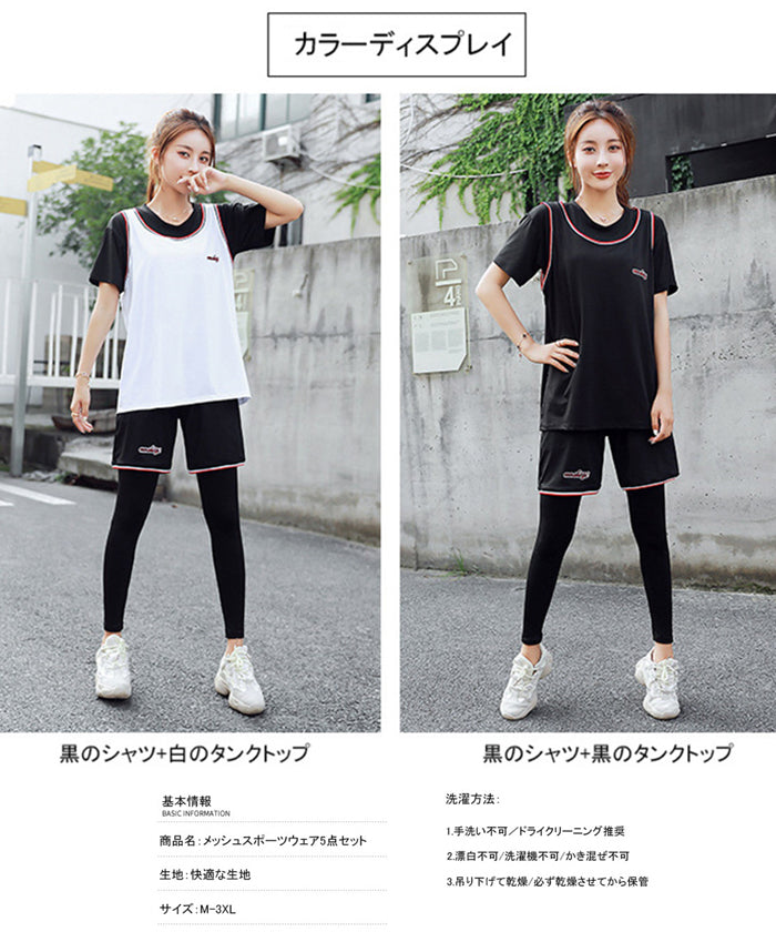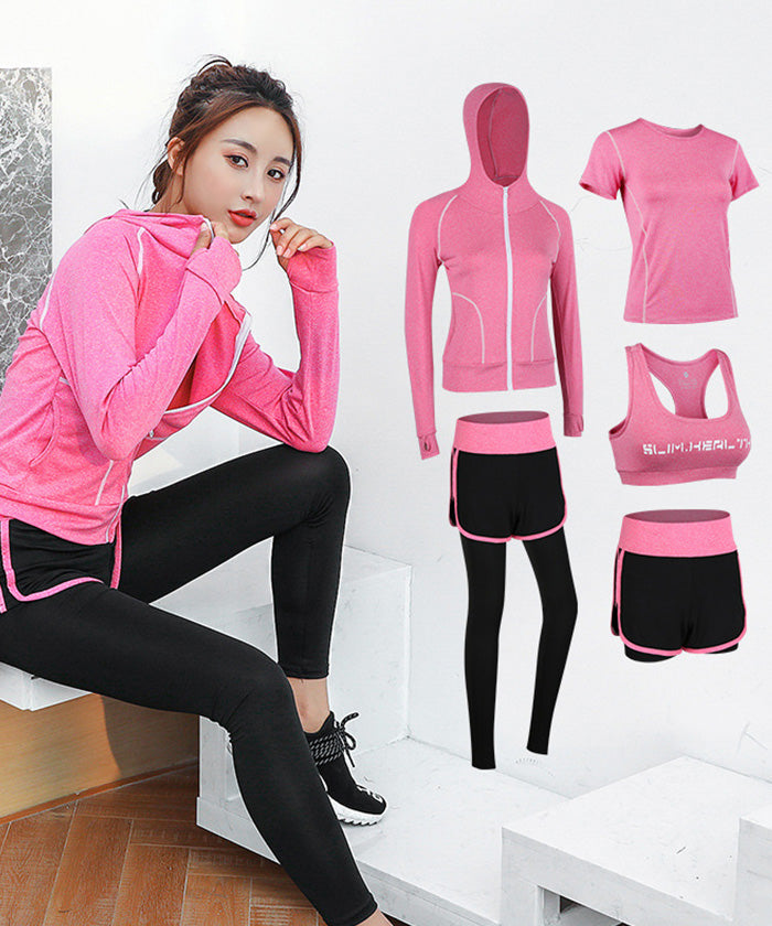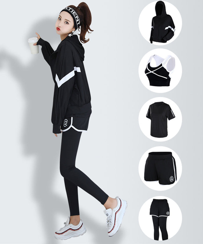 スポーツウェア 5点セット パーカー 長袖 上下セット Tシャツ 半袖 フィットネスウェア 速乾性 セットアップ ヨガ ピラティス スポーツ フィットネス ランニングウェア トレーニング ジム
