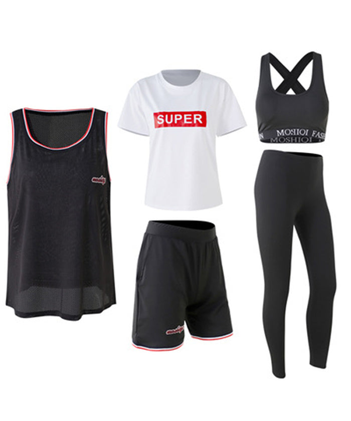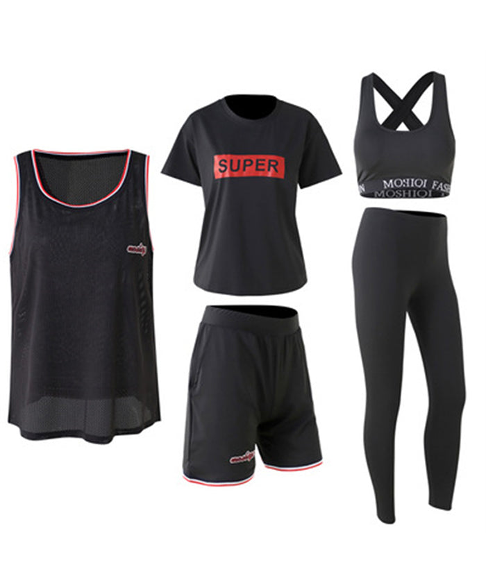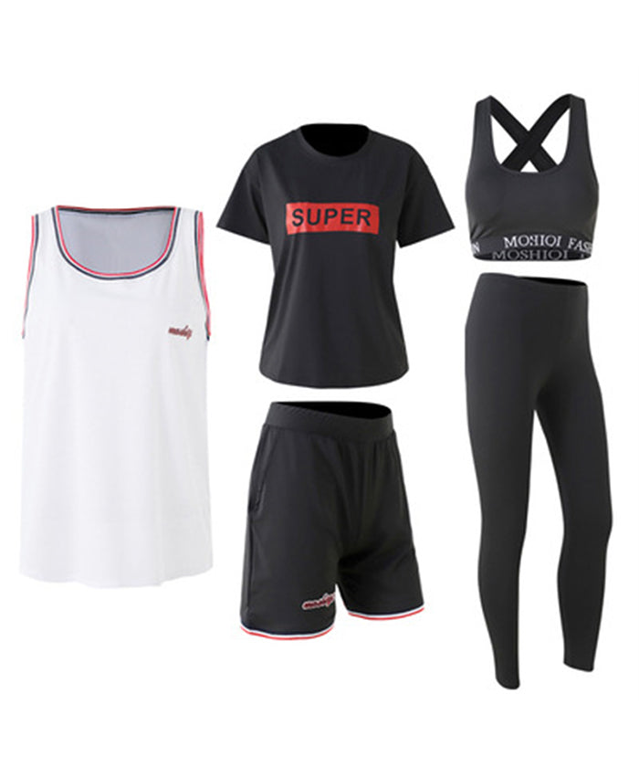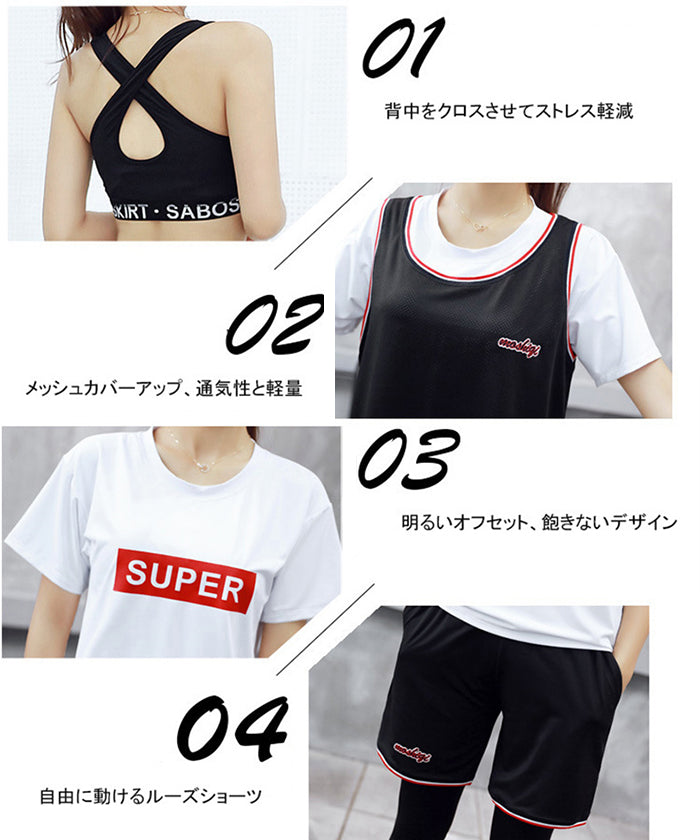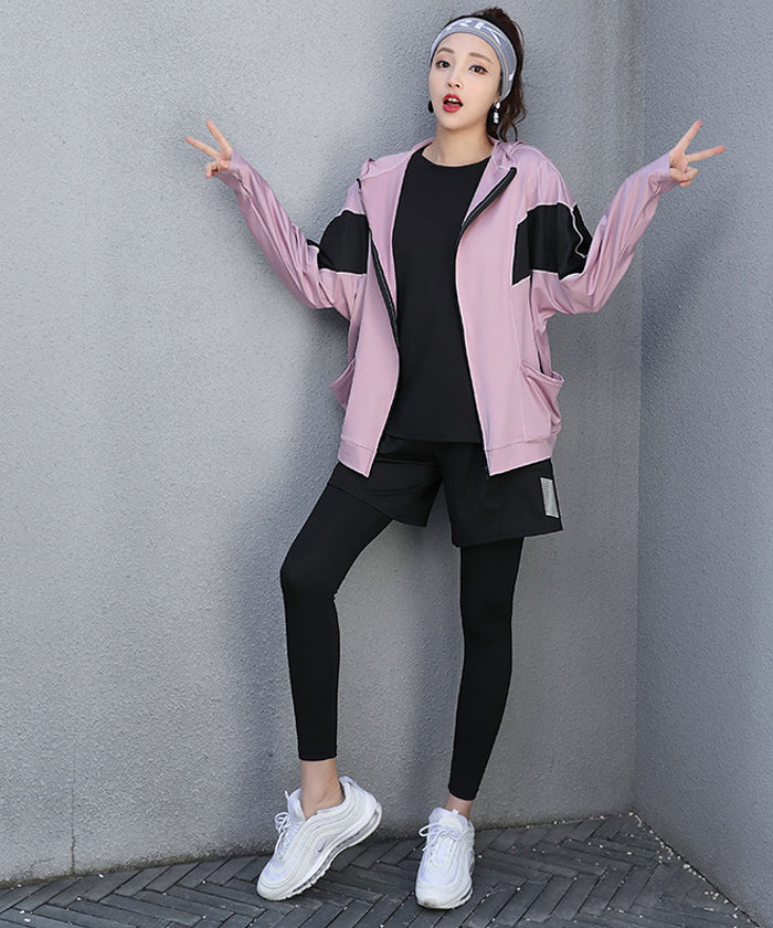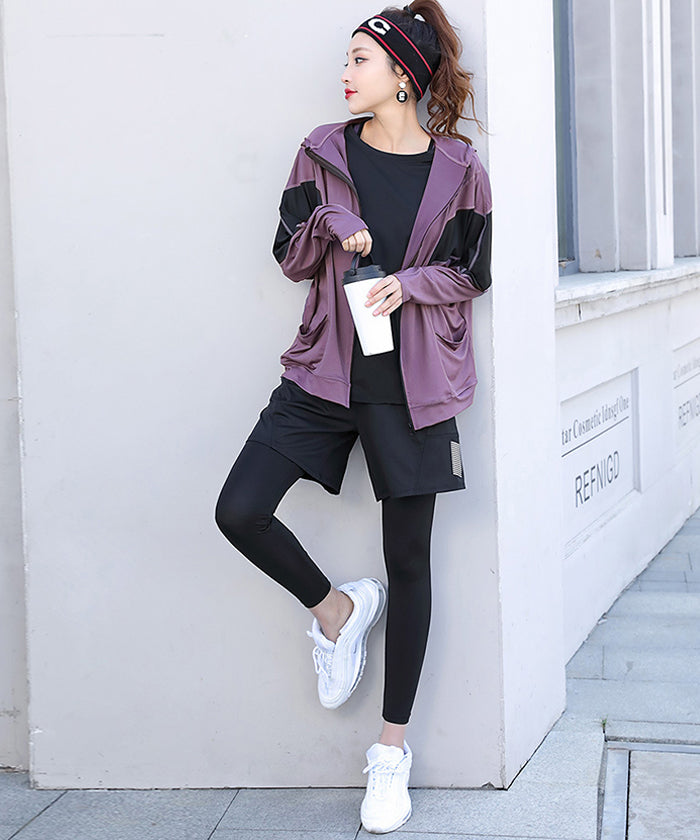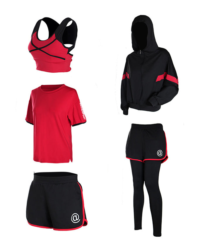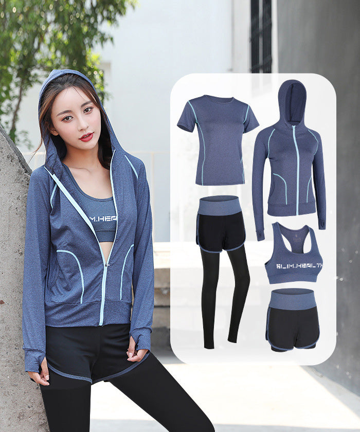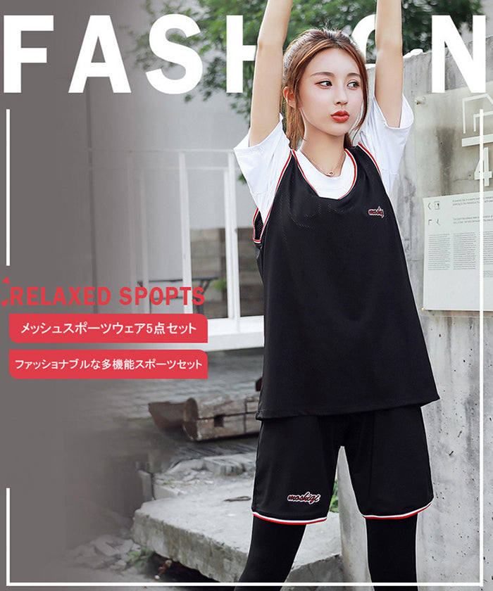 スポーツウェア 5点セット パーカー 長袖 上下セット Tシャツ 半袖 フィットネスウェア 速乾性 セットアップ ヨガ ピラティス スポーツ フィットネス ランニングウェア トレーニング ジム