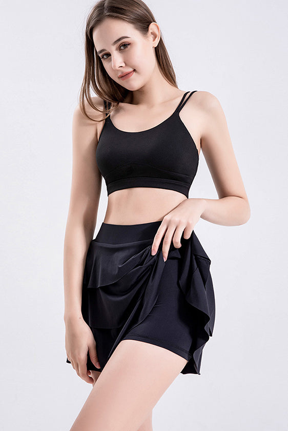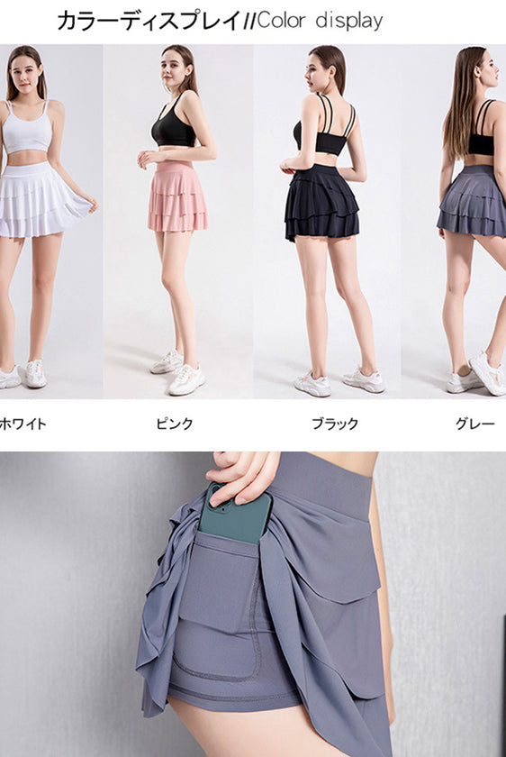 スポーツワンピース フレアスカート インナーパンツ ポケット付き 速乾性 テカリ防止 ヨガ フィットネスワンピース スカート ゴルフ テニス バトミントン