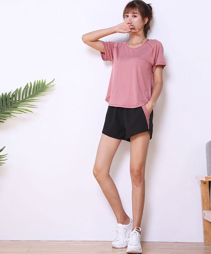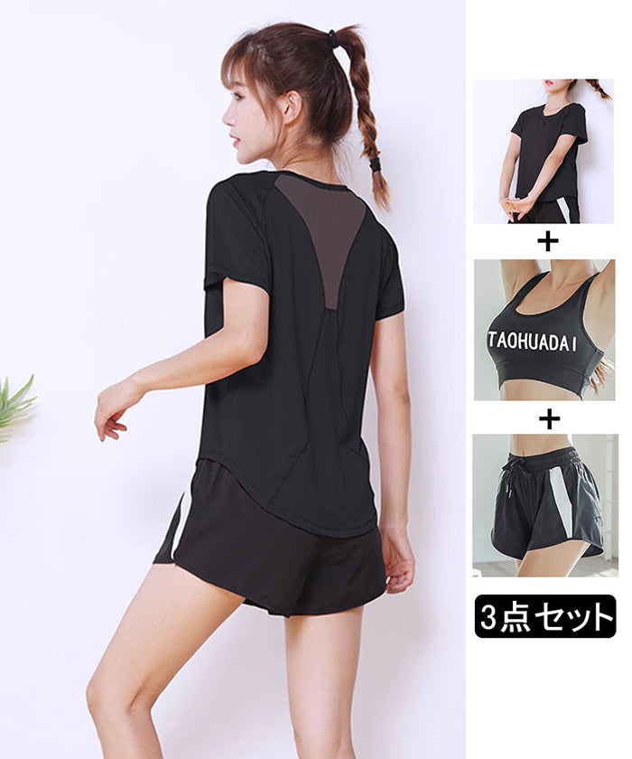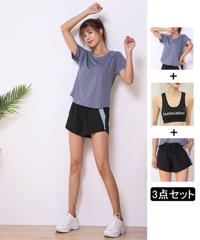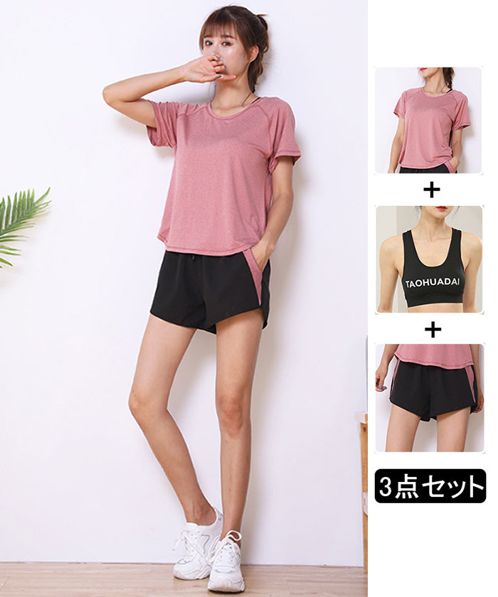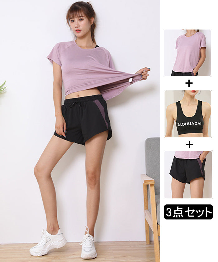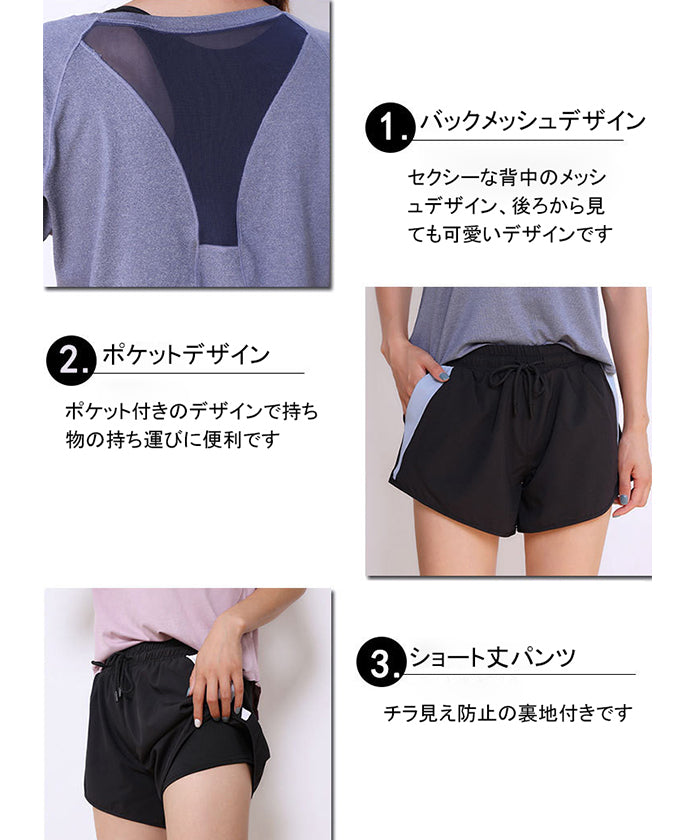 ヨガウェア ツーピース スポーツスーツ 半袖 ショートパンツ ブラウス ランニング カジュアル ショートパンツ おしゃれ レディース スタイル