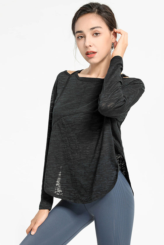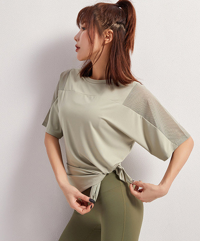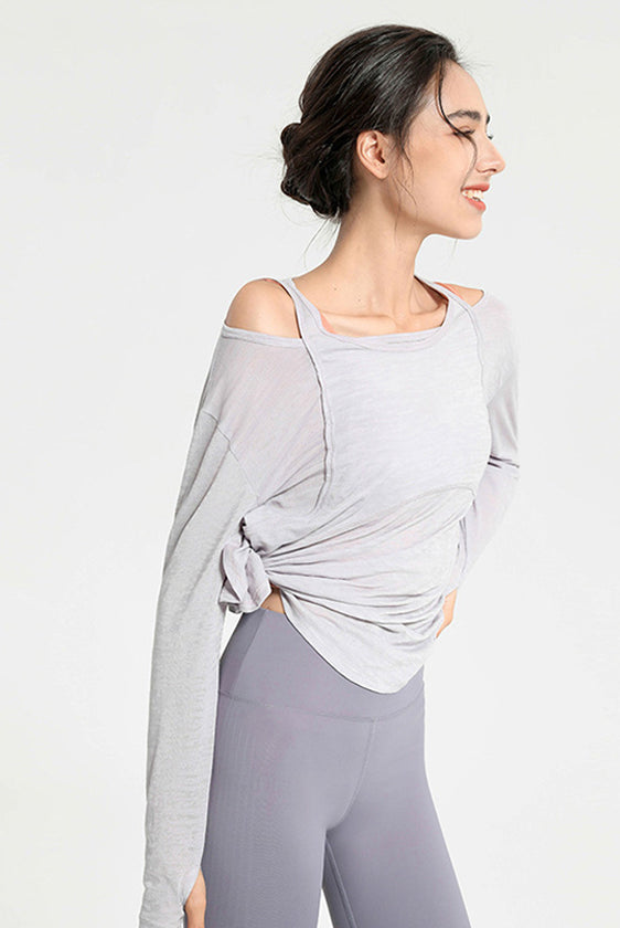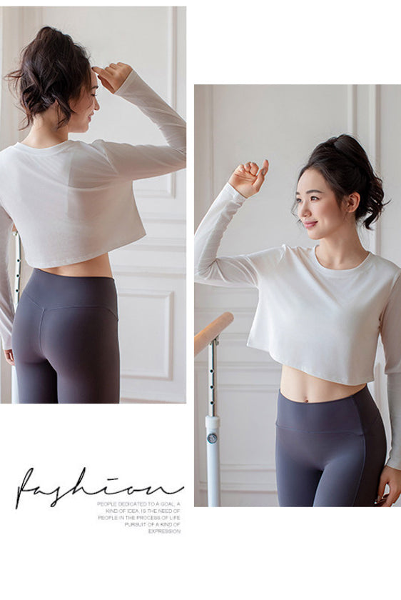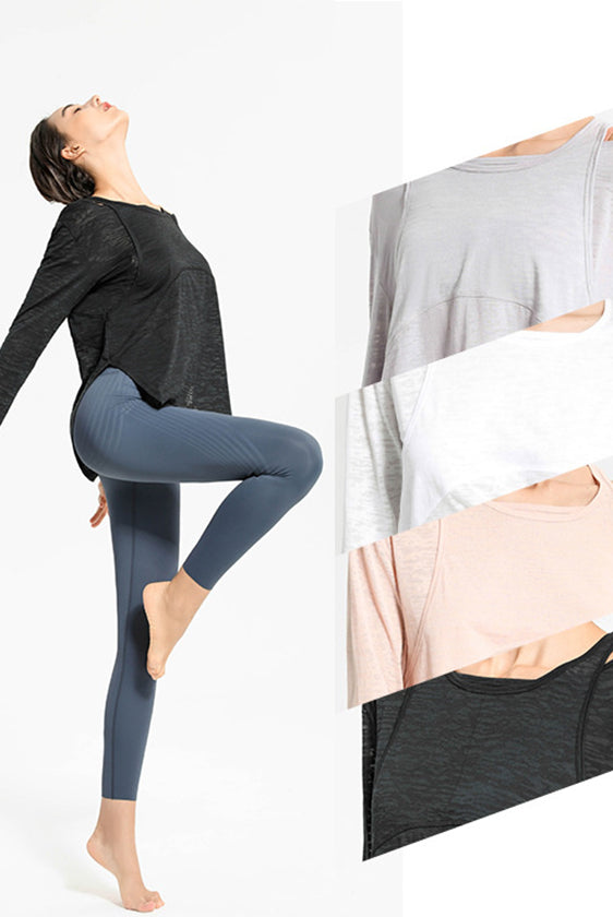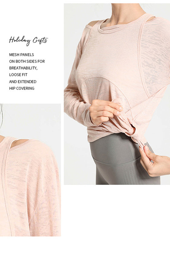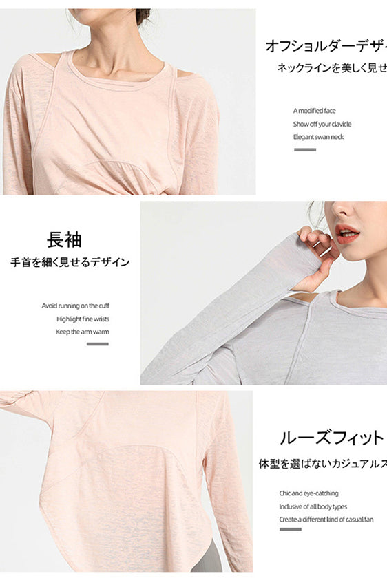 ヨガウェア トップス、ウエストレスフィットネスウェア、長袖スポーツトップス、ドローストリング、高伸縮性、スリムフィットで美しい背中、レディースフィットネスウェア