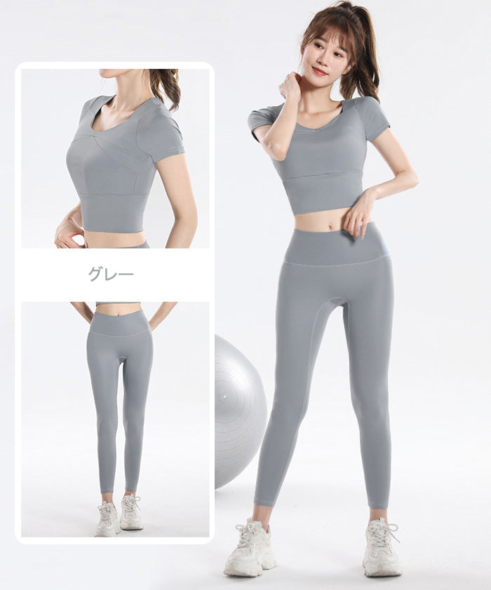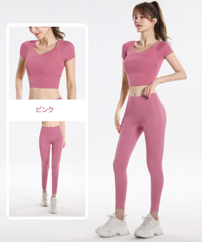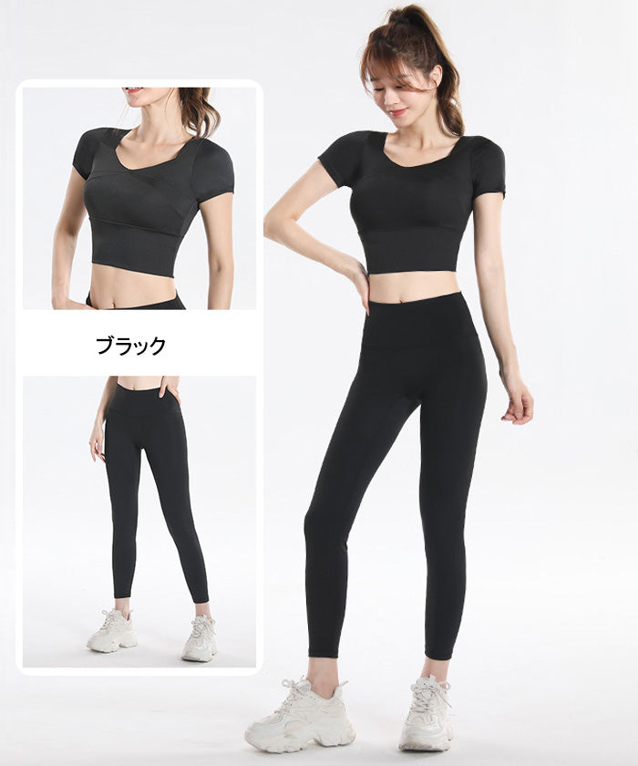 ヨガウェア 上下セット 大きいサイズ フィットネス スポーツ トップス 胸パッド付き 女性用 速乾性 半袖 ランニング 夏 秋