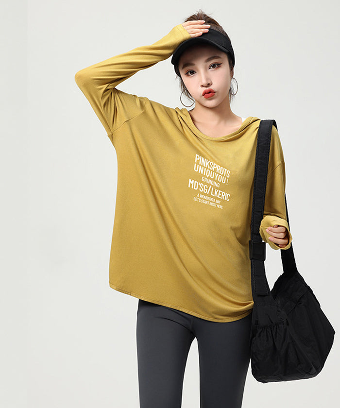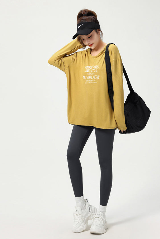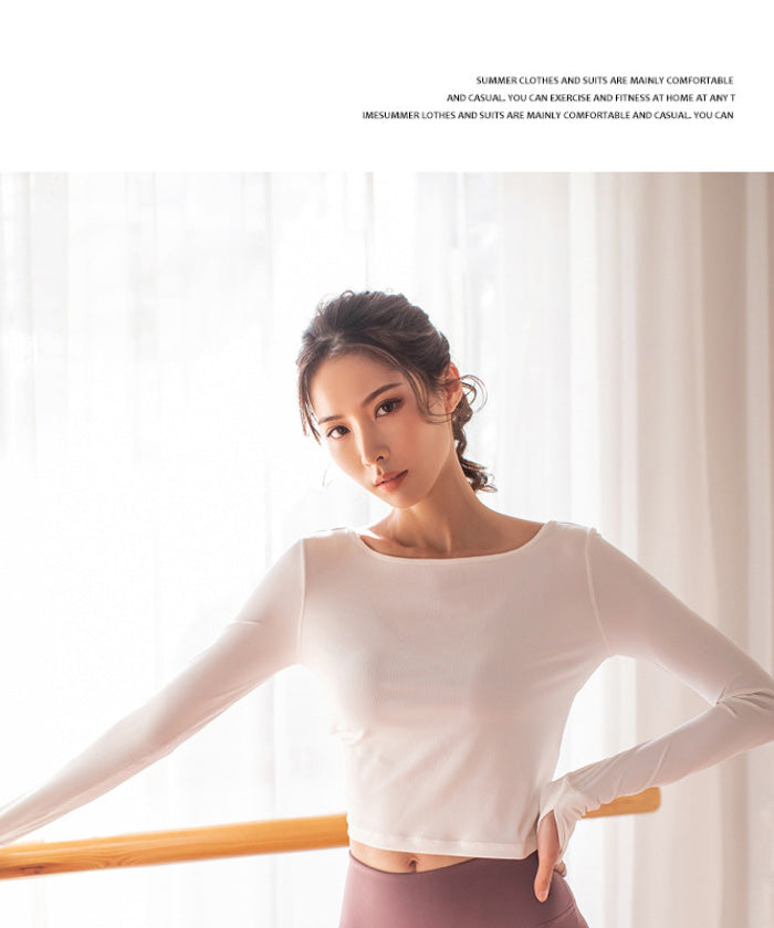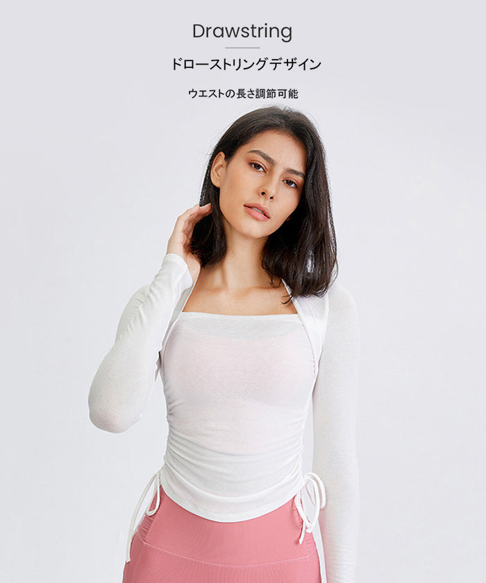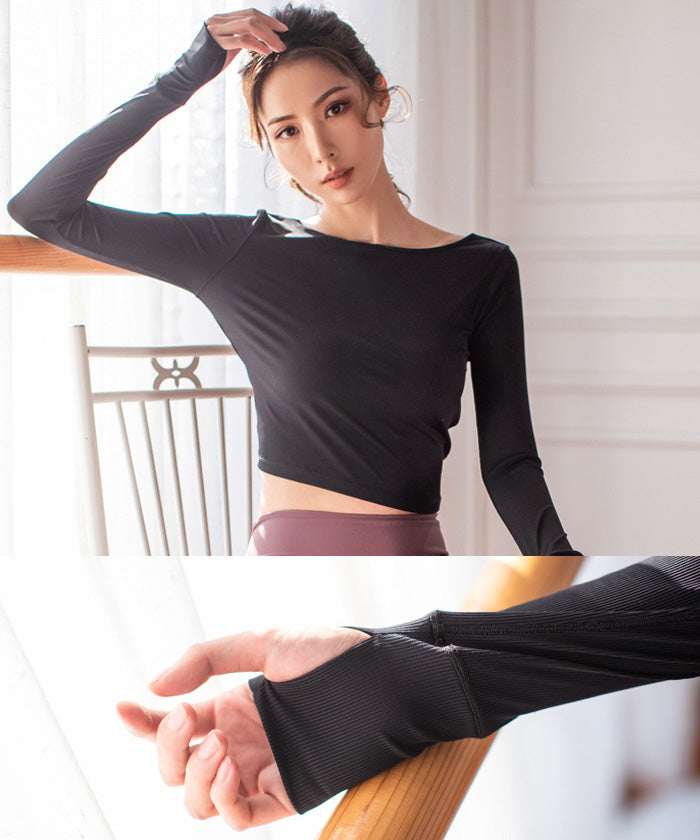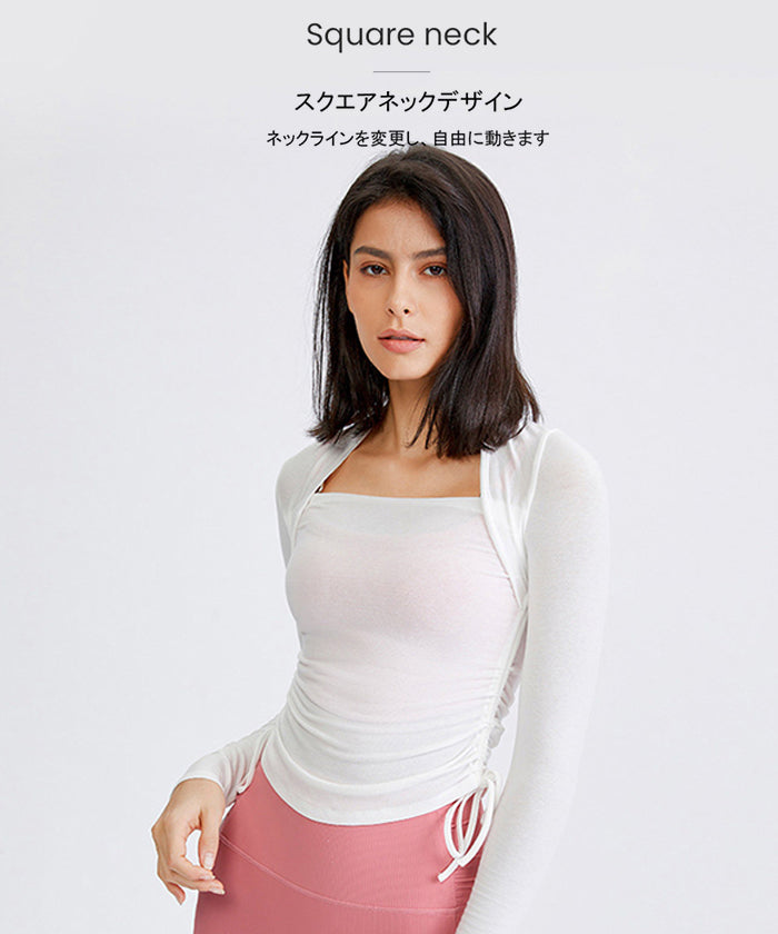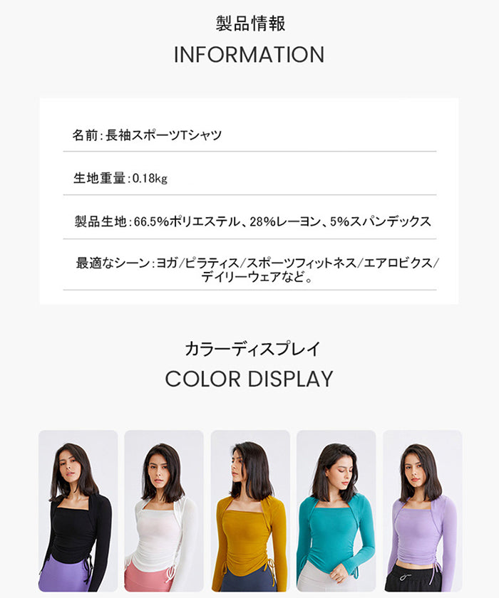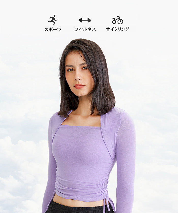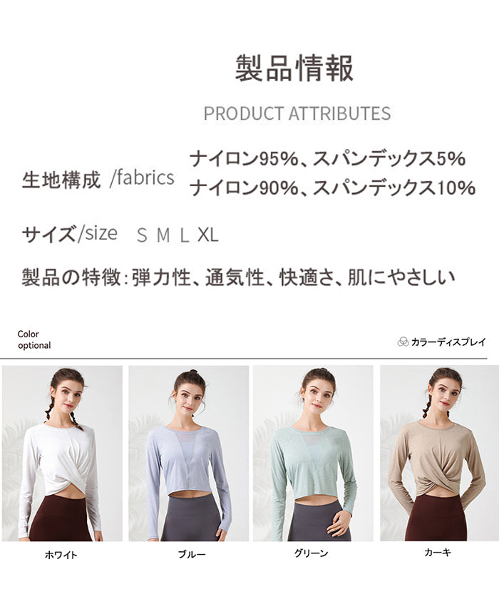 ヨガトップス ショート丈 スポーツトップス 長袖 ロンT ルーズ カバーアップ アウトドア ランニング ジム フィットネスウェア ピラティス 速乾性 通気性