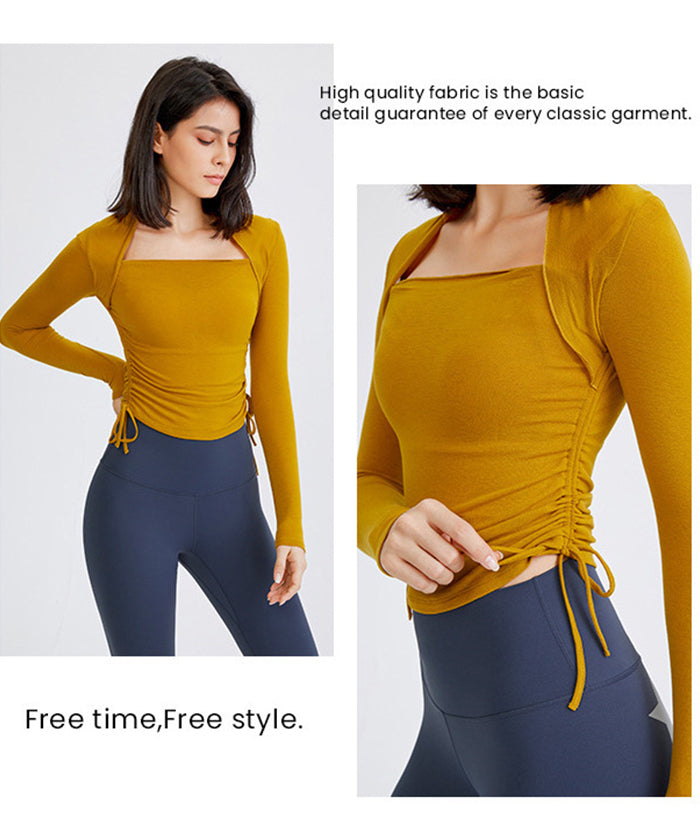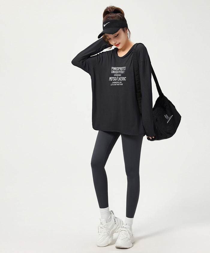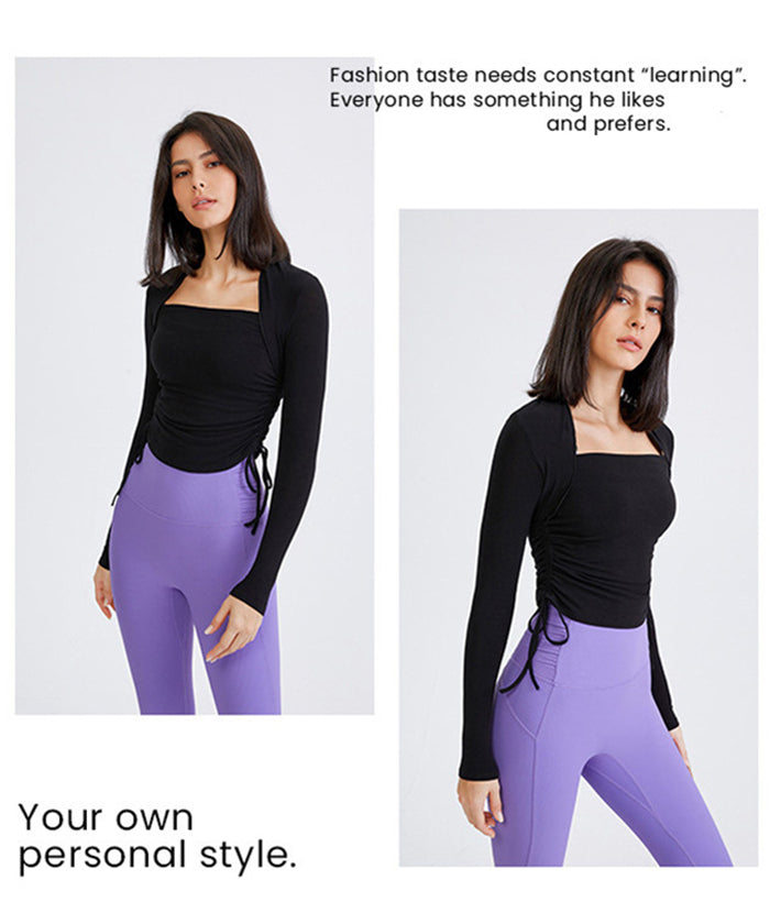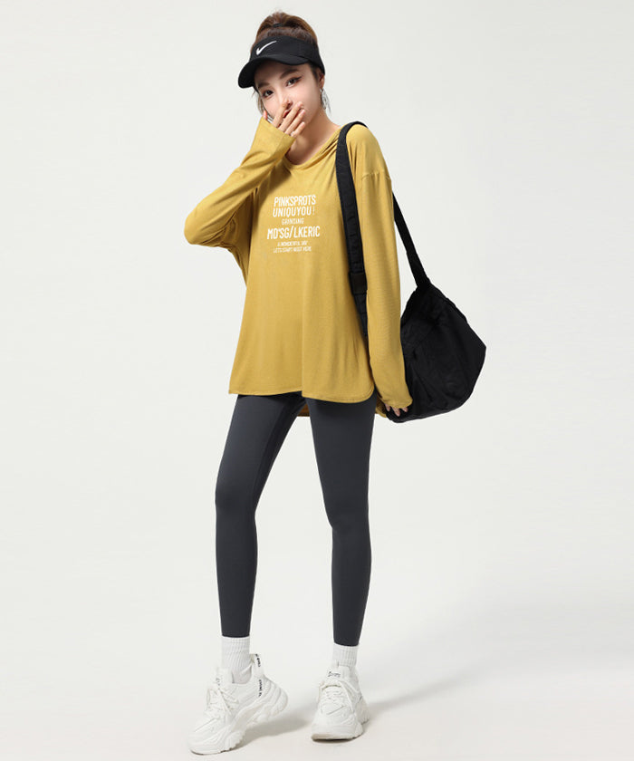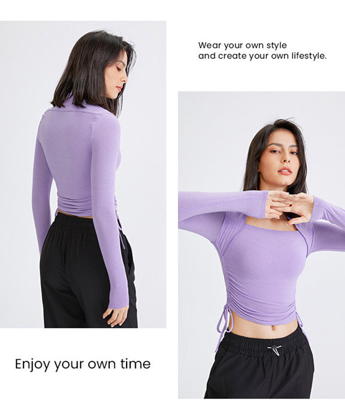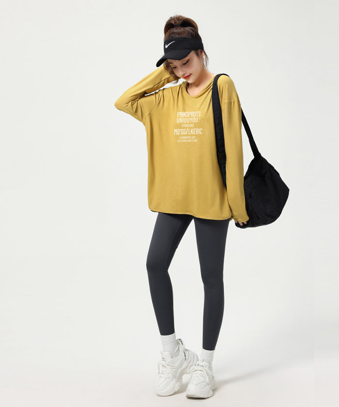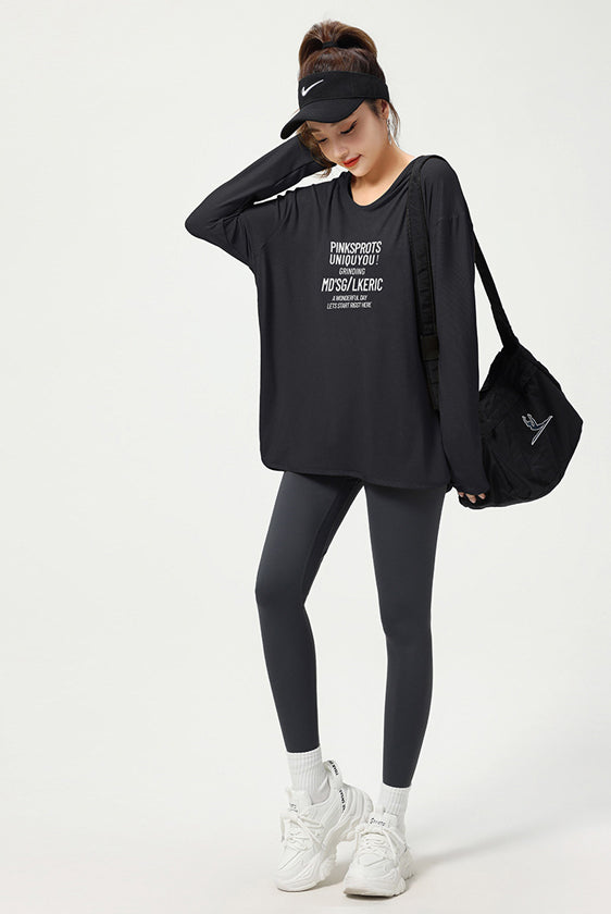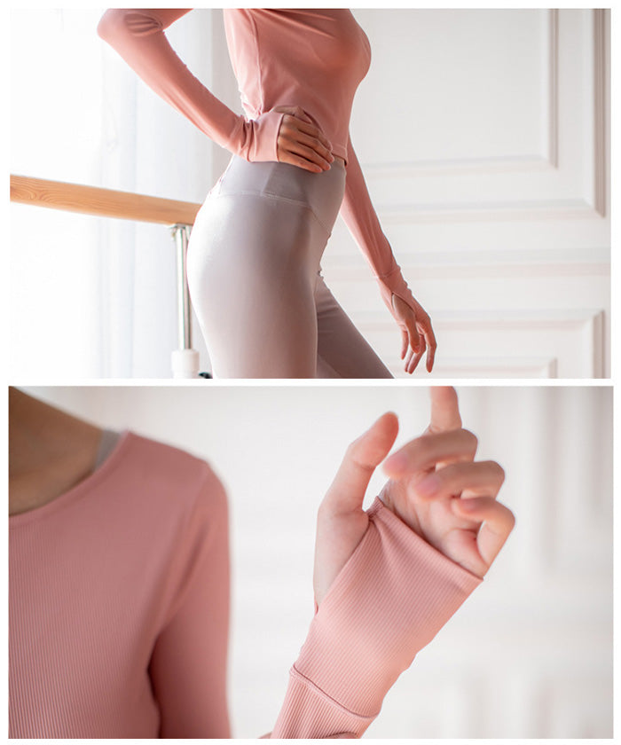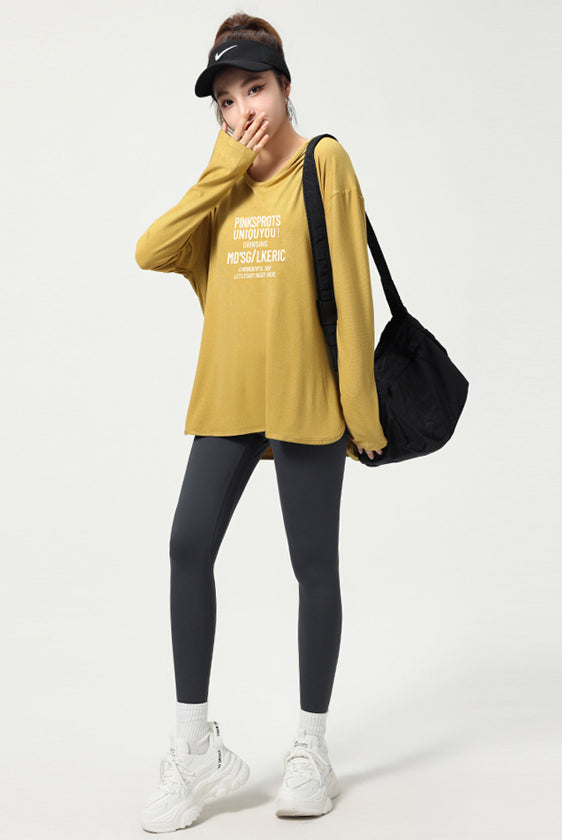 ヨガトップス ショート丈 スポーツトップス 長袖 ロンT ルーズ カバーアップ アウトドア ランニング ジム フィットネスウェア ピラティス 速乾性 通気性
