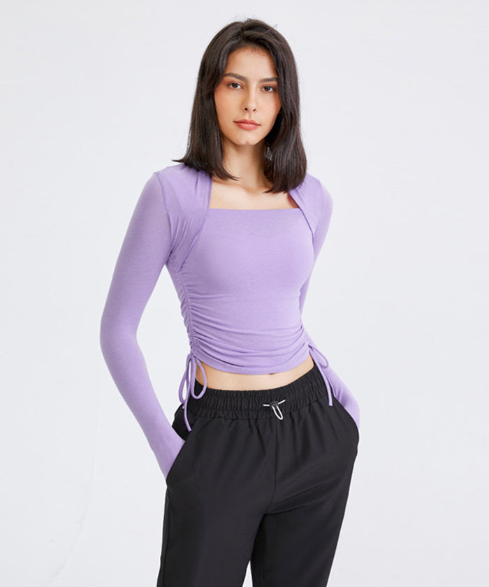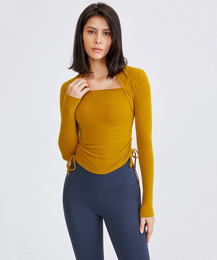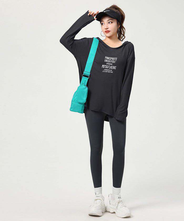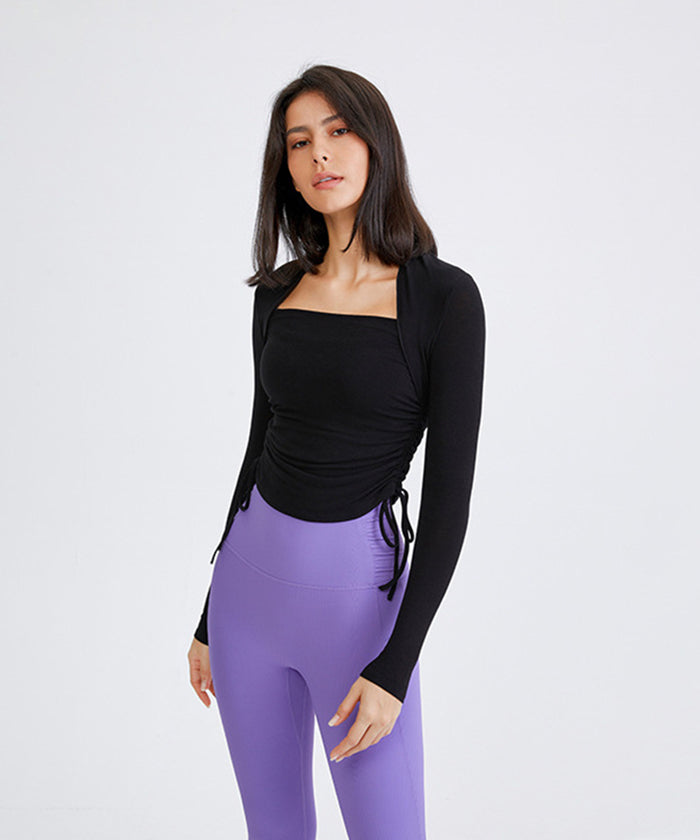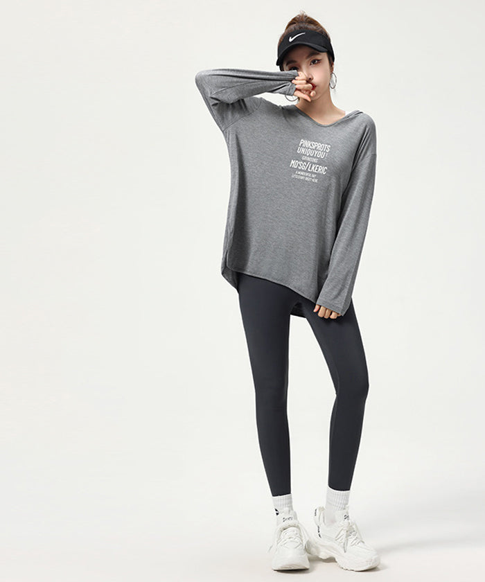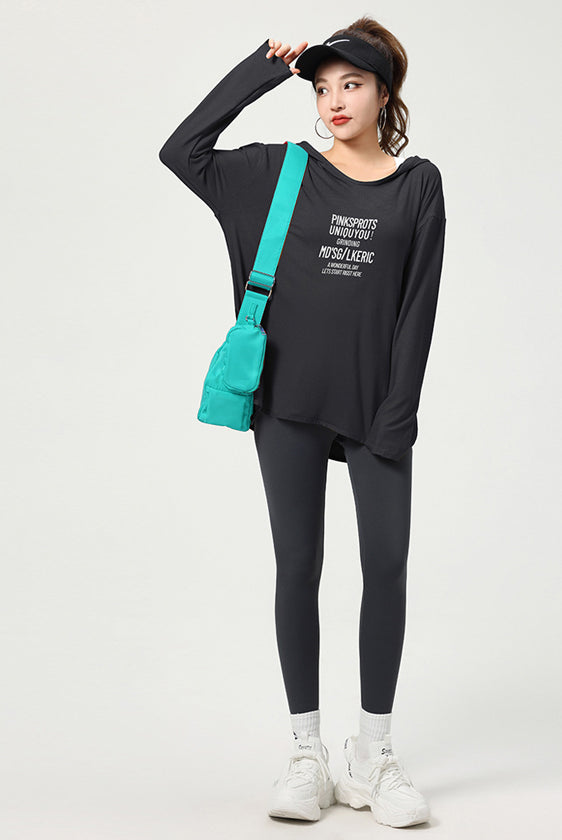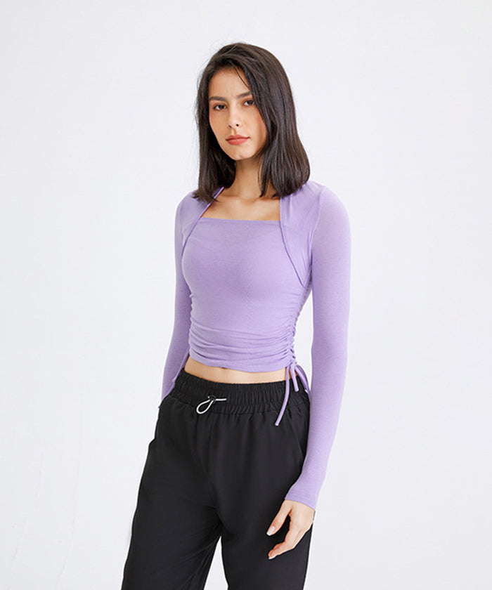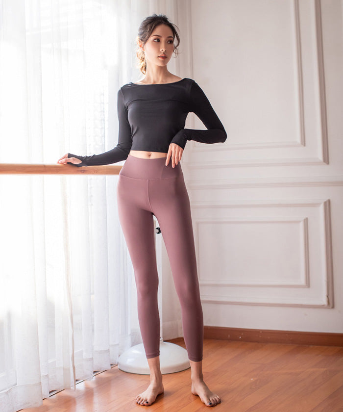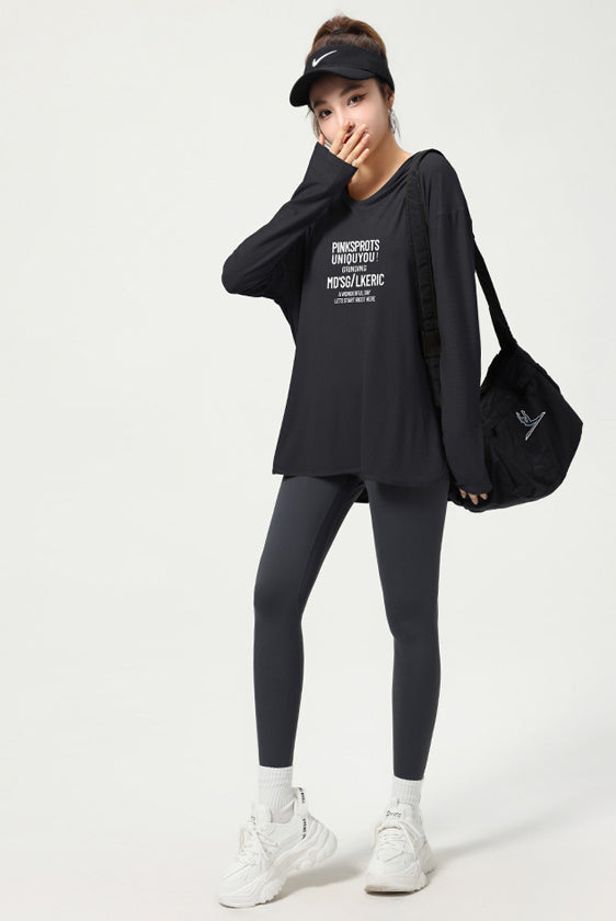 ヨガトップス ショート丈 スポーツトップス 長袖 ロンT ルーズ カバーアップ アウトドア ランニング ジム フィットネスウェア ピラティス 速乾性 通気性